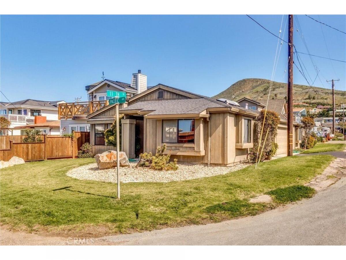 Singular site and structure at 11th Street and Pacific Avenue in Cayucos. The lovely 3 bed, 2 bath home enjoys the benefit of fine morning sun and Coastal access stairs nearby. The versatile floor plan and solid construction establishes a capable primary residence or vacation use as well. An 11th Street entry opens to the kitchen, oversized two car garage and living room. A south facing kitchen is bathed in morning light and a skylight continues the brightness throughout the day. Plenty of entertaining space and storage make this a lovely and efficient room. The nearby dining area fronts Pacific Avenue, is ample in size for 8-10 place settings and benefits by quality built-in cabinetry and an abundance of windows. The angular front windows are suited to a possible dramatic entry or patio on the Pacific Ave side. A spacious living room has vaulted, beamed ceilings amp; cozy fireplace. Three primary spaces, living, hallway and office/bonus room wrap themselves around a private and sheltered courtyard with walls of windows bringing the outside in and flooding the house with natural light. The ample guest room is adjacent to a full bath and the primary ensuite bedroom is extra spacious with a very generous closet and bathroom. Lots of versatility in this vibrant and light filled home!