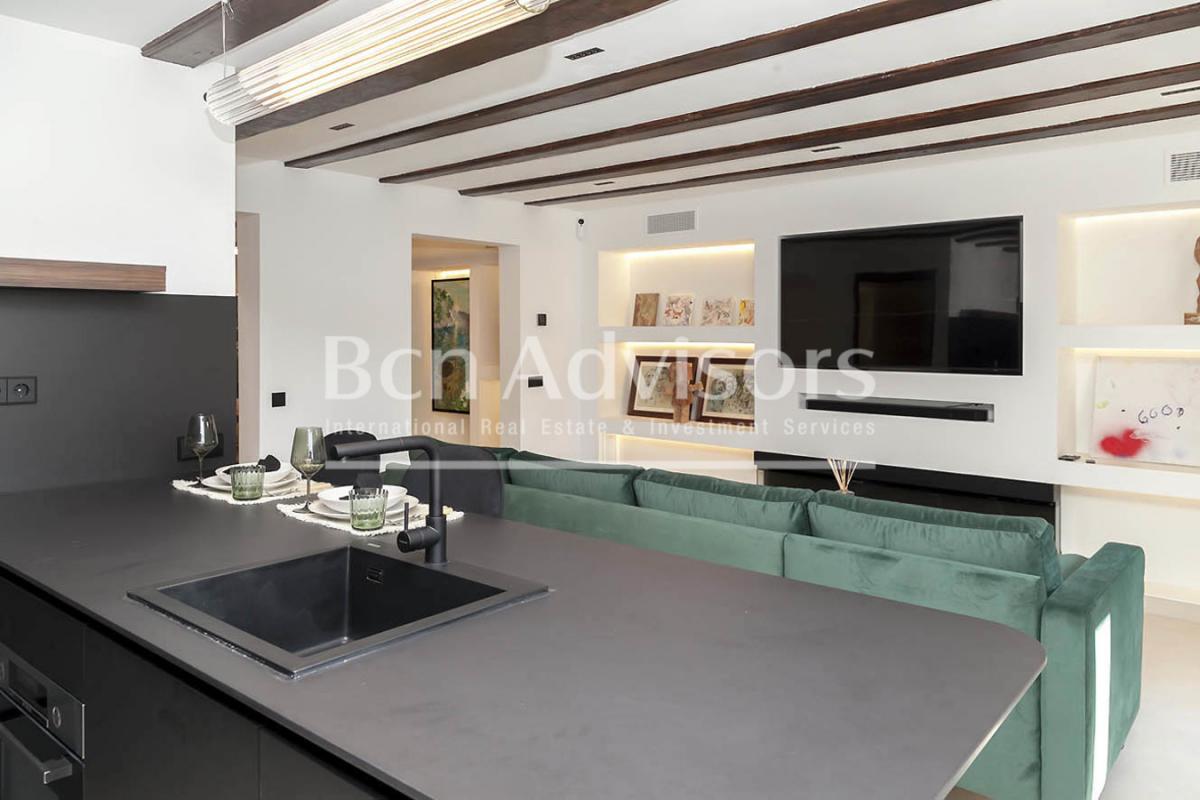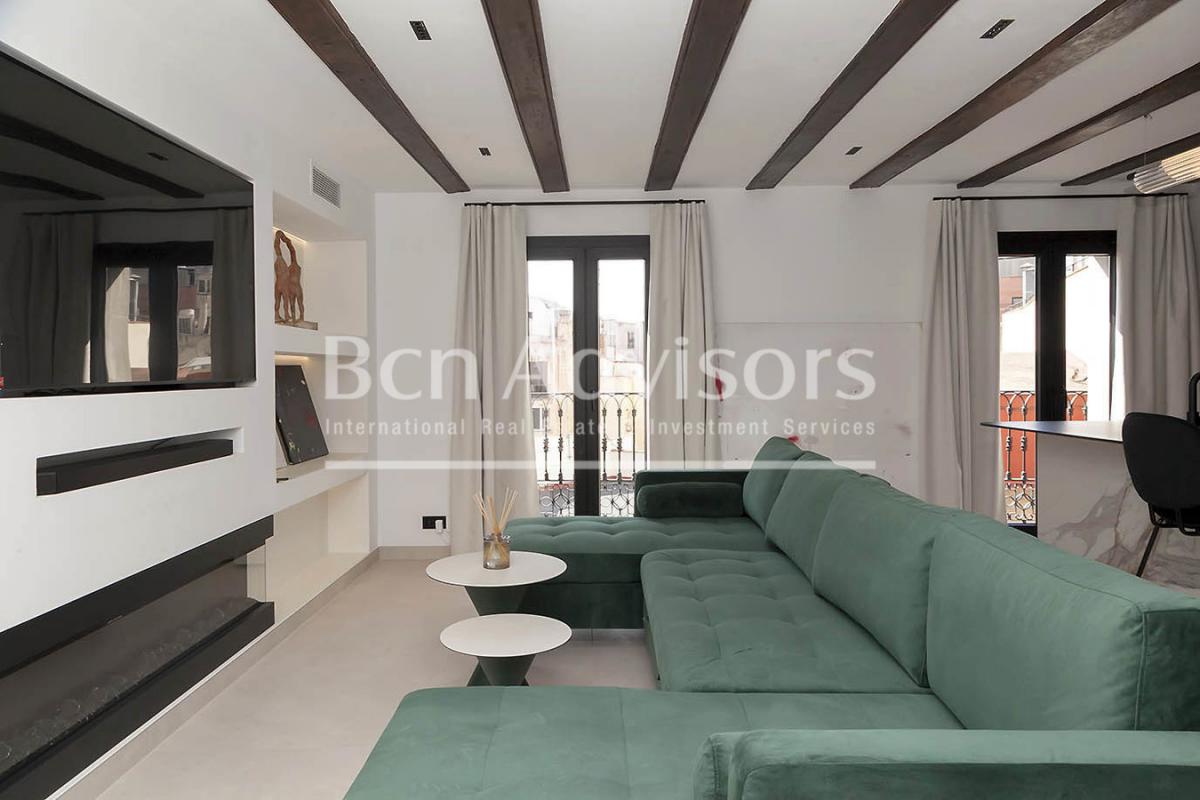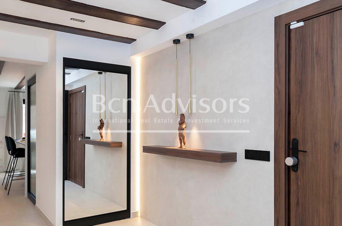 This brand new renovated flat is located just one street away from Plaza Catalunya, an enviable location where you can enjoy the charm of the city's history and tradition and easily get to any part of Barcelona.The property is on a pedestrian street. It has 103 built interior sqm with a rectangular layout, 4 balconies and double orientation to the street and the courtyard, making it very bright and facilitating cross ventilation. The elegance and modernity of its contemporary design combine with traditional charm to offer you maximum style, comfort and sophistication.