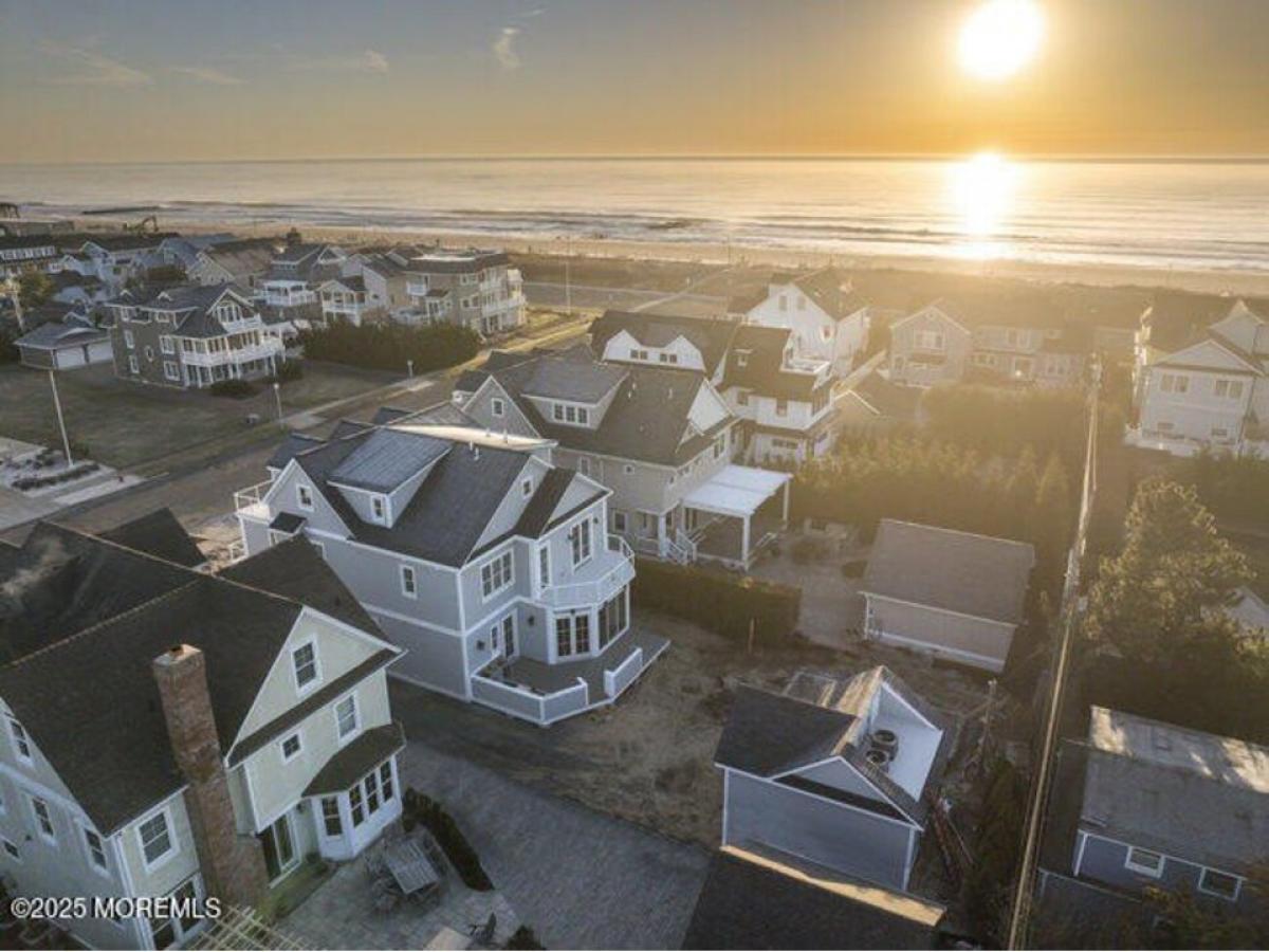 Catch the breathtaking Ocean Views from the front 2nd amp; 3rd floor balconies, this custom-designed home blends timeless craftsmanship with modern sophistication. In the back of the house, exit the Primary Bath to enjoy sunsets off the back balcony w a Gas Fire Pit overlooking the Pool and Outdoor Kitchen. Discover unparalleled elegance in this stunning 6BR, 7Bath luxury home, 4 of the 6 bedrooms with OCEAN VIEWs, a 3 STOP ELEVATOR, perfectly situated 1/2 block from the pristine Spring Lake beach amp; boardwalk. Inside, the home features a chef#039;s dream kitchen w top-of-the-line appliances, coffered ceiling, open-concept layout perfect for entertaining. Features like the 3-stop elevator, 3 gas fireplaces amp; shiplap accents allow you to move right in. Through the NanaWall exit out to the back deck to the gunite salt water pool with multiple jets, bluestone patio with a custom FIREPLACE, fully equipped outdoor kitchen-ideal for alfresco dining or unwinding after the beach. Rinse off in the outdoor shower or head up to the Primary Suite Balcony with its own fire pit amp; chairs catching the sunsetting. Don#039;t miss this rare opportunity to own a piece of Spring Lake with unprecedented Ocean Views!
