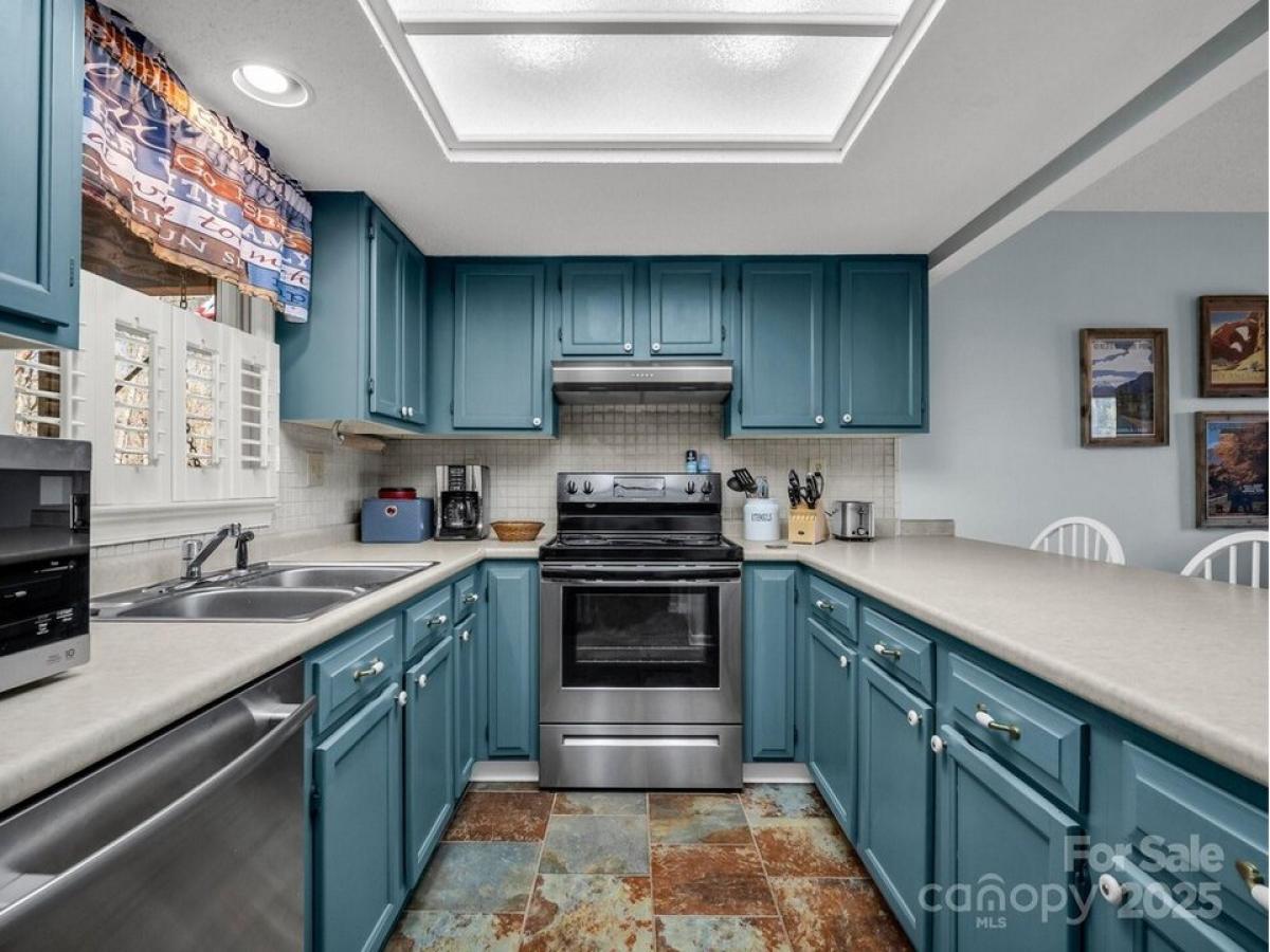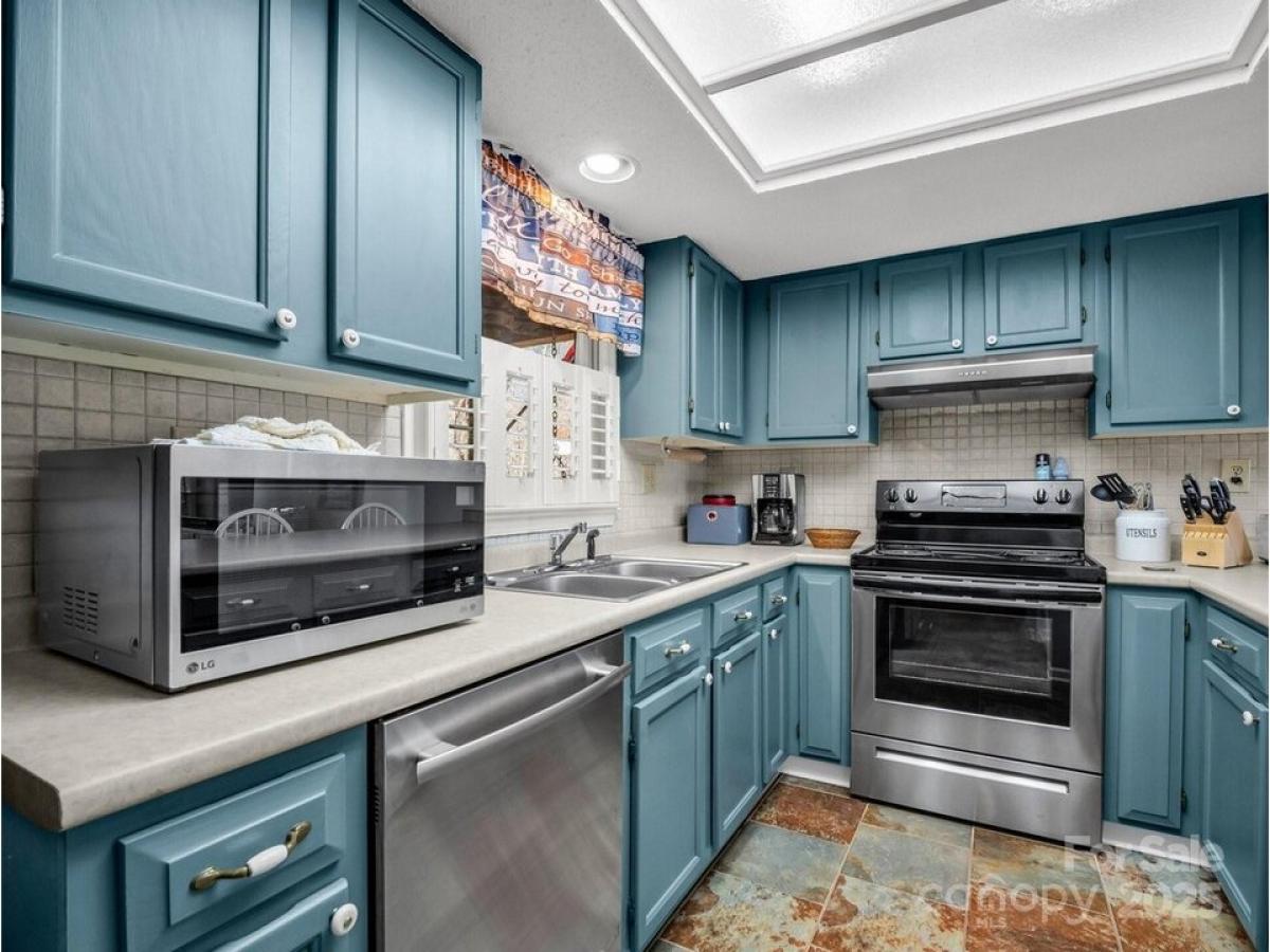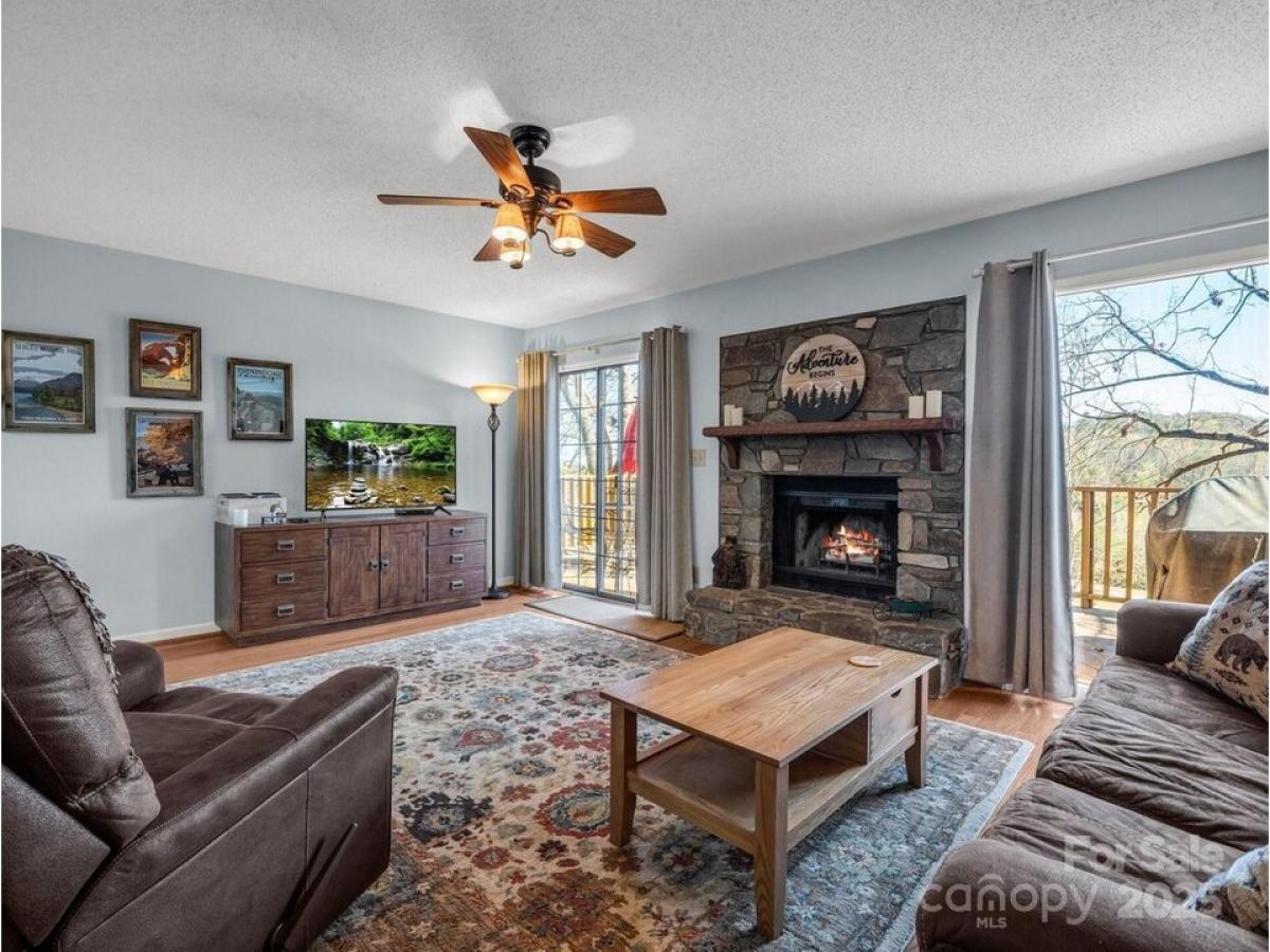 Stunning 2 bedroom/2 bathroom condo overlooking the golf course! This home offers an open concept with a wood burning fireplace in the living room with double sliding doors leading to the deck that overlooks the golf course. The primary bedroom has double closets with an ensuite. Down the hallway you will find a full bath with a second bedroom at the end of the hallway. Laundry is in the hallway in a closet. Outside entry to the basement that has been updated for more room for fun! The current owners have 2 twin beds and a little eating area there. There is a full bathroom in the basement as well. Electric fireplace heats it up nicely in the winter...cozy! Enjoy all that Rumbling Bald and Lake Lure has to offer: indoor pool, outdoor pool, golf course, walking trails, fitness center, tennis courts, sauna, recreation room, playground plus more! Most of the furniture and furnishings convey! Move in ready! Don#039;t miss out on this one!