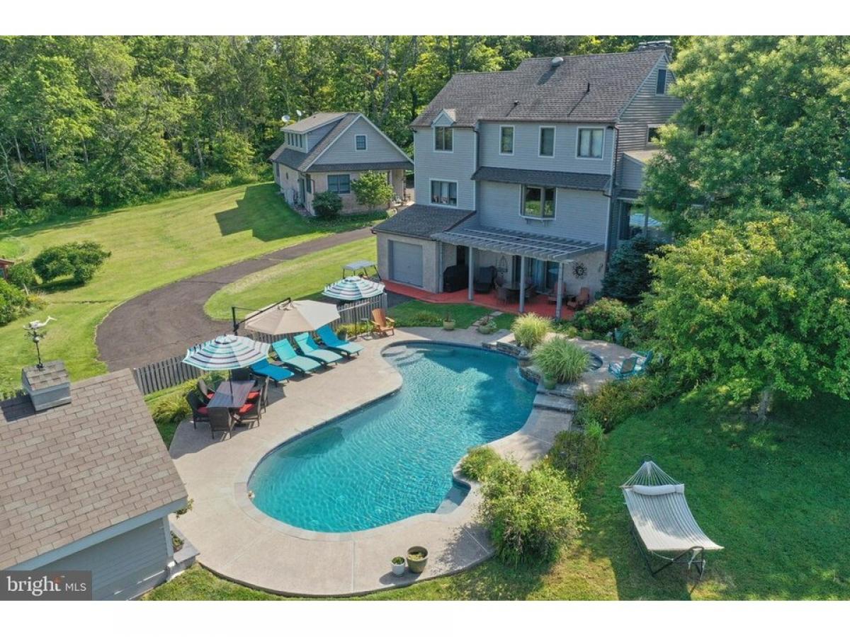 Welcome to Hidden Meadow, a beautiful country estate nestled in the heart of Tinicum Township. Set far off a quiet country road this custom built contemporary style home is surrounded by open rolling fields and a mature wood line without a neighbor in site. Enter through the front door to a two story foyer filled with floor to ceiling windows filling the room with natural light, hardwood floors and custom trim work. Step into the chef appointed kitchen with ten foot granite island. custom cabinets, stainless steel appliances, commercial range, coffee station and an adjacent sunlit sitting area. There is an expansive dining room with fireplace, hardwood floors, and recessed lighting. The addition of the 4 season sun room with custom built in bookshelves, cedar plank ceiling, a view over looking the pool and side door to the blue stone patio completes the main floor. The upstairs provides a spacious primary suite with fireplace, 2 full baths and two more generous bedrooms. The finished walkout lower level has a great room, built in cabinetry, a full bath, laundry room, oversized woodburning stove, French doors that open directly to the pool and an attached one car garage. The backyard is a private oasis with in-ground pool and spa surrounded by custom hardscaping, ornamental plantings and a mature landscape. The additional detached two car garage and well appointed dual guest quarters with full kitchen and bath for visiting friends and family complete this estate. The view from each window is as it was a century ago, and invites you to be a part of it#039;s whimsical disregard for the passing of time. This country home combines modern luxury amenities amp; comfortable spaces with a scenic pastoral landscape that has come to define the Bucks County experience. Easy access to Rt 611 amp; Rt 32 River rd. and Rt 78. 90 Minutes to NYC. A short drive to the Lehigh Valley, Doylestown amp; New Hope. Schedule your tour today.