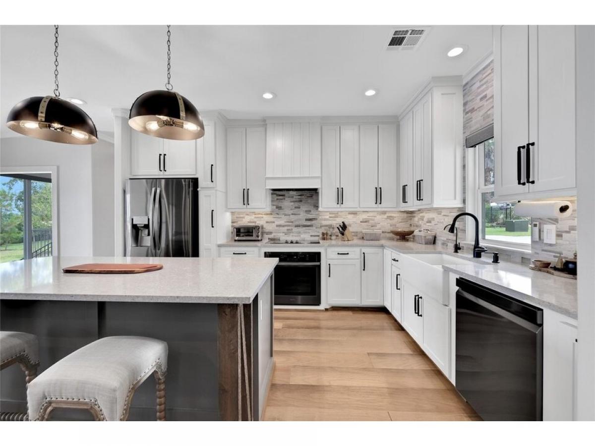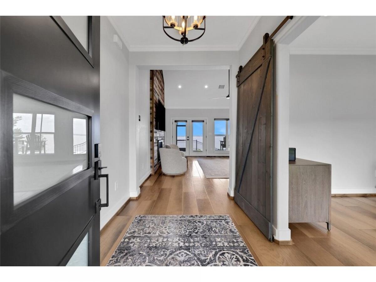 Experience luxury lake front living with an open water view! Located in a private, gated community on two expansive lots, this bright and airy ONE-STORY home offers nearly an acre of beautifully landscaped yard. Take a leisurely stroll to the boathouse down a wooded path, where you can easily hop onto your boat and spend a day cruising the lake. Enjoy stunning views of the lake from the outdoor living area with a heated pool and hot tub, the screened in porch with a summer kitchen or the cozy sunroom indoors. The many amenities include radiant heated flooring in primary bath, oversized walk-in closet, walk-in pantry, water softener with reverse osmosis, remote shades, full-house generator, full-yard sprinkler system, air-conditioned workshop, mosquito misting system and pool bathroom. All appliances and some furniture can convey.