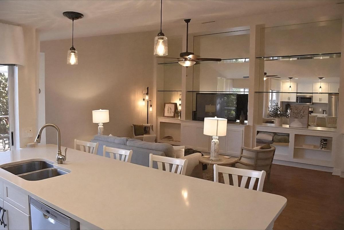 This beautifully remodeled townhome is one of the only properties currently available with a serene lake view, making it a rare and desirable find. The home has been thoughtfully upgraded throughout, offering a blend of comfort, functionality, and modern style. The A/C condenser was replaced in 2016, and the coil on the air handler has also been updated. Brand New AC 2025. Hurricane shutters for peace of mind, and the front door features keyless entry for added convenience. The lanai floor has been freshly painted, and the sliding glass door has new hardware and wheels for smooth operation.Inside, the ceilings have been refinished with the removal of outdated popcorn texture, and elegant 51/4 in baseboards have been installed throughout. The master bathroom has been fully renovated ....This beautifully remodeled townhome is one of the only properties currently available with a serene lake view, making it a rare and desirable find. The home has been thoughtfully upgraded throughout, offering a blend of comfort, functionality, and modern style. The A/C condenser was replaced in 2016, and the coil on the air handler has also been updated. Hurricane shutters are in place for peace of mind, and the front door features keyless entry for added convenience. The lanai floor has been freshly painted, and the sliding glass door has new hardware and wheels for smooth operation.Inside, the ceilings have been refinished with the removal of outdated popcorn texture, and elegant 5¼-inch baseboards have been installed throughout. The master bathroom has been fully renovated with high-end finishes, offering a spa-like retreat. The spacious great room boasts original oak hardwood flooring and a custom built-in unit that spans an entire wall, providing both charm and functionality. The kitchen has also been beautifully renovated, and a brand new hot water heater adds to the home's efficiency and value.This turnkey townhome is a perfect blend of quality upgrades and tranquil lakefront living.