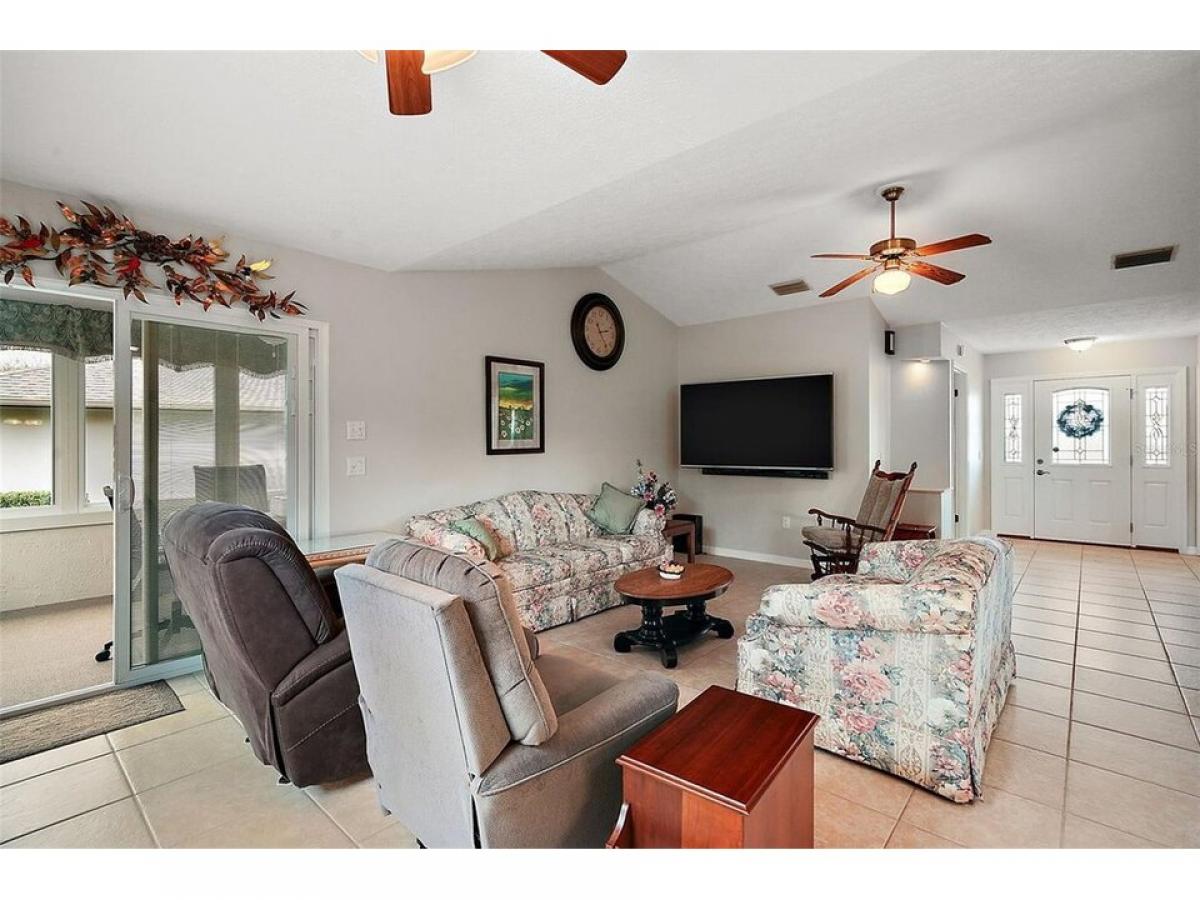 Under contract-accepting backup offers. Welcome to Stonecrest-A Premier 55+ Golf and Country Club Community! Experience resort style living in this fabulous 2-bedroom, 2-bath home with a spacious open floor plan. TOTAL SQUARE FEET 2,112, This home is move-in-ready home!!! Enjoy neutral tile flooring throughout, creating a clean and timeless aestetic. This home has amazing amount of storage!! The kitchen, dining and living areas seamlessly combine, offering a functional and welcoming space-perfect for entertaining. Updated kitchen featuring granite countertop, soft-close cabinetry, deep storage, and large kitchen window overlooking the spacious backyard. Primary suite boasts two closets, including an oversized closet, and an updated en-suite bath with granite countertops, soft close cabinetry and a linen closet. The guest bathroom updates with granite countertops, deep cabinetry, soft close cabinets, and a linen closet. The guest bedroom has a large walk in closet. Oversized one-car garage provides extra storage and plenty of space for your vehicle, golf cart and more. The lanai blending indoor and outdoor living. A 3YR old roof, A/C 1YR old, Water Heater 2022, Pella window inside the house and Anderson windows in the Lanai...This will not last!!! HOA FEE $148. 4 Pools, Jacuzzi, Baseball Field, Dog Park, Club House, Pickleball, Gym, Billiards, Shuffleboard, Theater, Maintance of the grounds, and so much more. Close to The Villages, Hospital, Doctors, Hair and Nail Salons, Restaurant, Food Shopping, and Drug Stores. What are you waiting for!!