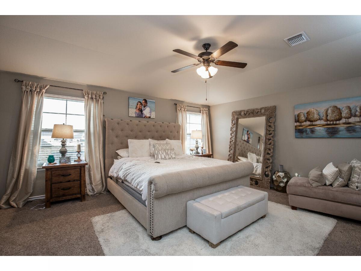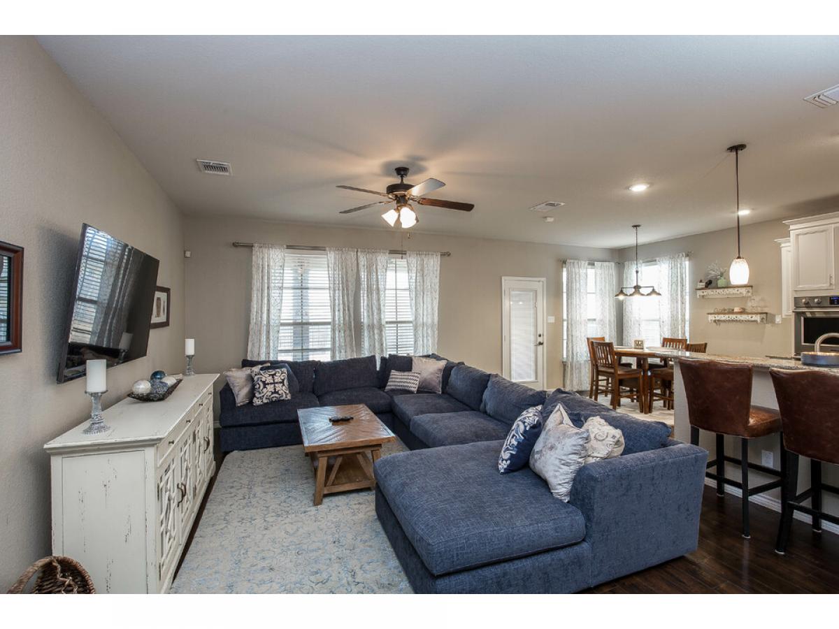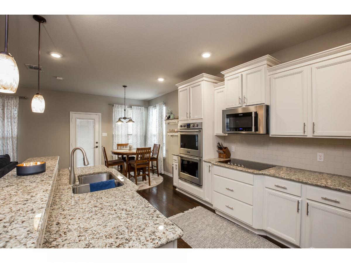 5 BR, 3.5 BA, 3 living areas, kitchen w/granite, double ovens, pantry, eat-at bar overlooking FR. Huge master suite, built-in office nook, iso. guest BR w/BA, movie rm, large covered patio, fenced backyard, 3 car garage, community park,pool, & golf.