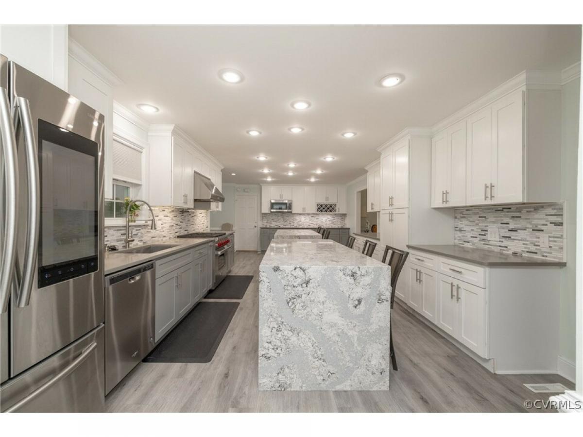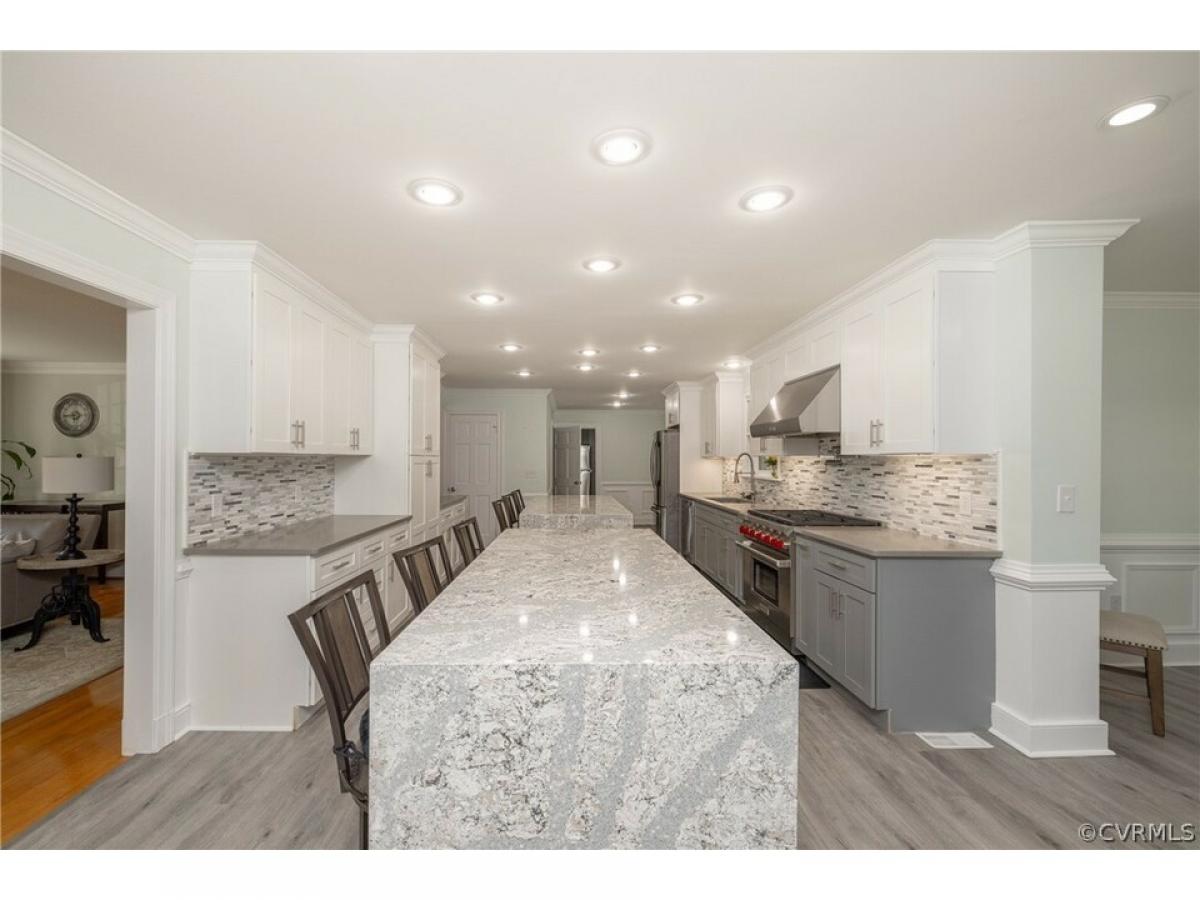 Welcome to 111 Chickahominy Bluffs Rd, where grandeur meets comfort in this stately brick-front residence. Nestled on a lush .68-acre lot, this 4280 sq ft home features 4 bedrooms, 3 full and 2 half bathrooms, and is situated in the serene and well-established Chickahominy Bluffs neighborhood. Step inside to find a home that is not just move-in ready, but one that has undergone extensive renovations and updates. The heart of the home, a chef’s kitchen, is equipped with dual waterfall islands—an epitome of luxury and convenience. The main floor glimmers with beautiful hardwood floors, leading you to a cozy living room adorned with a gas burning fireplace, perfect for chilly evenings. The charm continues in the family room, which hosts a second fireplace, adding a warm ambiance to every gathering. Upstairs, the primary bedroom is a true retreat, featuring a walk-in closet and a stunningly renovated en-suite bathroom with a stand-alone soaking tub, a stand-up shower, and a dual vanity. Three additional bedrooms on this floor share a well-appointed bathroom. The finished third-floor rec room offers endless possibilities for entertainment or relaxation. Outside, the home is an entertainer’s paradise, featuring a screened-in porch that overlooks a beautifully landscaped yard with an inground pool—your private oasis. The attached garage leads into a full workshop, perfect for projects or storage. Additional amenities include a whole-house generator, ensuring comfort and convenience no matter the weather. So many updates and gems in this home that it would be impossible to list them all. Don't miss the virtual tour and Video.