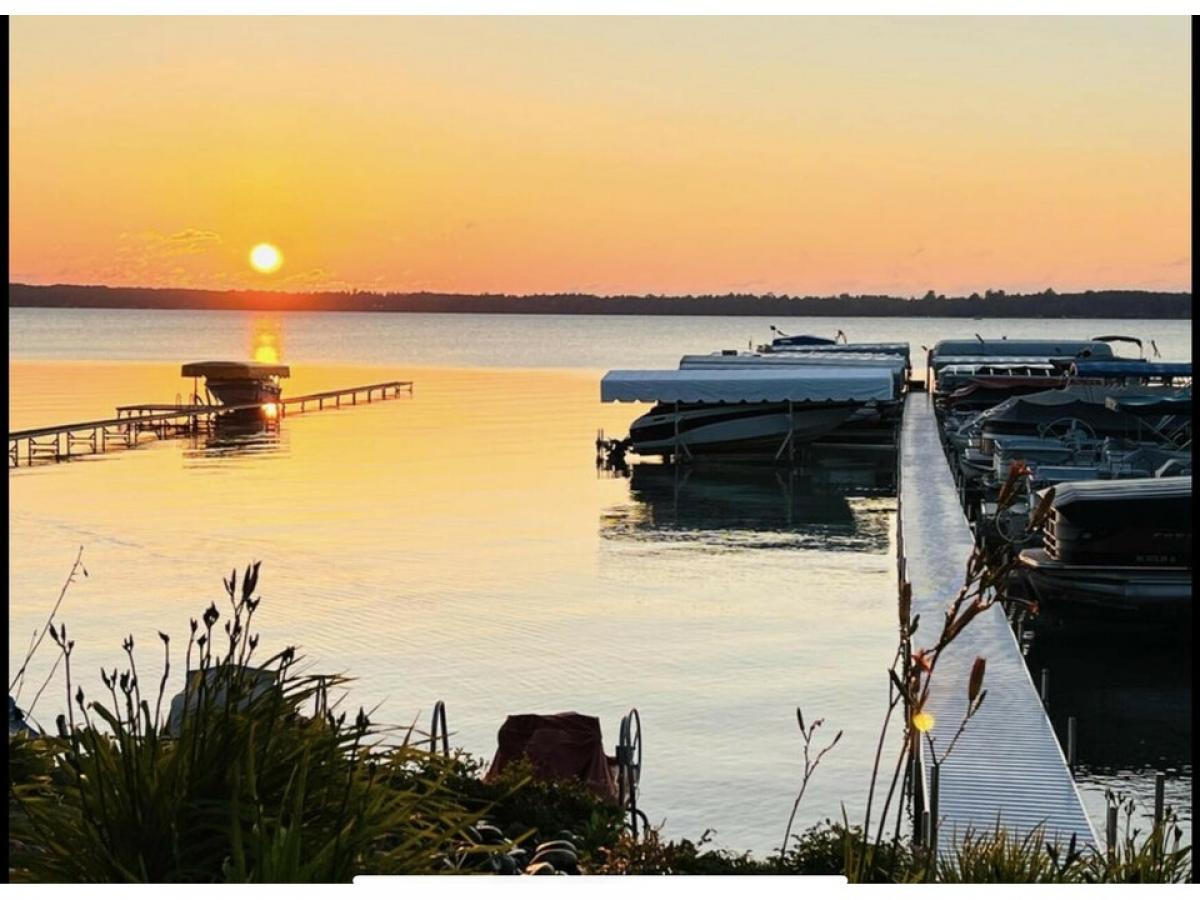 Deeded Higgins Lake docking, YES you can hoist your boat and jet ski for the entire summer as an association benefit. You will also have access to 246' of shoreline including a sandy beach, swim platform, park, and picnic area. This home is just 1 house from the lake and a few doors down from the beach, giving you partial water views and glowing sunrises. Take your morning coffee to the park bench and watch the day begin. The lovely ranch home is as cozy as can be with a corner gas fireplace in the living room, which flows from the kitchen and dining areas. Kitchen has a 5-burner range with double oven, plenty of cabinets, wood flooring, and a conversation bar. A corner sunroom with large windows will be a favorite place to play games and have your breakfast. 2023 updates include new