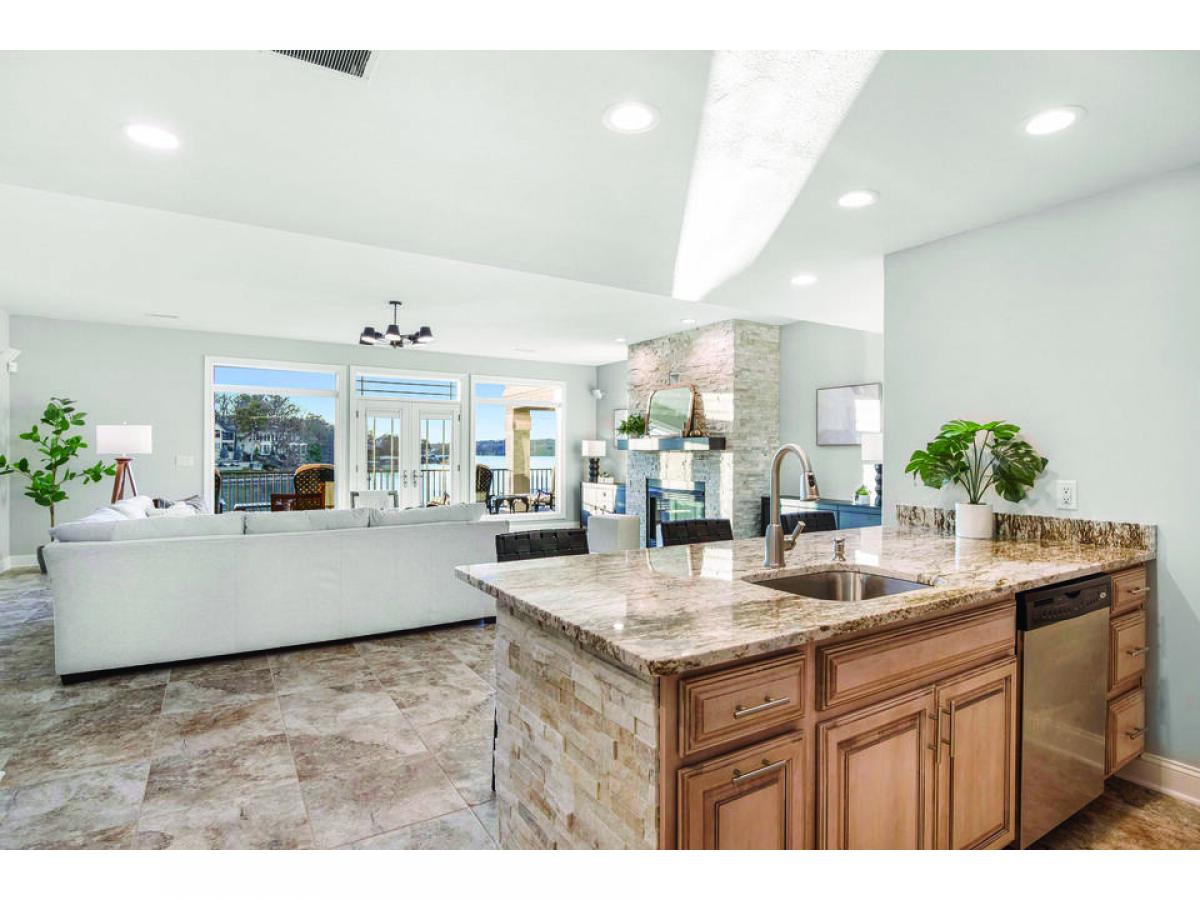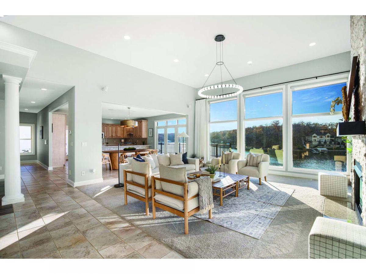 The lakeside of this home is where it truly shines with large covered and uncovered decks. When you're not lounging on the decks or large custom concrete dock, you are just minutes to the Porto Cima Club or a short boat ride to several of the lake's best waterfront dining options