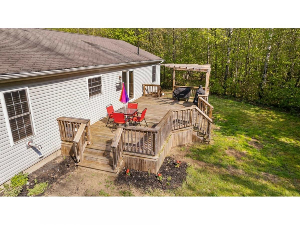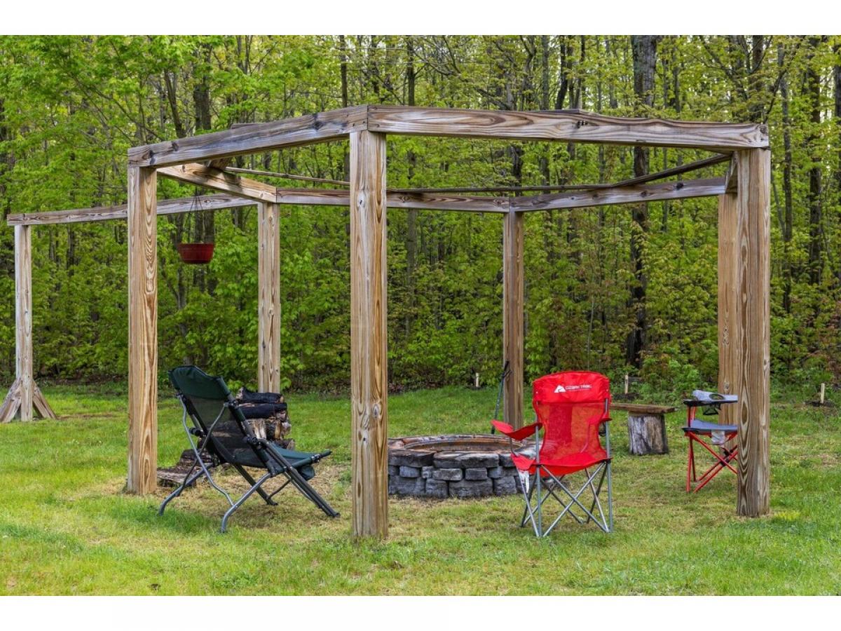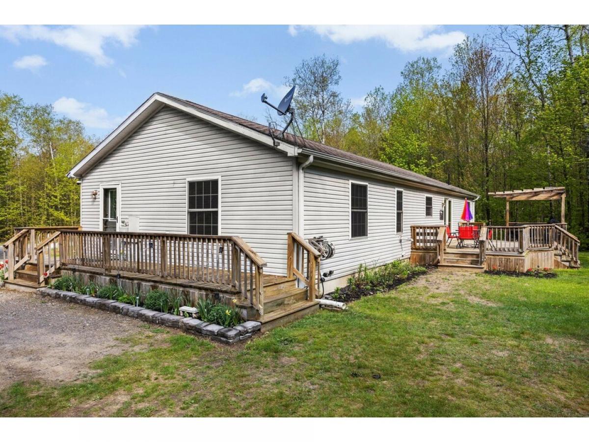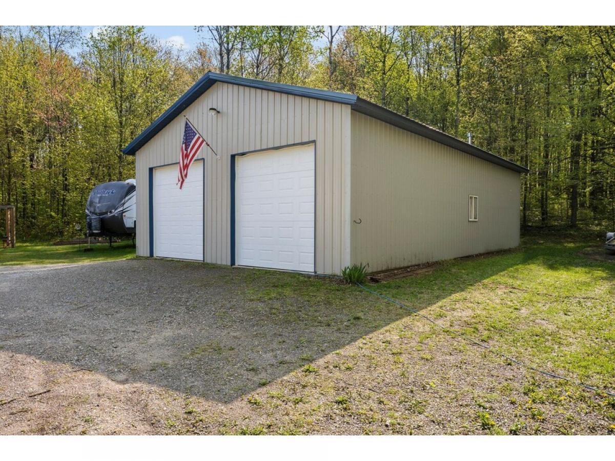 Set on a spacious, wooded lot with considerable privacy, this three bedroom, two bath ranch is perfectly suited for both the peace of the countryside and the amenities of the Lakes of the North Association. Each bedroom has a walk-in closet while the primary bedroom has an ensuite bathroom. Full unfinished basement with a working commode and pool table! The large deck provides ample space for outdoor dining and entertaining, and inside features an open-plan concept for living. A modern fire pit offers a gathering place for relaxation along with a landscaped lawn, flower beds, and herb garden. The sizable 30'x60' pole barn offers versatile space and includes two work benches, wood stove, cement floors and 4'' insulation throughout.