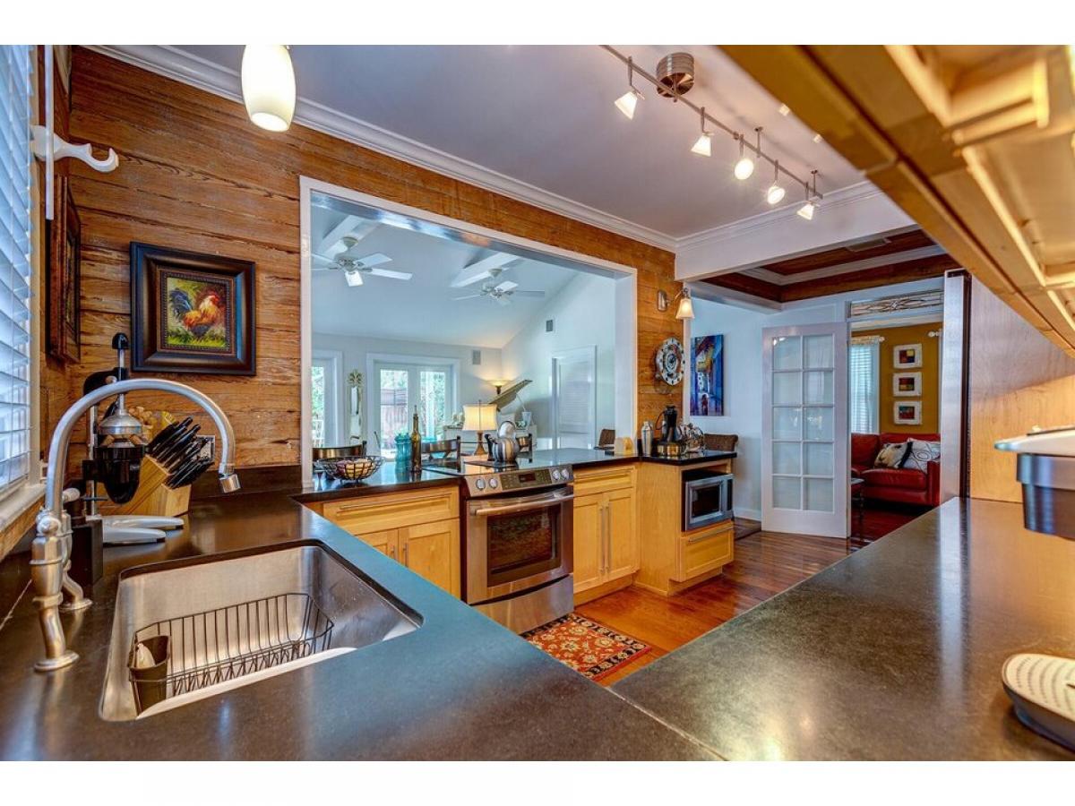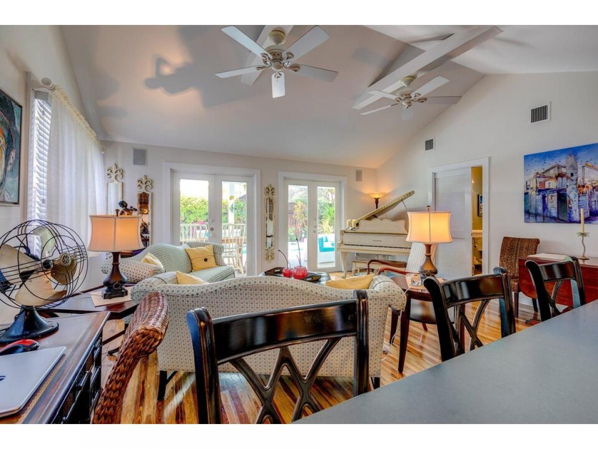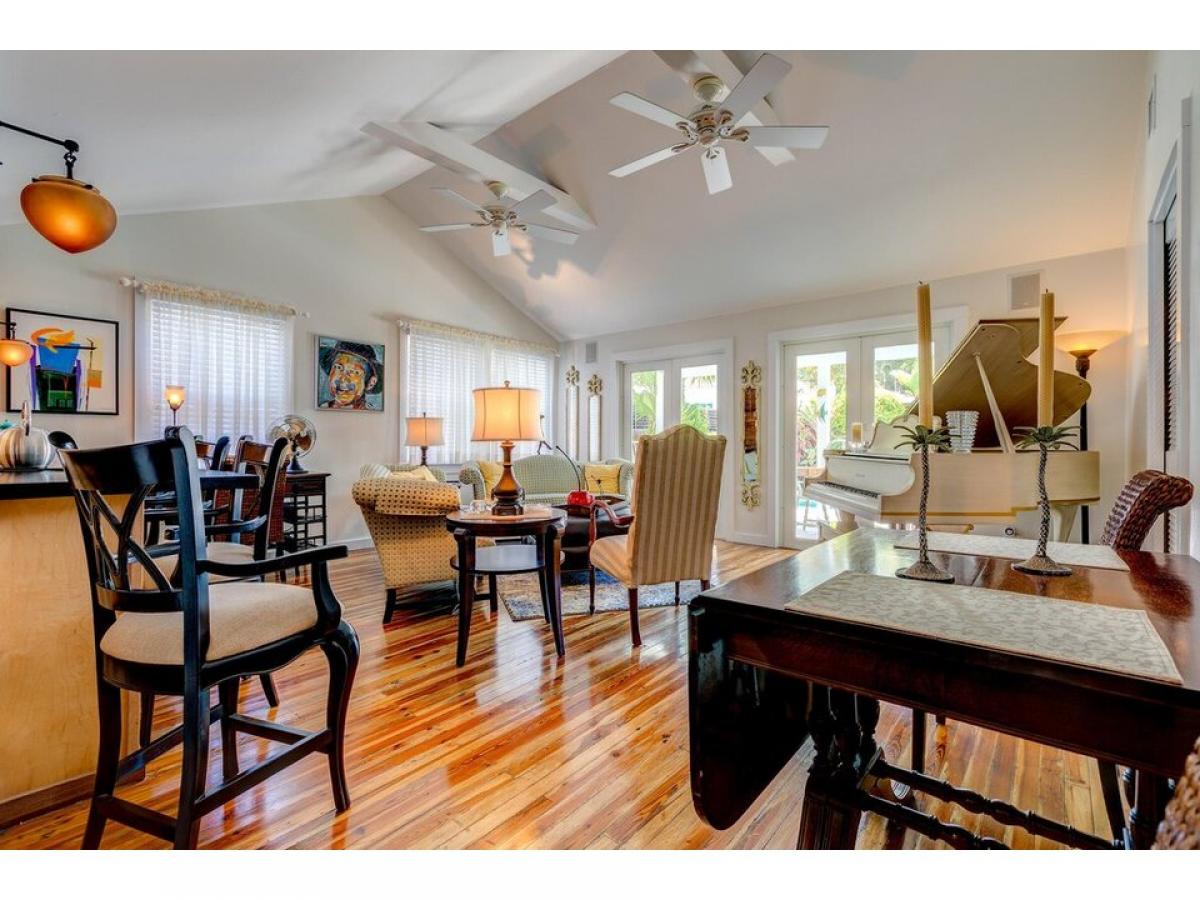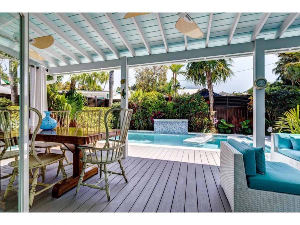 Nestled in the heart of Key West#039;s Historic Seaport District, this outstanding two-story residence is a true architectural gem. Tucked away on a tranquil lane with coveted off-street parking, the home#039;s origins date back to the 1850s, showcasing timeless craftsmanship with stunning historic details, including rich Dade County Pine walls and flooring. Designed with both elegance and functionality in mind, the thoughtfully curated layout boasts a beautifully appointed kitchen that seamlessly flows into a vaulted living and dining area. A striking wall of French doors bathes the space in natural light and opens onto a spacious, newly renovated composite deck and covered porch--an idyllic setting overlooking the lushly landscaped pool area. The sparkling 23-foot heated saltwater pool, complete with a tranquil waterfall feature and swim jets, is the ultimate private oasis. Enhancing the outdoor experience, a wet bar and outdoor shower provide both luxury and convenience. The kitchen is equally impressive, featuring sleek stainless-steel appliances, gleaming granite countertops, and a built-in wine cooler--perfect for entertaining. The main level offers a well-appointed bedroom and a stylish full bathroom with a deep soaking tub and exquisite Brazilian slate flooring. A versatile den on this floor provides the flexibility to serve as an additional sleeping area, making it ideal for vacation rentals or accommodating guests. Upstairs, the primary suite is a private sanctuary, encompassing the entire second floor. This serene retreat features two generously sized closets and a beautifully designed en-suite bathroom adorned with Brazilian slate finishes. Recent updates include new AC systems and an energy-efficient on-demand water heater. For added peace of mind, storm shutters protect all windows and doors. Offering a rare blend of historic charm and modern luxuries, this exceptional Key West home is a true island treasure.