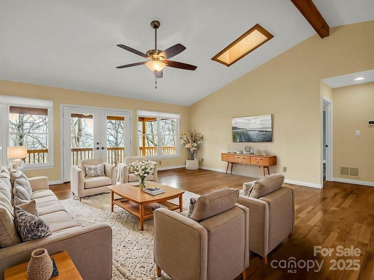 Beautiful Mountain Home Move-In Ready located in the heart of High Vista gated golf community on 1.02Ac just short dist.to golf course,pool pub.Easy flow upper main lev.flr pln.feat:Liv/Rm w/hardwood flrs.cath.ceil/decorative ceil.beam,skylights access to cov.frnt.porch 4 adtl.entertainment area(Fam/Friends alike will never tire of being surrounded by the beauty of nature,wildlife visitors and winter views of #11 Fairway/Green!).Split BedRM Plan for Privacy. Primary BdRm w/crown molding,hardwood flrs,en suite Ba w/jetted tub+shower stall.Kitchen w/oak cabinets,granite cntrs,SS appliances flows into Dining area w/dry-bar/coffee station. Frnt.door access LL Deck/French Doors to Basement w/Welcoming Entrance Foyer, access to main liv.lev.(past listing refers to a raised ranch),Full Ba and Den with Fireplace(FamRm/Den could be converted to ideal in-law suite,etc). Community near Ash.Reg.Airport, Fine Din,Entertainment,Medical,Shopping,Sierra Nevada,Asheville,HendersonvilleBrevard.