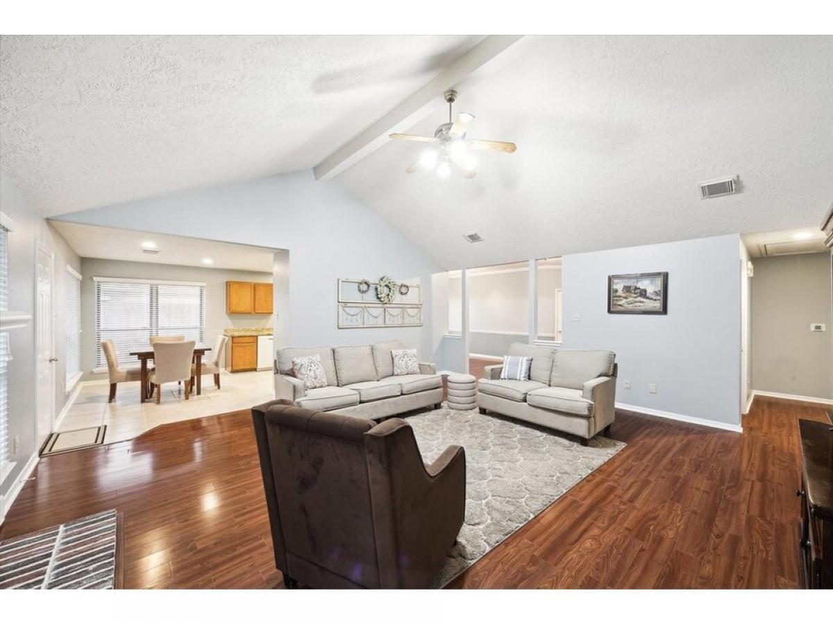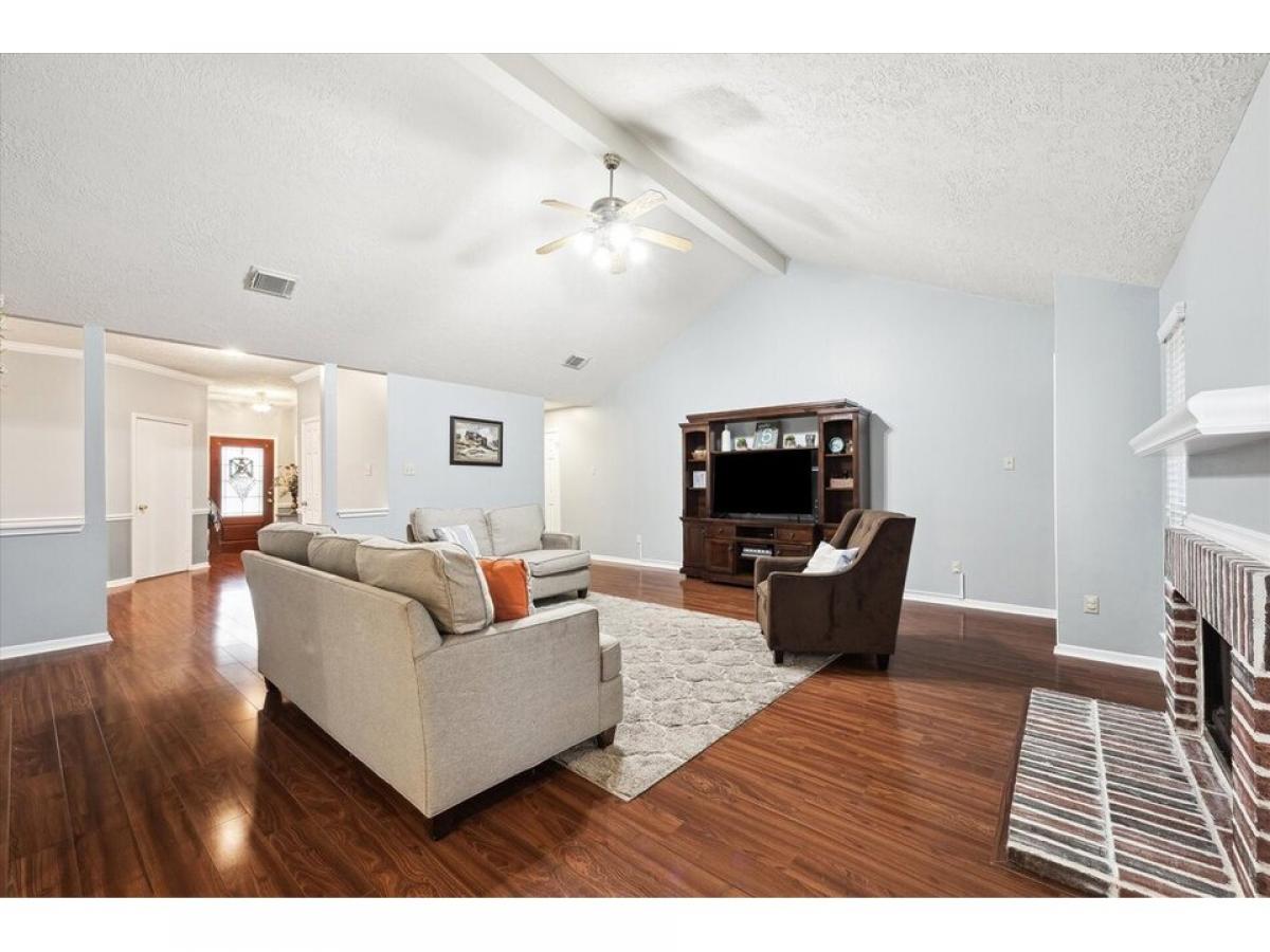 Welcome to this well maintained 3 bedroom, 2 bathroom brick home in the highly desirable Sunset Meadows. The home features a welcoming paved front porch, 2 car attached garage, and manicured front lawn. The dining room has custom built in cabinetry and is located next to the main living areas. The island kitchen features granite countertops and a breakfast room with large windows. The family room features a brick, gas log fireplace and vaulted ceilings with an exposed beam. The spacious primary suite features a walk-in closet, an en-suite bathroom with double sinks, and a vanity. The shower was remodeled to maximize size and features a jetted bathtub. The home office space has a closet. Paint, carpet and whole a/c system replaced in 2023. The back patio features custom brick work and the spacious backyard area is a nice place to enjoy a morning coffee or an evening glass of wine. Convenient location. Zoned to Pearland ISD.