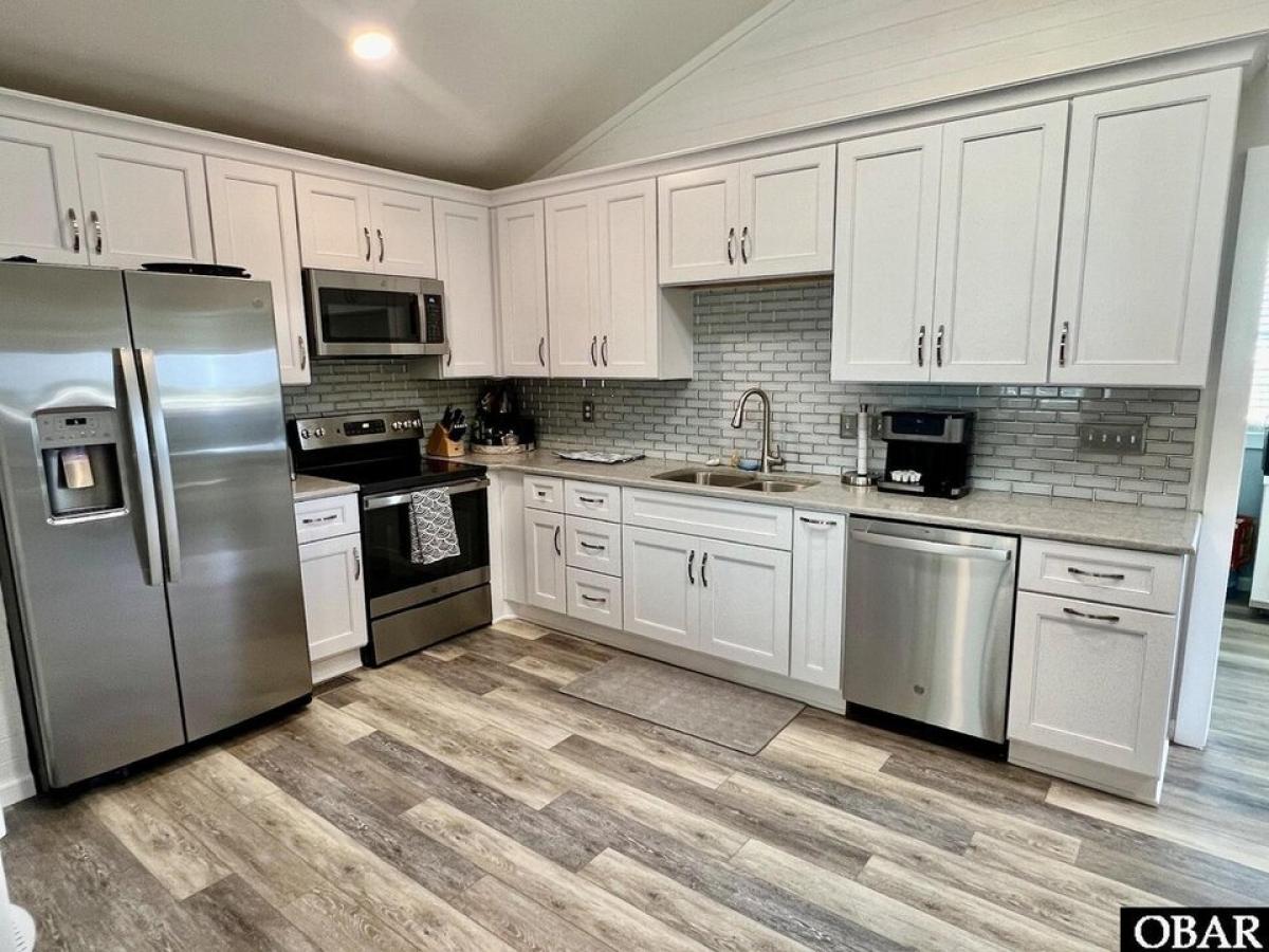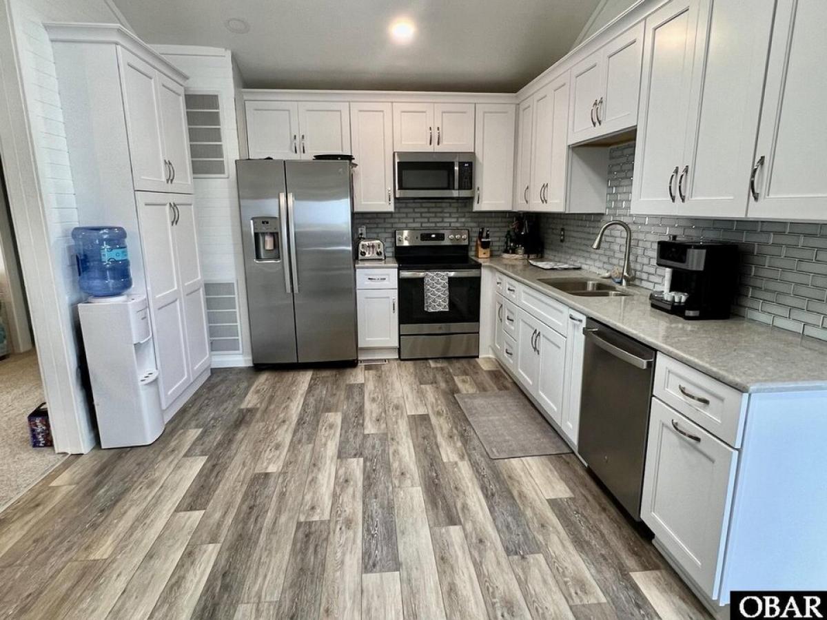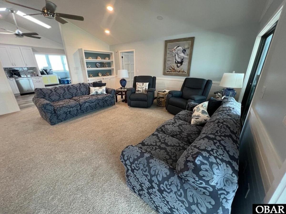 This Nags Head property is a boater#039;s dream! It#039;s prime location is directly across the sound from Pirates Cove Marina, a public boat ramp, and only a short ride to Oregon Inlet. The over 500ft of bulkheaded canal front, as well as two boat lifts creates the ideal set up for docking multiple boats, relaxing dockside under the gazebo, or even fishing along the canals. As you enter the home, you find an open foyer area leading you into the kitchen. Attached to the kitchen is the spacious dining area featuring built in shelving and counter space. The large open kitchen has stainless appliances, a tile backsplash, ample cabinet space, and granite counter tops. From there, you will enter a beautiful living area with built in shelving and cathedral ceilings. This room provides plenty of room to relax or entertain family and friends. To the right of the living room, you will find two bedrooms with a shared full bathroom. To the left of the living room is an ensuite with a nice sized bathroom, large tile shower, and two separate accesses to the back deck. Beyond the living room is a sunroom which is another perfect place to enjoy the sunsets or take in the amazing views this property has to offer. From the sunroom, you can also access the back deck or the spiral staircase leading you to the ground level of the home. While not included in the square footage of the home, the ground level has a lot to offer with 2 rooms, a full bath, a living area, and a beautiful private tackle room. Whether you are looking for outstanding water views, a location to make dockside memories, or a place to relax after a day on the boat, this Nags Head property has it all. Give us a call today to check out this one-of-a-kind Outer Banks opportunity! This property consists of two lots. Parcel A - 14,000 Sqft Parcel B - 18,000 Sqft