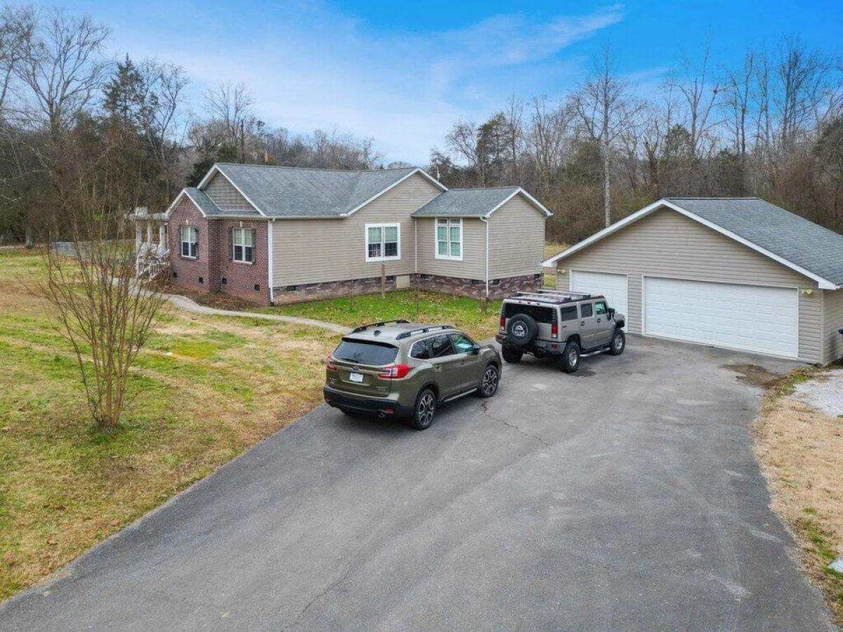 Welcome to this stunning 4-bedroom, 2-bathroom home, perfectly situated on 1.5 acres of unrestricted land, offering both privacy and space. This charming property features all one-level living with high ceilings and spacious rooms, including large closets and double coat closets for added storage. The expansive master suite boasts a huge en-suite bath with built-ins and a soaking tub, creating a relaxing retreat. Enjoy cooking and entertaining in the kitchen with a large island and custom built-ins in the living room. Step outside to the wrap-around covered porch, back deck, and fenced yard, ideal for outdoor living, plus a 3-car detached garage and a basketball court for endless fun. Conveniently located just 10 minutes from a public, free boat ramp to access the beautiful Watts Bar Lake. This home has it allmdash;don#039;t miss out!