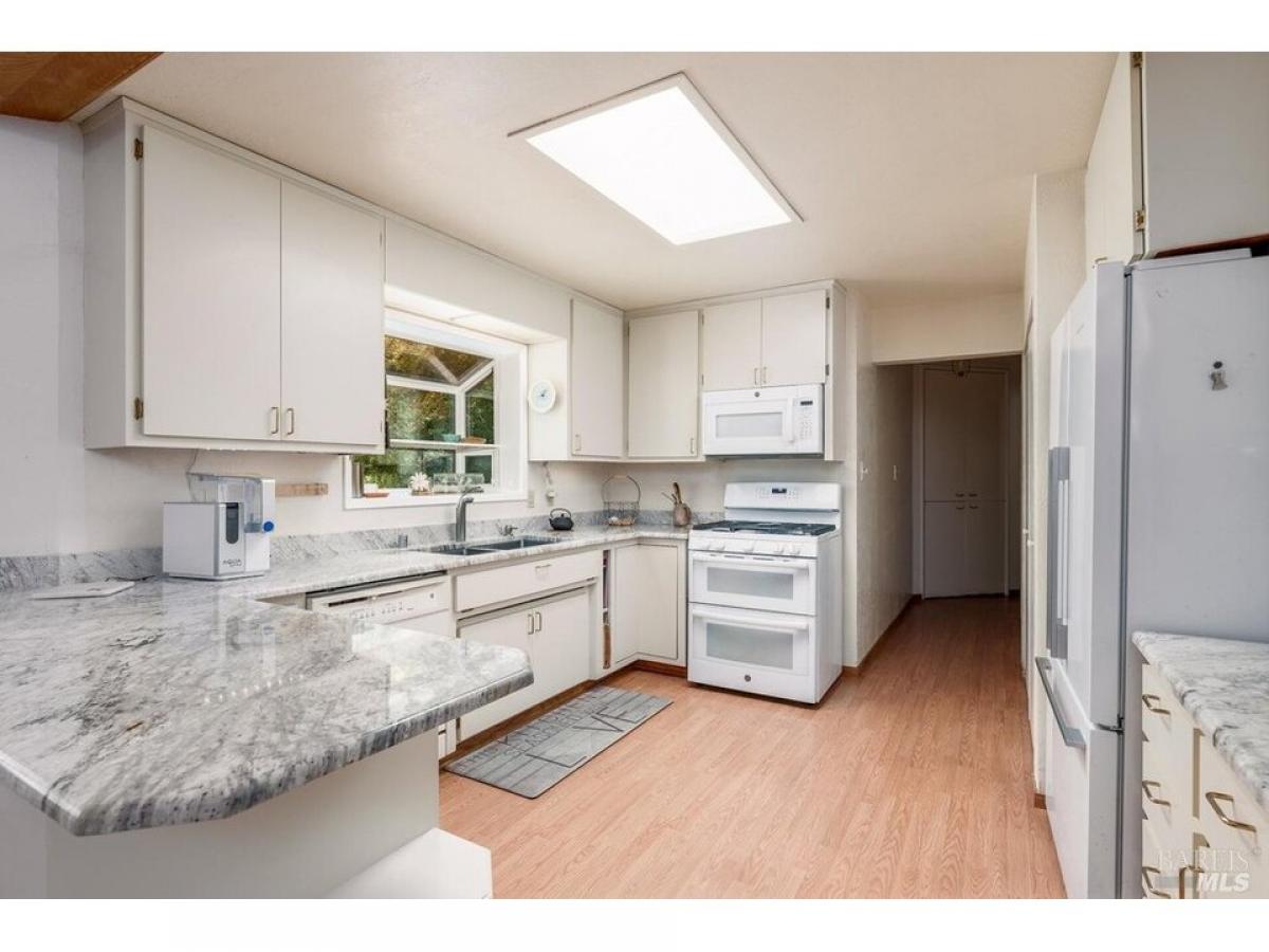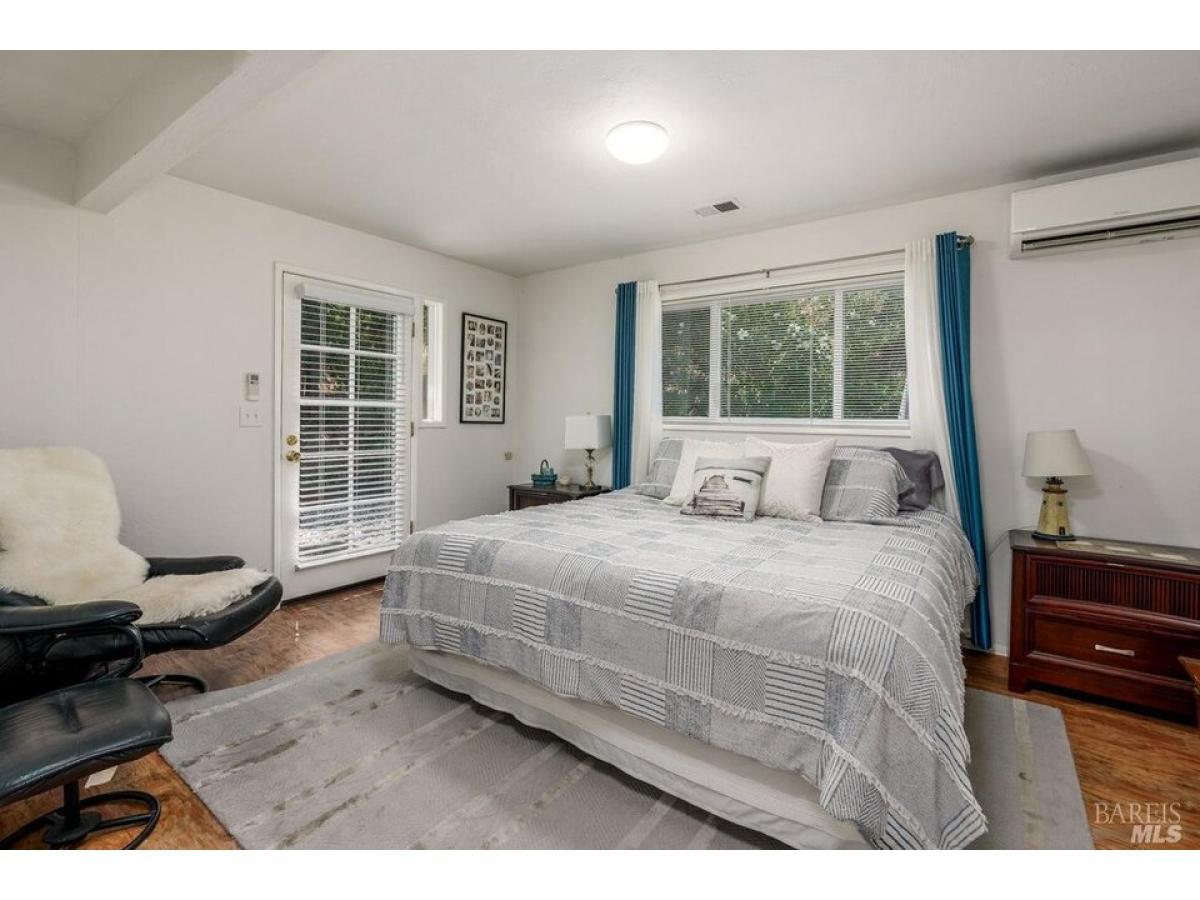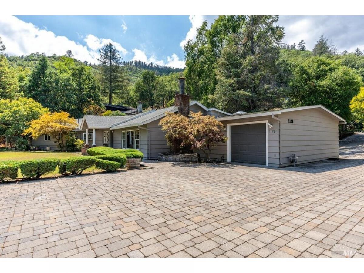 Beautiful, spacious ranch home on a large private lot close to town in Westside Ukiah! Tucked into trees at the secluded end of West Standley Street, you#039;ll find this sprawling 2,414 square foot home offering an open layout, ample entertaining space, and an airy feel with three bedrooms and three bathrooms. A charming living room with a bay window and fireplace greets you at the door and skylights shine through the broad adjacent family room with vaulted ceilings and wood plank walls. Two inviting dining options, both with vaulted ceilings, include the dining room with french doors and wood plank walls and a large breakfast room with a brick fireplace. Primary bedroom has a separate sitting area, walk-in closet, and exterior access to enjoy morning coffee on the adjoining patio. Tranquil grounds with a seasonal stream feature multiple areas to relax, such as the brick-paved patio with bench seating, shaded garden, gravel patio, and front lawn. A pull-through two-car garage and oversized driveway offers space for a boat and additional vehicles. Added convenience with owned solar and a generator. Just a few blocks to schools, Westside Market, and downtown. Come see this amazing Westside home!