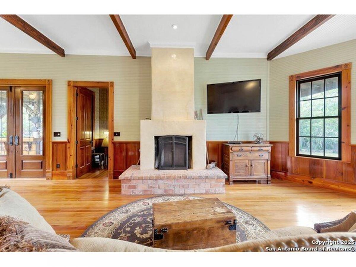 This luxurious home is a beautifully completed historic restoration/remodel featuring impeccable detail, reclaimed materials sourced from historic buildings, and custom high-end finishes throughout. The upgraded features of this home are many and include spacious rooms with 11#039; 5quot; ceilings and 8#039; interior doors, beautiful longleaf pine wood floors, battens, and bead board work, 5 wood-burning fireplaces, custom cabinetry, 3 bedrooms total (each with its own fireplace), 2 full bathrooms tiled with custom dual-head showers and separate tubs, and a separate half-bath for guests. The chef#039;s kitchen boasts gorgeous granite countertops in a leather finish, appliances, two sinks, a gas stove with dual ovens, and custom cabinetry. The open concept living, dining, kitchen area transitions out the back door onto a large covered deck with custom bar, outdoor kitchen, and entertaining space overlooking the back courtyard and mature trees. The outdoor living area is a must-see feature of this home! A second living area inside the home adjacent to the main living room could be used as an office, formal dining room, or a second living room. The stately master bedroom has its own wood-burning fireplace as well as an on-suite bathroom with travertine stone tile, custom dual-head shower, private toilet closet, separate vanities, and a jetted tub with a direct line of site to the bathroom#039;s dedicated flat screen TV. Adding to the uniqueness of this property, the home boasts a quiet location in town, sitting on a corner double-lot with two churches as nearby neighbors. Also offered with the sale of the home is an additional nearby vacant lot to further buffer the home-site from neighbors. This unique property is full of possibilities and would make an amazing residence, commercial office, short-term vacation rental, or wedding/event venue.