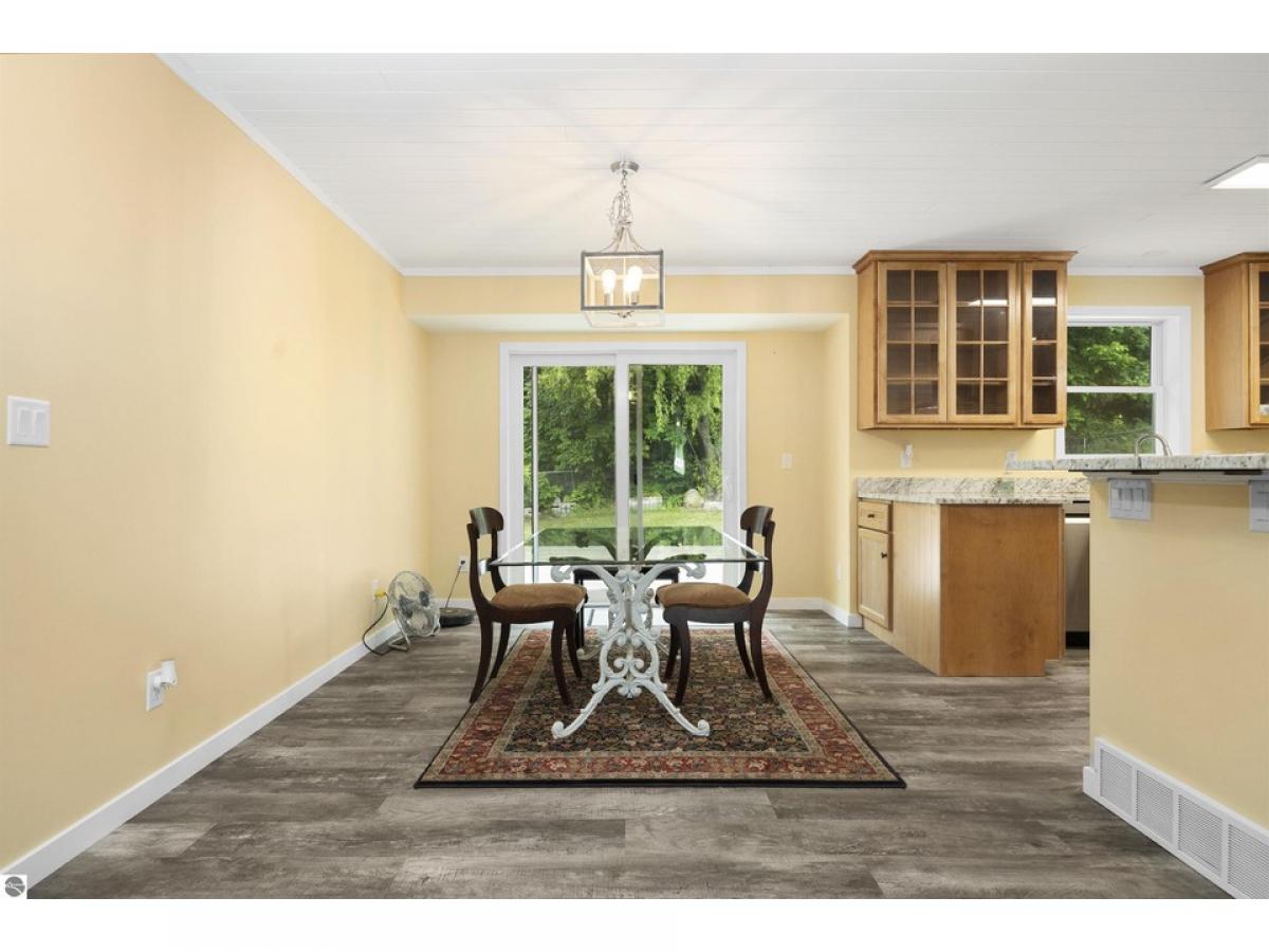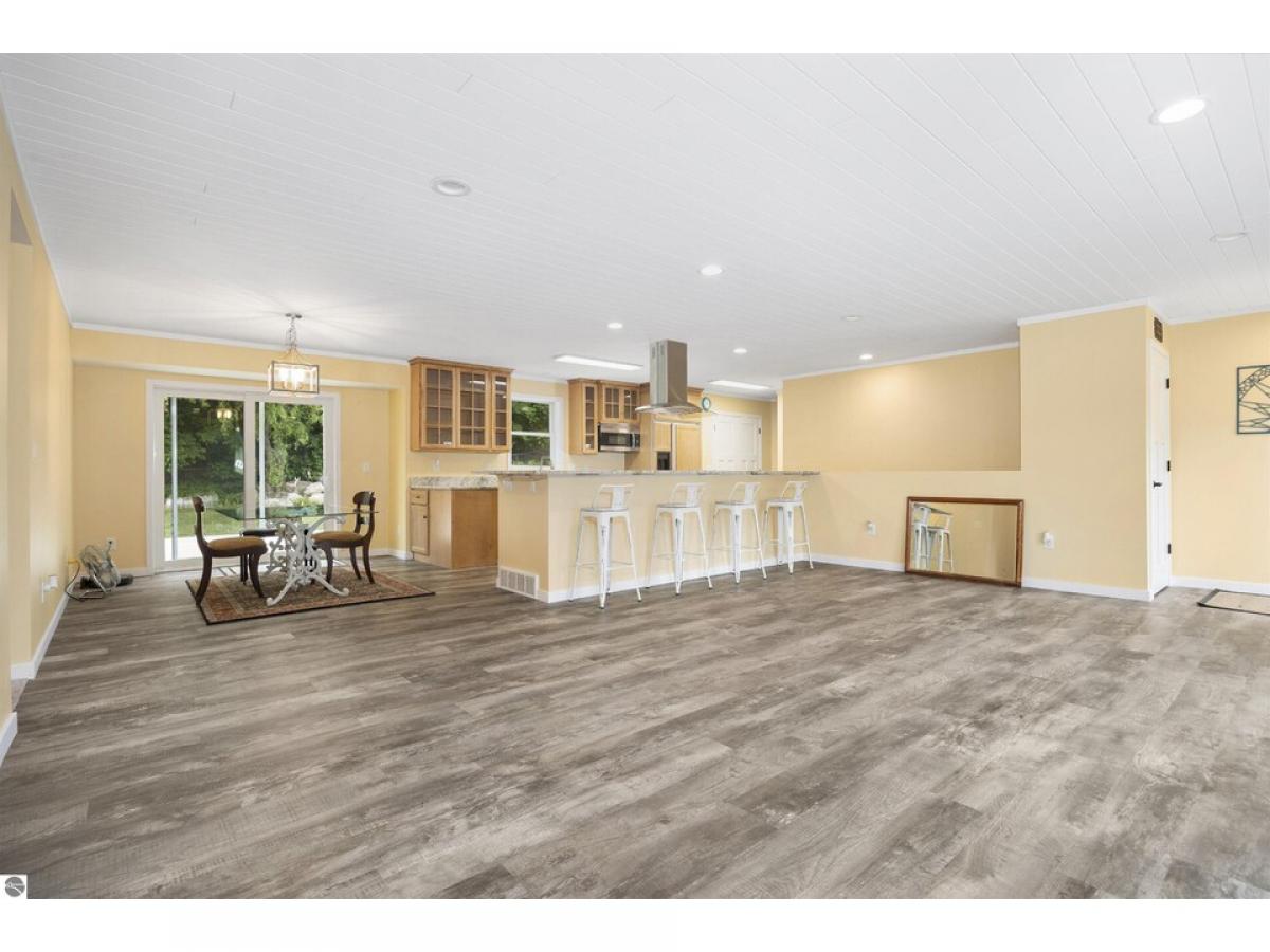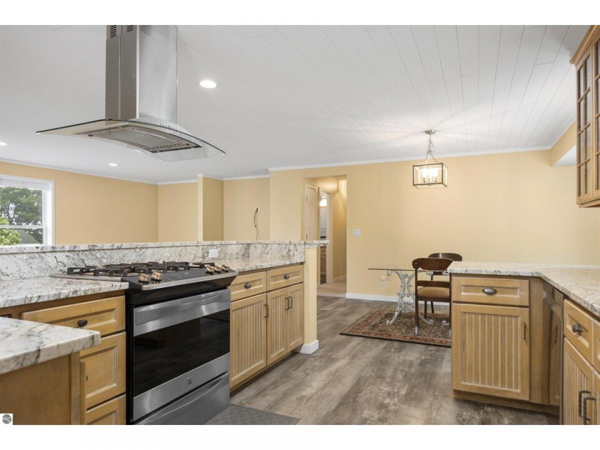 Orchard Hills Living with shared Torch Lake beach front park is offered with this updated 3-bedroom, 2.5-bathroom home. Greeted with the newly updated and remodeled open-concept layout, perfect for both relaxation and entertaining. The spacious kitchen, boasting elegant granite countertops, ample storage with pull-out cabinets and a pantry, complemented by stainless steel appliances including a stove and dishwasher. The kitchen shares the open space with the dining and living room, all adorned with newly remodeled windows, flooring, and doors, creating a great space for gatherings with friends and family. The main floor owner's bedroom, complete with an attached private bathroom featuring a shower. Two additional well-appointed guest bedrooms share a full guest bathroom. Step outside through the sliding glass door off the dining room onto the back deck, where outdoor living awaits. Inside the fenced backyard, you'll find a patio, an outdoor gas fireplace, and a wood-burning fire pit, perfect for cozy evenings under the stars. For those who love the convenience of RVs or extra toys, an additional stone driveway complements the paved driveway and heated, drywalled attached garage. The second garage offers drive-through access to the backyard, making maneuvering a breeze. An storage shed in the backyard for gardening tools. Residents can join the Beach Club for access to a shared beach for a nominal yearly fee. Surrounded by lush greenery near the end of a peaceful cul-de-sac on a paved county-maintained road. Elk Rapids School District. Conveniently located near Torch River, Kewadin and Elk Rapids. Ready for immediate possession, this home presents an opportunity to experience the best of Orchard Hills living.