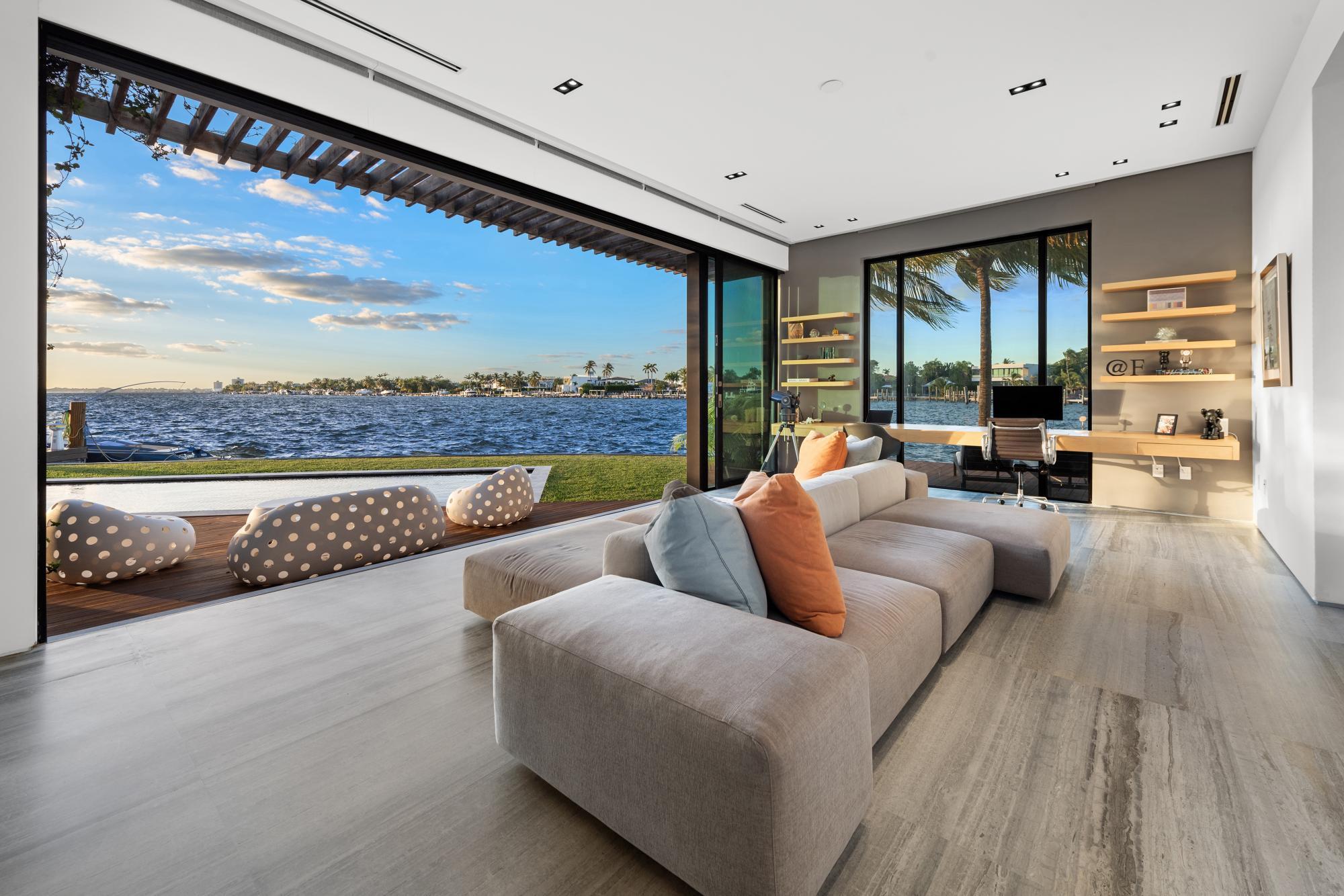 Modern masterpiece on guard-gated Biscayne Point Island. Experience exceptional wide bay sunset views from this boaters paradise, tucked away on an ultra-private peninsula with 360 of water frontage. After recently completing a 4-year renovation in 2023, the home offers elegant interiors by Deborah Wecselman, Great Room with 25 high ceilings sliding doors that completely recess, custom finishes imported from Europe, wine cellar, gleaming wood floors, water views from every room. Enjoy a primary suite with huge walk-in closets a gorgeous bath with soaking tub dual vanities. Perfect for entertaining, the backyard boasts a pool, summer kitchen, Alfresco dining, putting green, jet ski lift 2 boat docks. Complete with impact windows doors, solar panels, carport w Tesla charging station.