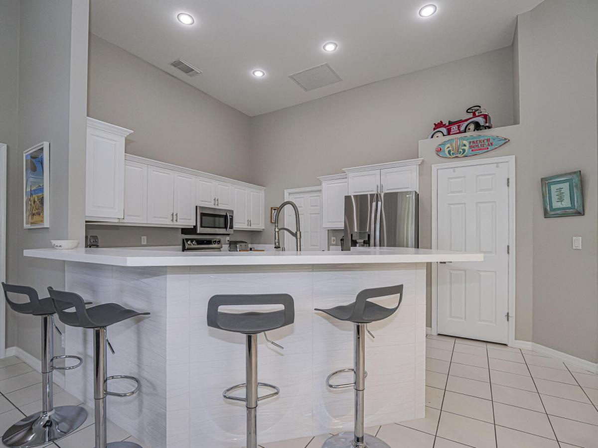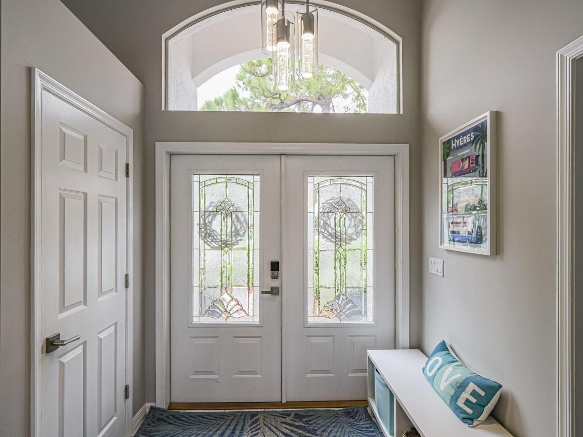 Stunning 3BR/2BA lakefront pool home on one of the community's largest lots offers the perfect blend of tranquility and modern comfort. This move-in ready gem features brand-new flooring throughout, dual new A/C units, fresh interior and exterior paint, and complete hurricane protection for peace of mind. The spacious open floor plan flows seamlessly to a screened-in pool area--your private oasis overlooking serene water views, ideal for entertaining or unwinding. Located in a secure gated community with top-rated schools, this home combines convenience with charm. EXCEPTIONAL BUYER INCENTIVE: Seller offers up to 3% closing cost credit Don't miss this rare opportunity to own a beautifully updated lakefront retreat with space, style,