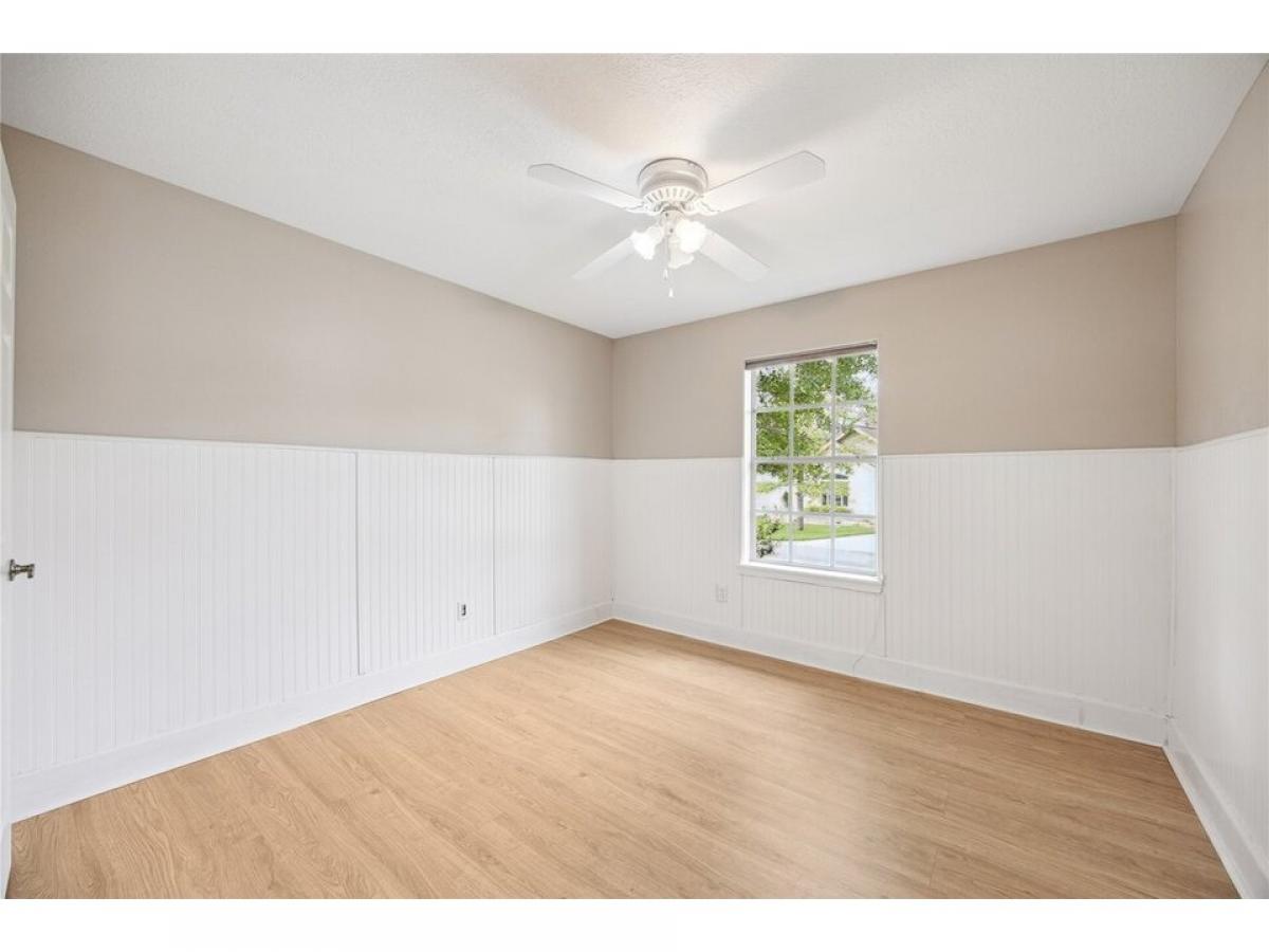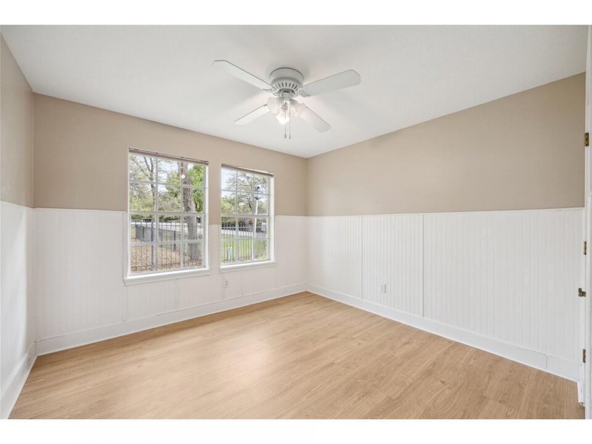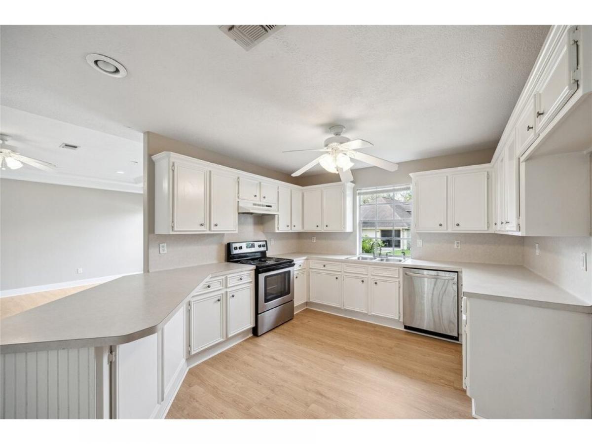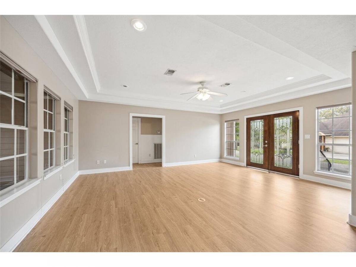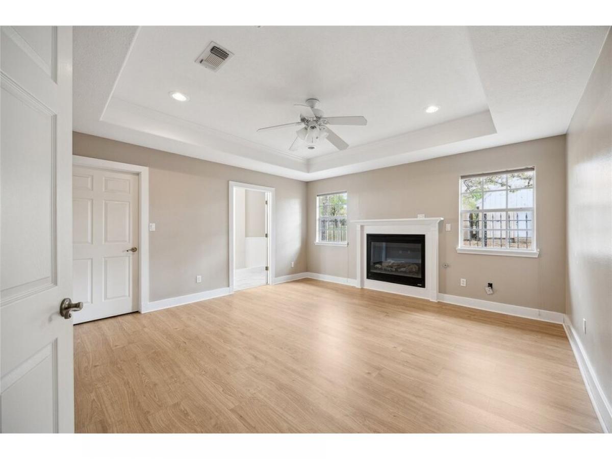 Welcome to this charming 1-story home in the secure, senior-friendly Park Place Subdivision. Built in 2003, this well-maintained residence offers 3 spacious bedrooms, 2 full baths, and sits on two joint lots. Step through elegant leaded-glass double doors into a bright family room with new wood flooring, fresh paint, a tray ceiling, and abundant natural light. The open layout flows seamlessly into the dining area and stylish kitchen, featuring classic white cabinetry, wood flooring, and stainless steel appliances. The primary suite boasts wood floors, a tray ceiling, a gas log fireplace, and an ensuite bathroom with a dual vanity, walk-in shower, and spacious closet. Two additional bedrooms feature wood floors, wainscoting, and large windows. A second full bath offers a pedestal sink and tub/shower combo. Enjoy the outdoors from the screened-in, covered patio with crown molding and ceiling fans, overlooking the shadded backyard.