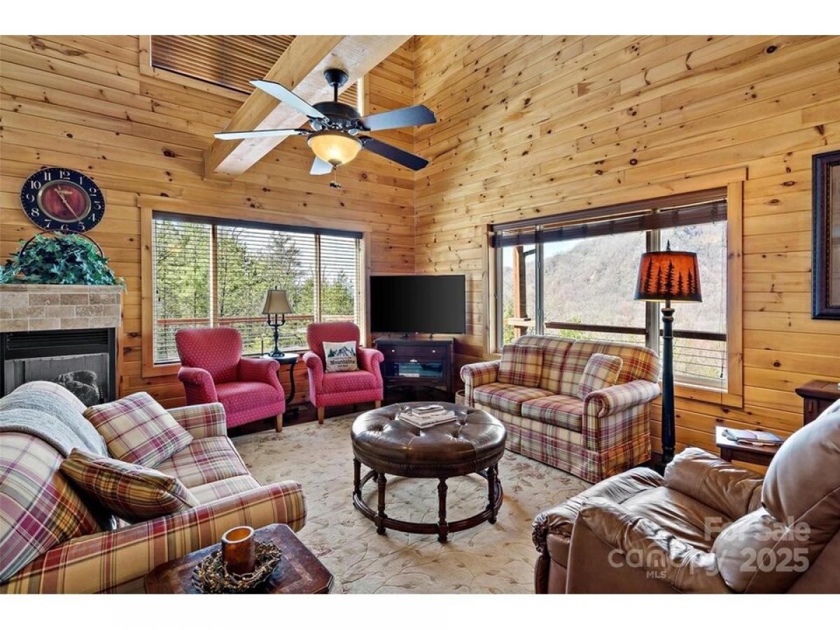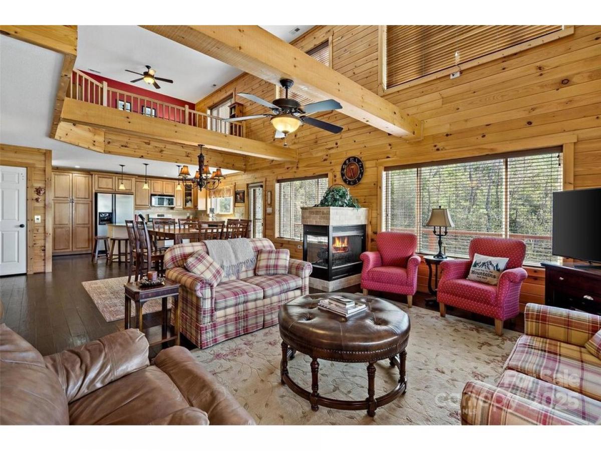 Come home to your private retreat in the mountains! Gorgeous long range views for miles situated on 2 acres adjoining Pisgah National Forest in a gated community. Cozy up to the fireplace in the winter, enjoy the cool breezes during the summer. Home features 4 levels, open floor plan, 3 bedrooms, a loft, 3 full bathrooms, 1 half bathroom, large wraparound deck, laundry room and an attached garage. An elevator, giving easy access to the first 3 levels, also adorns this magnificent property. Perfect combination of luxury and elegance in a cabin setting. Immaculately maintained home was used as a family gathering space with a lot of memories made. Lower level can be a private apartment or game room. Top level could be finished and turned into a recreation room. Vacation rentals allowed. All furnishings convey. Just 10 minutes to Linville Falls, Blue Ridge Parkway, Linville Falls Winery, 15 minutes to access the Linville Gorge Wilderness and 40 minutes to Boone and Banner Elk.