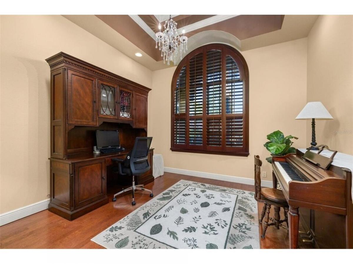 Nestled in the heart of Oviedo in the highly sought-after Ellington Estates community, this custom-designed home exudes sophistication and modern luxury. With five spacious bedrooms, four beautifully appointed bathrooms, and a dedicated office space, this home offers the perfect blend of functionality and elegance. Every detail has been thoughtfully crafted to ensure maximum comfort, from the expansive walk-in closets to the plantation shutters that add a touch of timeless charm. Set on over a half-acre of lush, professionally landscaped grounds, this residence offers privacy and serenity, with no rear neighbors to interrupt the tranquility of your backyard retreat. The home#039;s striking pane glass windows allow natural light to pour into the kitchen and cafe area, creating an inviting atmosphere that connects the interior with the exterior peacefulness. Step through the multi-slide patio doors and into your own personal paradisemdash;a screen-enclosed, custom-designed saltwater pool with fountains and falls thatrsquo;s solar heated for year-round use. Relax under the elegant pool pergola or unwind on the beautifully crafted patio pergola nestled within the exterior garden. The expansive outdoor space, complete with Tremron pavers and a cozy fire pit, is ideal for both intimate evenings and lively gatherings. The home also features a three-car garage, complete with an electric vehicle charger, offering both convenience and sustainability. Recent upgrades, including a brand-new roof, ensure peace of mind for years to come, while the homersquo;s location with top-rated schools makes it an ideal choice for families. With easy access to the 417, yoursquo;ll enjoy the perfect balance of seclusion and connectivity. This home is more than just a place to live; itrsquo;s an experience, a true sanctuary where every corner has been designed for relaxation, comfort, and style.