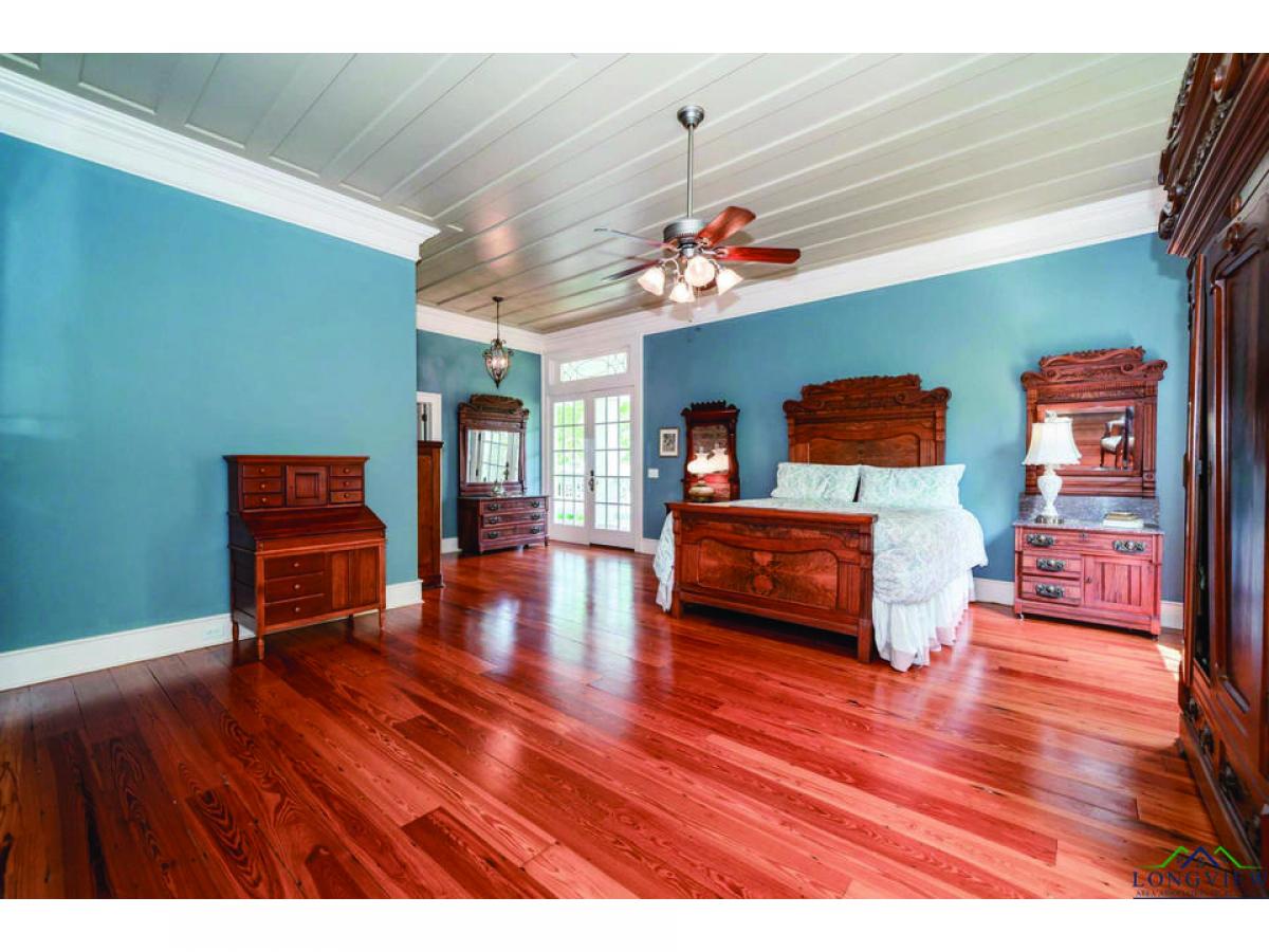 Step back in time to a meticulously restored home of great quality, craftsmanship and history. Built between 1860 and 1864 for Samuel Scott, this Greek Revival home embodies timeless, classic elements making it a genuine charmer. From high ceilings to reclaimed long leaf pine and handmade brick floors, there is style at every turn. With 6,920 square feet, three stories, four bedrooms, five full baths and one half bath, a central dog trot and wrap around porches on the first and second floors, this paragon of timeless beauty and rich heritage allows gracious ease of living with its updated, modern conveniences. Carefully restored and enhanced as a comfortably refined home of extraordinary character, this property is notable for its elegant details and tasteful ensemble of living and entertaining areas. Renovated from 2008 to 2012, the home was taken down to the dirt floors and returned to its grandeur. Handmade bricks adorn all six original fireplaces. The formal living and dining rooms with the inviting study, parlor and kitchen open onto the central hallway. Offering a versatile layout with multiple living spaces, an east wing was also added with a spacious den, a full bath, a laundry/mud room and a side brick courtyard terrace. Expansive floor to ceiling windows provide natural light and beautiful views of the well-manicured 8.39 acres. In addition, there's an outdoor covered patio with a fireplace just outside the study. Some of the home's highlights include the authentic cistern inside the back porch, updated and fitted with cypress wine racks to accommodate up to 500 bottles; and a restored root cellar under a trap door in the dining room. A gourmet country kitchen with a refurbished general store seed bin as an island, an antique modernized stove, refrigerator, and stainless-steel appliances further the charm of this historic home. The second floor consists of four bedrooms and three bathrooms. The private primary bedroom wing includes two sitting rooms, one with a fireplace, expansive walk-in closets, a luxurious shower, two vanities and a claw footed tub. French doors open onto balconies overlooking the captivating grounds. The three additional bedrooms contain many large windows, fireplaces, pine floors, generous closets and two bathrooms with footed tubs and slate floors. The home's third floor is used as another living area with built in cabinets, plentiful storage space and a full bathroom. This space could become a private suite as a fifth bedroom. Majestic trees, stables, barns, gardens, workshops and a 1,000 square foot carriage guesthouse complete with two additional bedrooms, one full bath, a kitchen, and two living areas complete the overall ambiance and charm of this gated property. The possibilities and potential are endless for this fascinating estate as it could become the perfect destination for most venues and/or provide equestrian opportunities only 35 miles from Shreveport, La and 2.5 hours away from Dallas. Come and make this picturesque historical property yours.