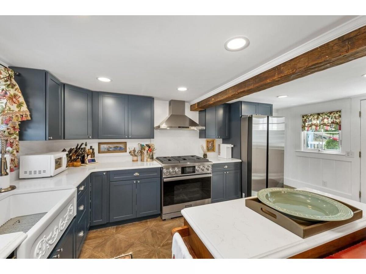 You can be in your fabulous new home in time for all the Summer activities Wolfeboro and the Lakes Region have to offer! This re-born 1812 expanded Cape with small barn on 2 acres has been restored to better than new- the charm of yesterday with every high-end modern convenience. Move right in and enjoy the gourmet kitchen, 3 BRs, 3 and half spa bathrooms, first floor primary BR suite with French doors to the private pocket garden, spacious deck for grilling and relaxing just off the kitchen. The inviting LR features an original brick FP that has been restored for those chilly evenings. A library/office with built-in bookshelves as well as a dedicated laundry offer true one floor living, with 2 additional ensuite bedrooms for family or guests on the upper level. Don#039;t miss this rare and unique offering!