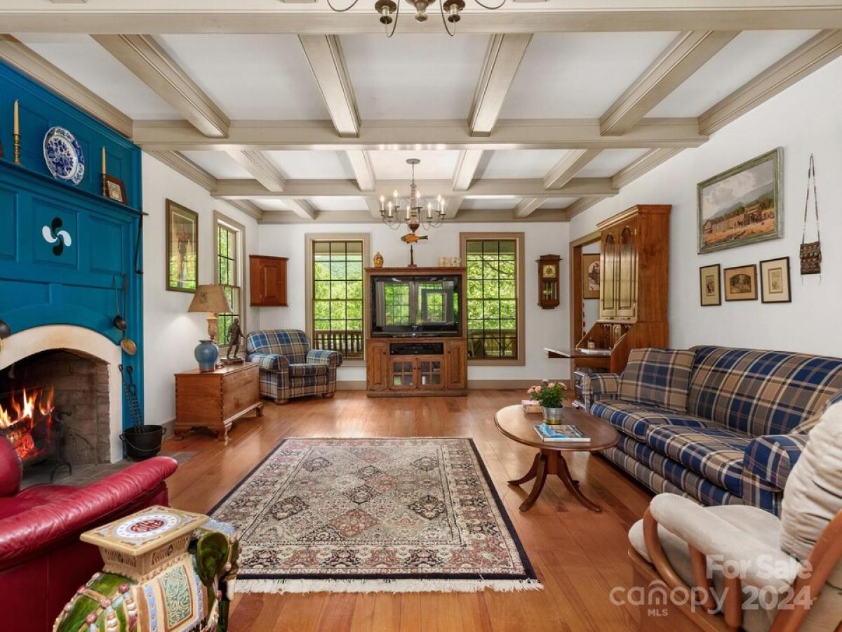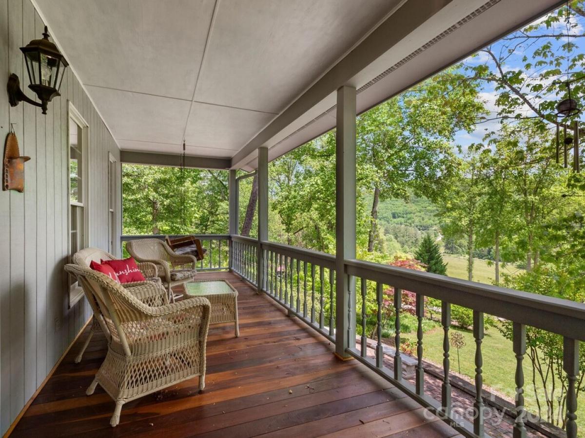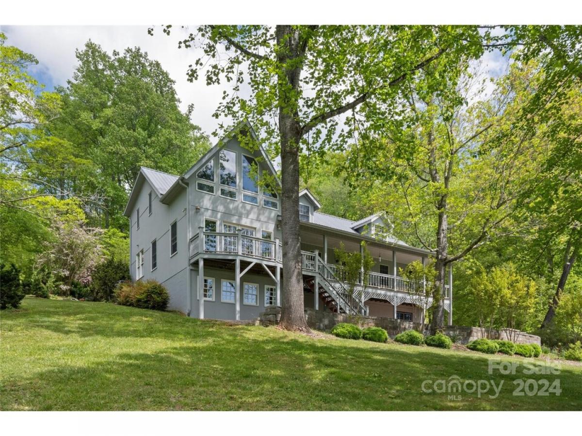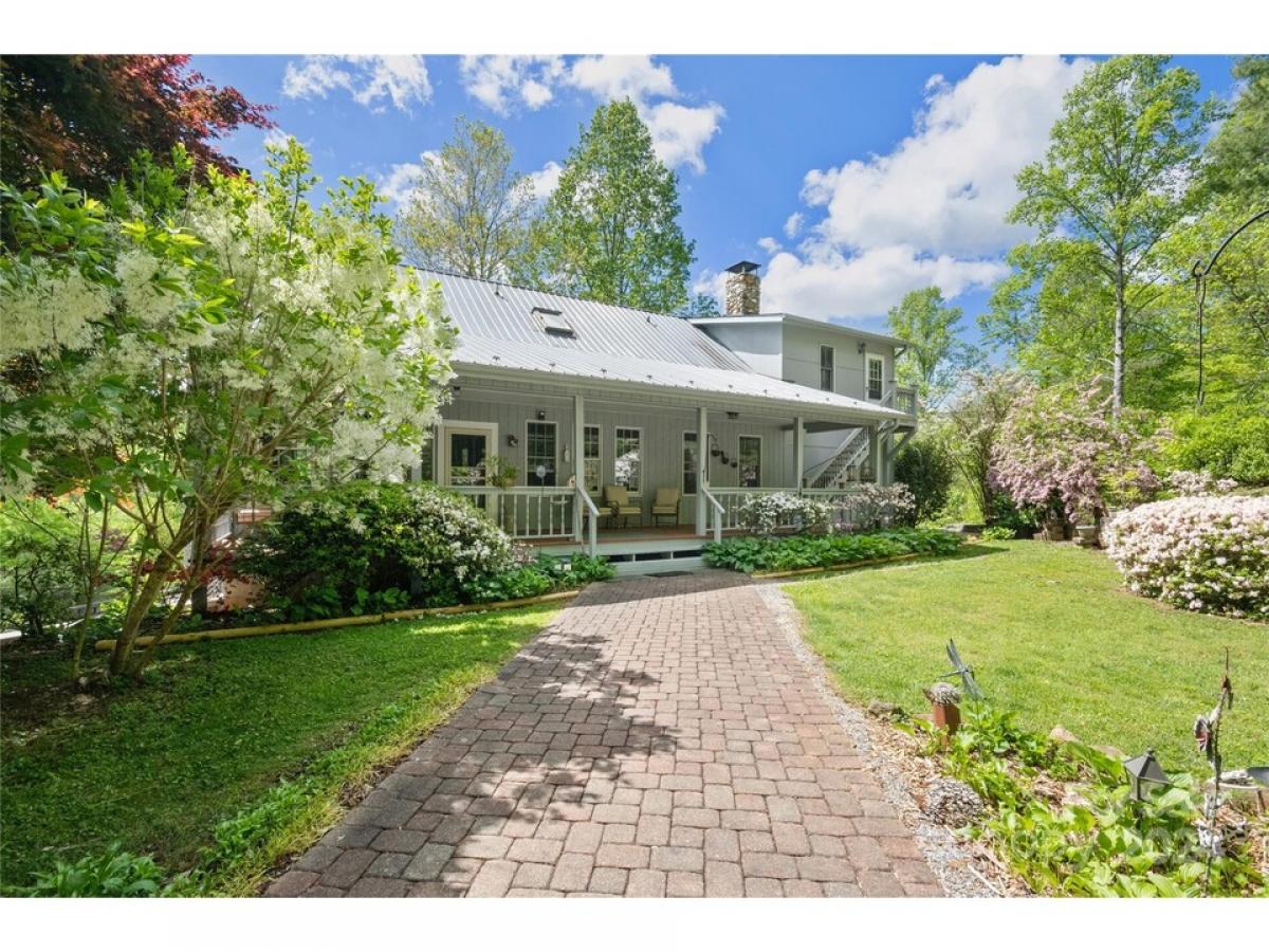 Newly offered - a beautiful home with acreage nestled at the foot of Mount Pisgah. This property is tucked into a gorgeous cove on a quiet county road. Listen to the birds sing by day, gaze at the stars in the night sky, and watch as deer and turkey frolic in the fields. This stunning, well cared for property has all of the amenities you are looking for in a refined estate. Discover stunning mountain views, multiple covered porches, mature plantings, a detached garage, multiple outbuildings, fresh water springs, & a glistening stocked pond. Inside, you will find extra-large rooms, coffered ceilings, hand crafted moldings, gleaming hardwoods, and a daylight basement. There is even a walk-in vault for valuables, or convert into a custom wine cellar. Upstairs, delight in a 546 Sq foot flex room/studio space with an outside entrance and glorious views that will surely inspire! What a rare offering of a legacy property! All this, and no HOA restrictions to worry about!