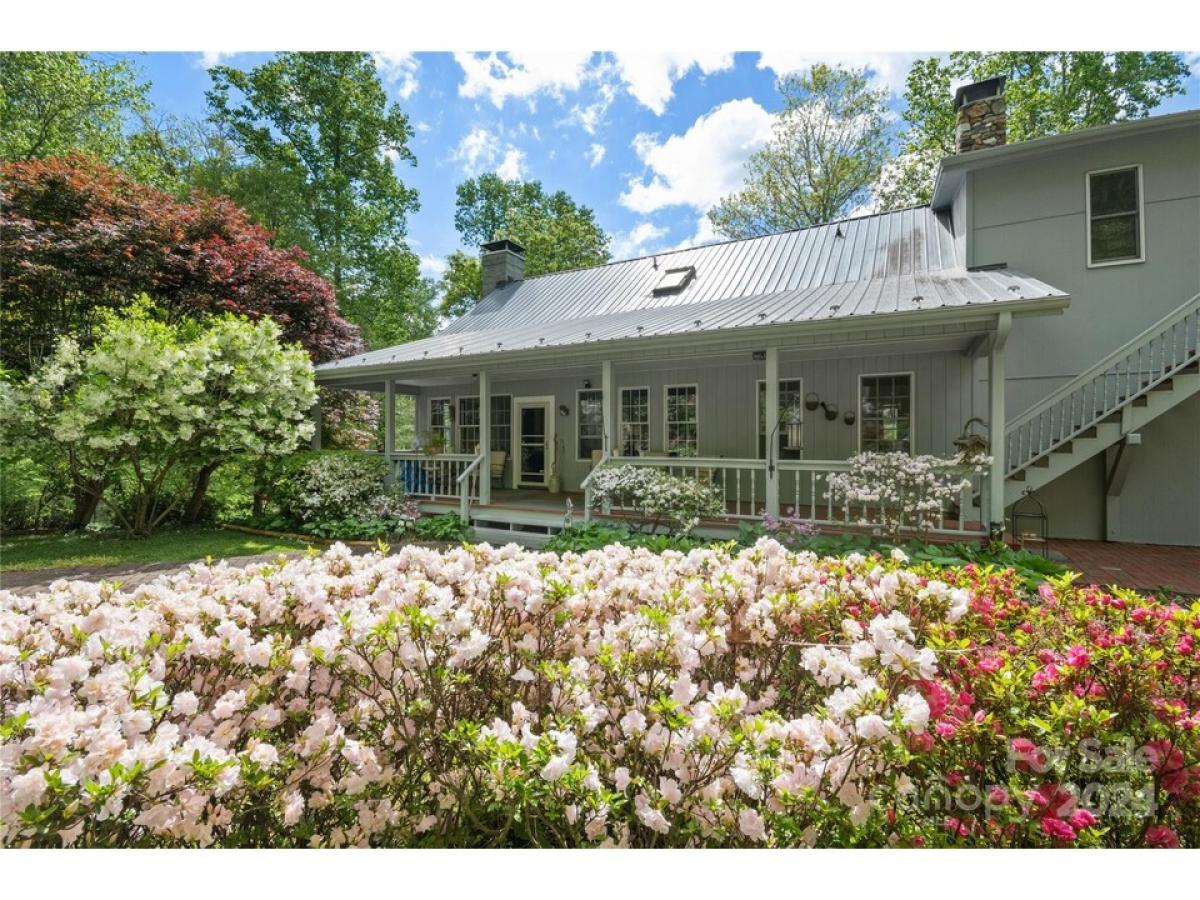 Newly offered - a beautiful home with acreage nestled at the foot of Mount Pisgah. This property is tucked into a gorgeous cove on a quiet county road. Listen to the birds sing by day, gaze at the stars in the night sky, and watch as deer and turkey frolic in the fields. This stunning, well cared for property has all of the amenities you are looking for in a refined estate. Discover stunning mountain views, multiple covered porches, mature plantings, a detached garage, multiple outbuildings, fresh water springs, & a glistening stocked pond. Inside, you will find extra-large rooms, coffered ceilings, hand crafted moldings, gleaming hardwoods, and a daylight basement. There is even a walk-in vault for valuables, or convert into a custom wine cellar. Upstairs, delight in a 546 Sq foot flex room/studio space with an outside entrance and glorious views that will surely inspire! What a rare offering of a legacy property! All this, and no HOA restrictions to worry about!