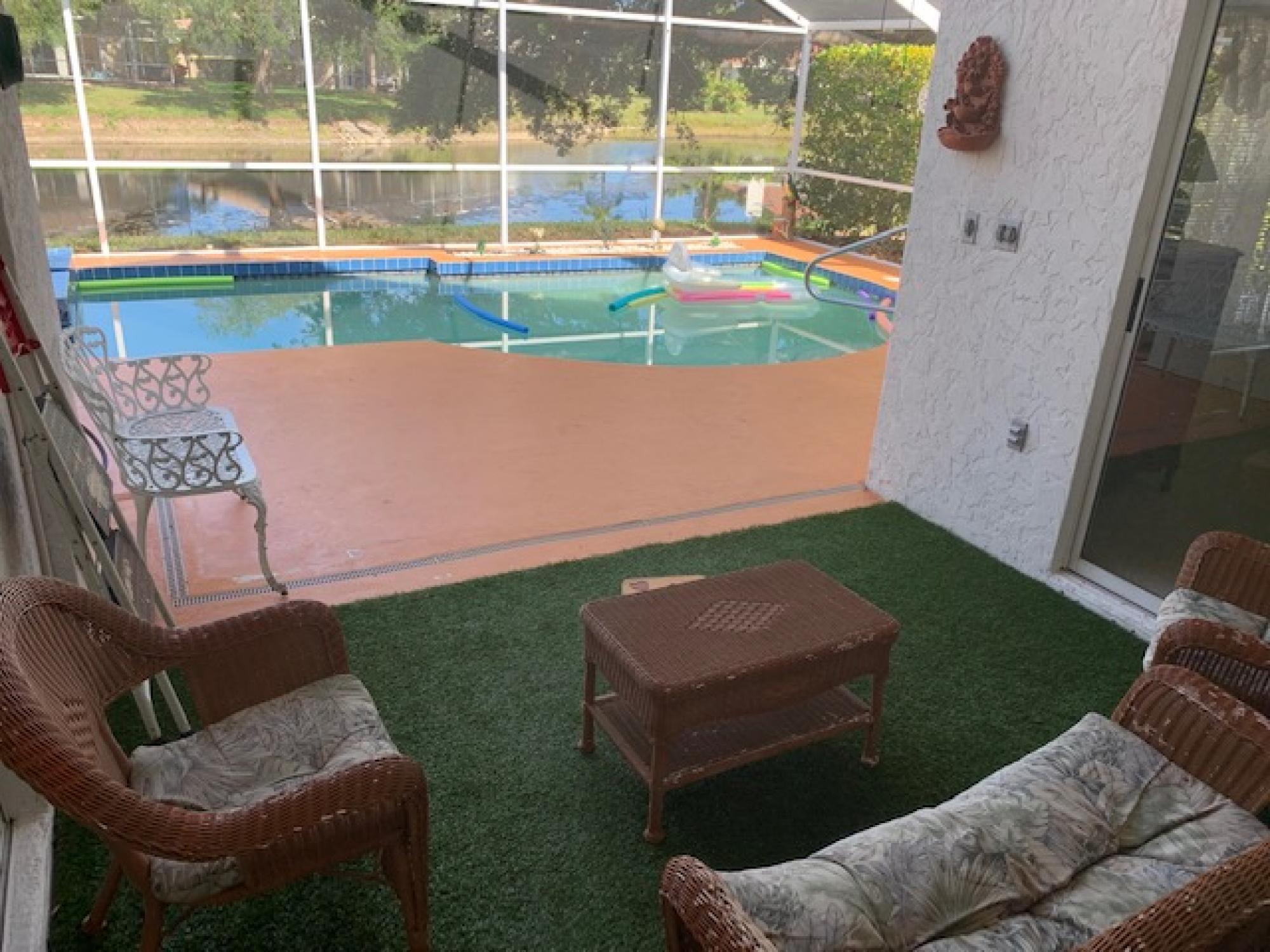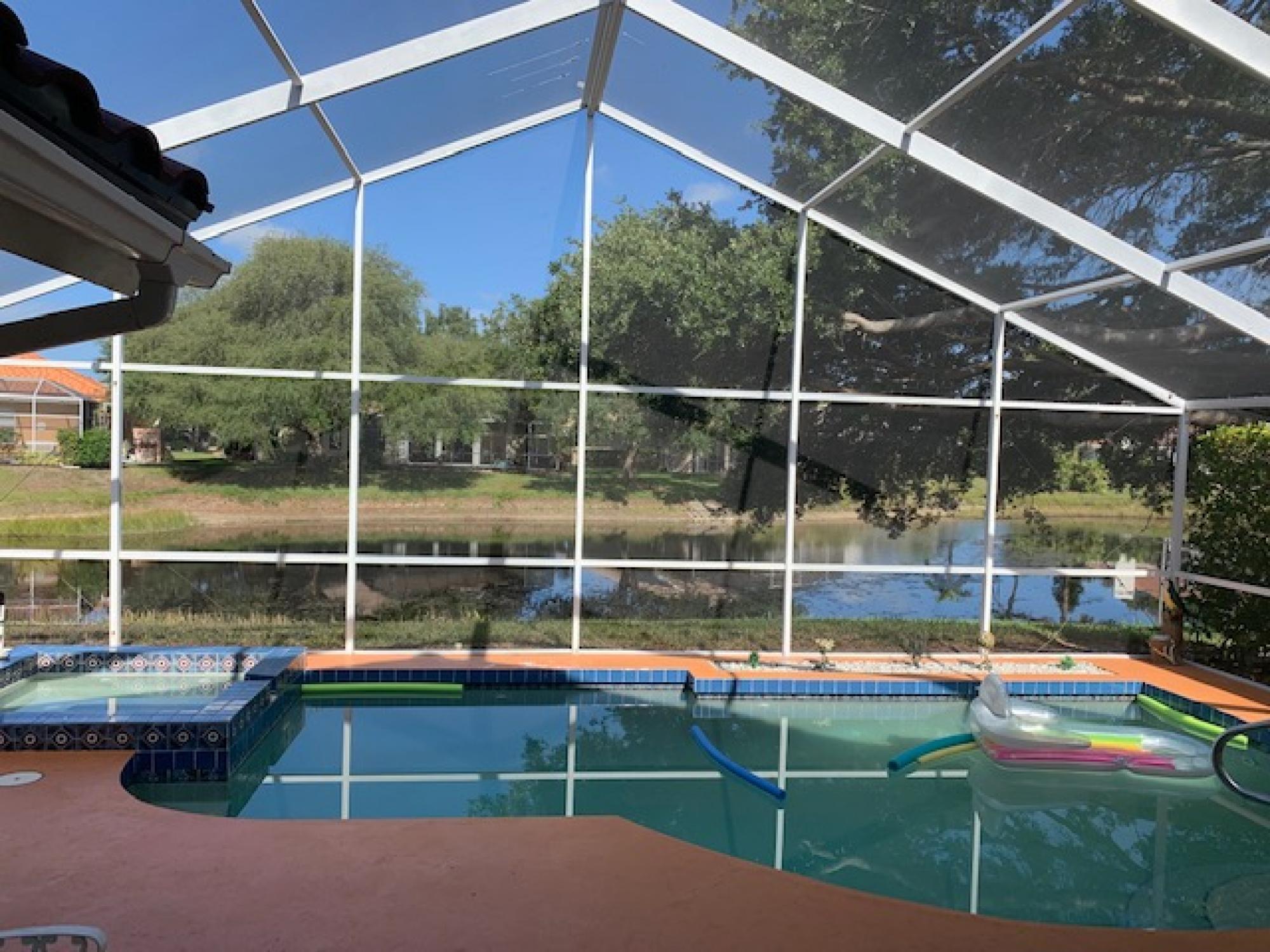 BEAUTIFUL LAKE-VIEW W/ POOL - 3 Bedrooms, 3 Full Bathrooms, family room, eat in kitchen area and 2 car garage. This home features a BRIGHT & AIRY open floor plan, high & vaulted ceilings, NEW ROOF (as of March 2022). An inviting front entryway will lead you into the formal dining room and adjoining living room. The Master Suite is very spacious w/ patio access and an attached bathroom with 2 WALK-IN closets, separate toilet room, garden tub and separate shower. Landscaping entirely maintained by the HOA. SCREENED-IN patio that overlooks the water. Prime location and conventionally located near local shopping, dining, and other amenities. Also just a short car ride to the Gulf Beaches. This is a FOR SALE BY OWNER. We are accepting offers and will accept the best one in 7 days. If there is a buyers agent we agree to pay 1.5% commission only. Feel free to email any questions: contractingteam@yahoo.com