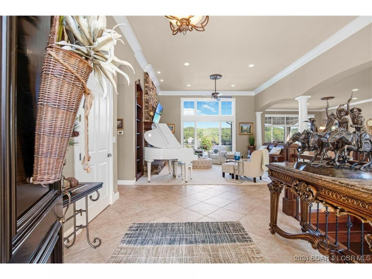 This is an exquisite 6 bedroom 4 full bath ranch home on a walkout waterfront lot in a quiet cove only a few hundred yards from the main channel on the 2mm in the upscale community of Beacon Point. This gorgeous custom home is complete with so many outstanding features it is hard to list them all. Let's start with 12' soaring ceilings that embellish the lake view through the stunning wall of windows and envelopes you in a feeling of luxury. Ornate interior trim moldings at the ceilings, the floors and surrounding the stunning 8' interior doors, on both levels. There is an almost undetectable wheelchair accessible bedroom, full bath and hallway with access to the kitchen, main area and laundry room. And if I hadn't pointed it out you would have missed it altogether. The gourmet kitchen is loaded with high end custom cabinets with all kinds of enviable storage and performance functions within. A fully screened porch directly off the kitchen/dining area that will quietly invite you to sit down, relax, have a drink and take in one of the most serene scenes you never dreamt you'd own. There is also a full shop or whatever you wish on the bottom level, heated and cooled also.
