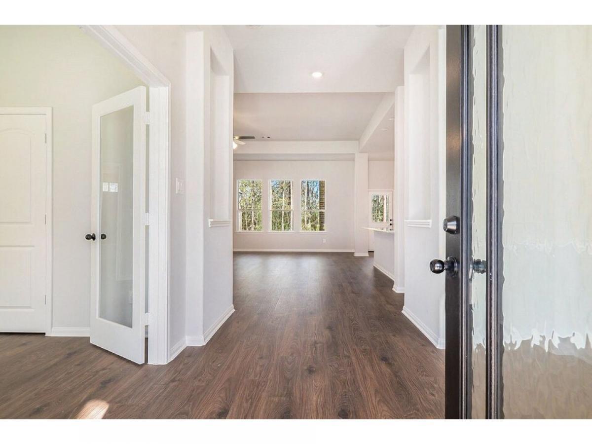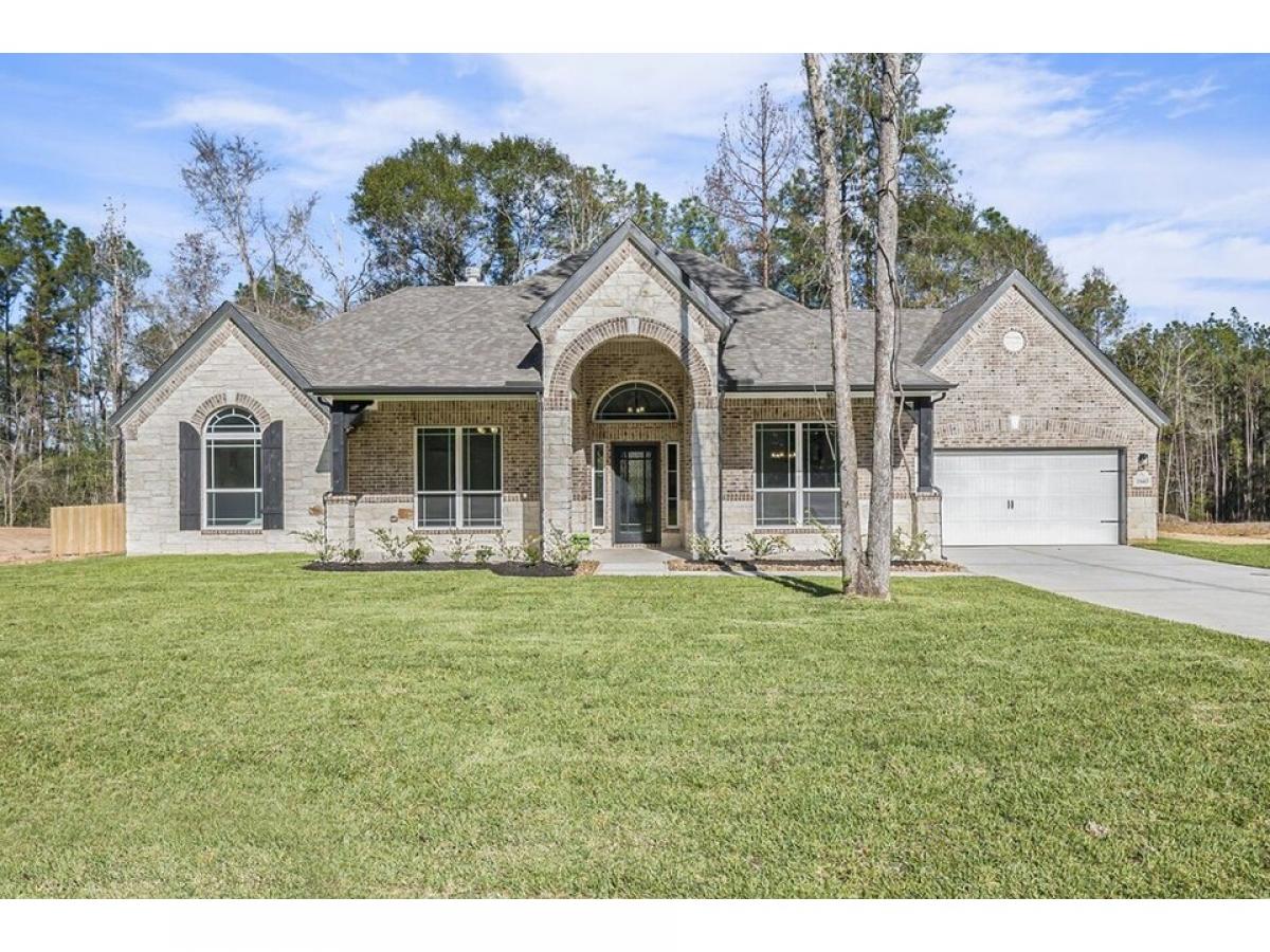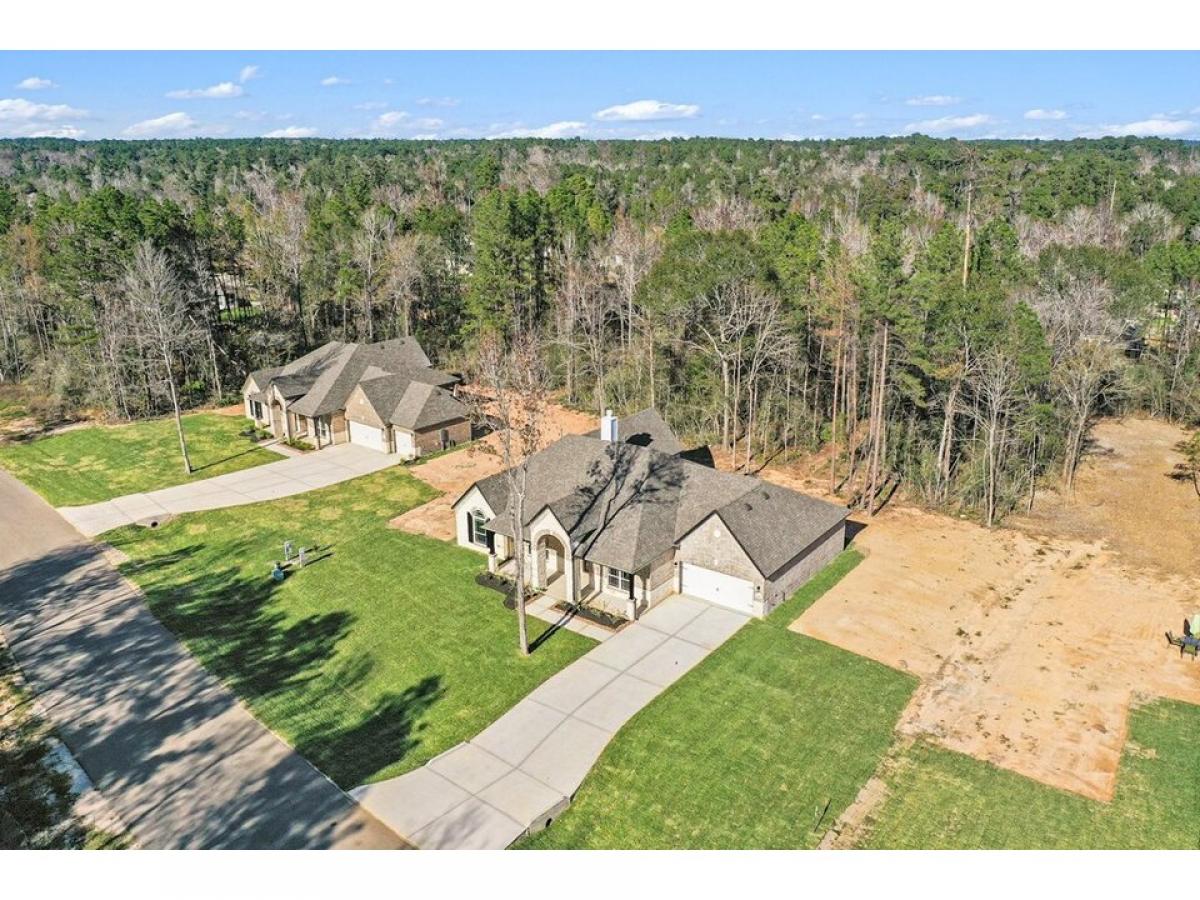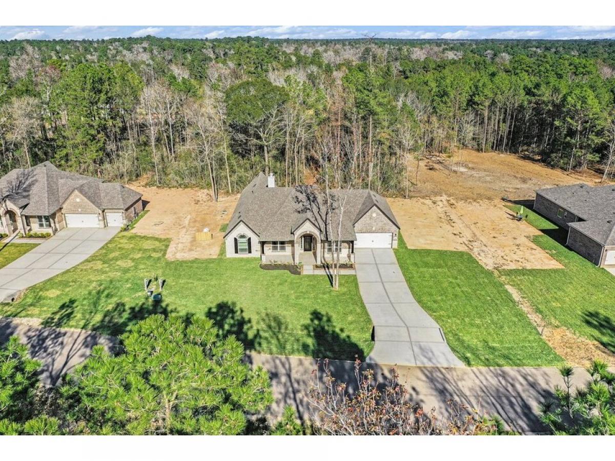 Stunning home on nearly an acre wooded lot! This 4-bedroom beauty offers a 3-car tandem garage, extended patio, front sprinklers, and room for a shop, boat, RV, or trailer. Inside, enjoy espresso cabinetry, granite counters, designer backsplash, stainless steel appliances, gas cooktop, and built-in oven. The oversized island opens to a family room with a floor-to-ceiling stone fireplace. Laminate wood flooring throughout, with carpet in the bedrooms. The primary suite features high ceilings, dual vanities, oversized shower, soaker tub, and walk-in closet. Extras include a structured wiring panel, USB outlets, and propane. Low taxes, Willis ISD, minutes from I-45 and The Woodlands!