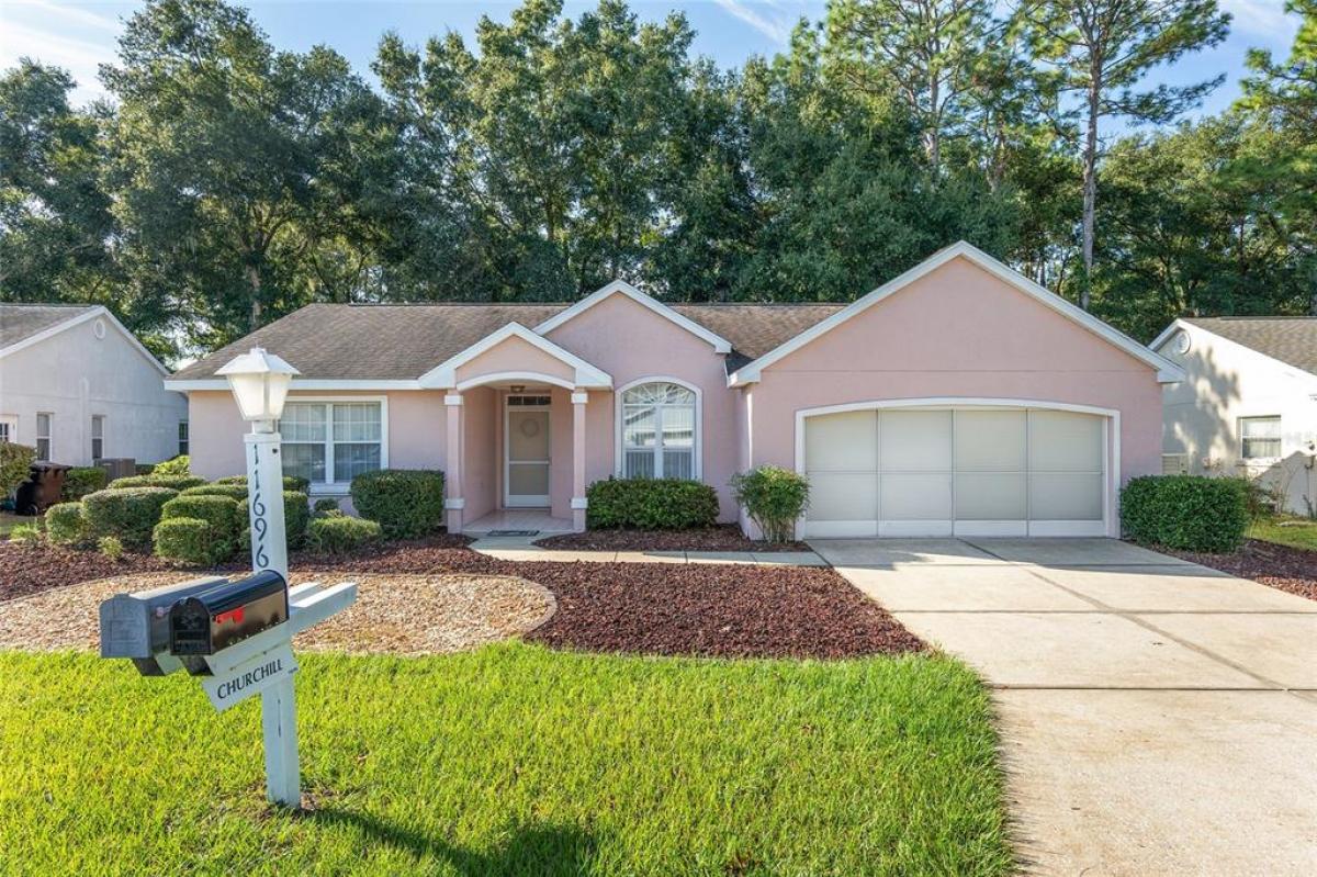 PRICE TO SELL! Concrete block home, newly painted inside this all-tile home. Welcome to Oak Run Country Club, 55+ community in beautiful Ocala, Florida. Oak Run has all the amenities you need to enjoy the Florida lifestyle at its best. With golf, tennis, pickleball, shuffleboard, 6 swimming pools, 2 workout centers, 2 auditoriums for meetings, dancing's and many other activities. Play 18 holes of golf and enjoy the restaurant and bar after your round.The Waverly model is a block and secco build home has 1218 sq ft of living with large dining room and living room, kitchen with appliances, new heat and air conditioner, 11/05/2024, replaced sliding backdoor, 2 bedrooms, 2 baths and a 2-car garage. The Lanie has been substituted for an outside paved area with chain link fence. Florida Landscaping give the home an outstanding look. Backup to the Florida Greenway with privacy for entertainment and guests. This is a must-see home in a quiet and friendly Neighborhood.