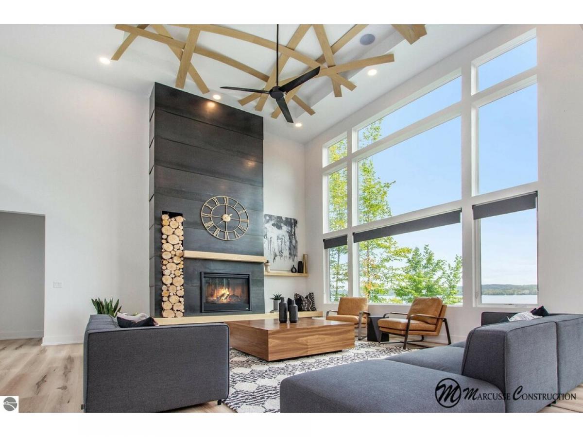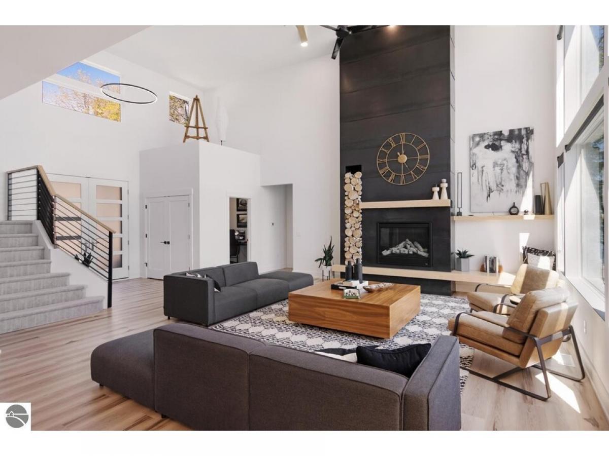 TORCH LAKE AT IT’S FINEST! A luxurious beach house radiating modern sophistication, clean lines and top-of-the-line construction on the shores of Torch Lake. The living room is enhanced by a soaring fireplace, abundant windows for stunning views, vaulted ceiling, custom built ins and unique accents. A chef’s kitchen featuring a waterfall quartz island with bar seating; professional style stainless appliances; tiled backsplash and plenty of cabinetry. Wake up to sunrise views from the impressive and tranquil primary suite with an Alaskan King bed, fireplace, expansive windows, architectural details, luxurious bathroom, and a walk-in closet. As you head upstairs you will discover a large recreation/family room; 3 bedrooms and a full bath. The lower level offers a generous sized second living area with family room; an upscale wet bar complete with liquor dispensers & beverage cooler; a large door wall leads you to the patio and your private waterfront; views of the lake from the 2 bedrooms; a full bath, and a mechanical room. Gracious outdoor entertaining spaces galore with a composite deck with a sunshade and a contemporary railing; a large patio with built in firepit and hot tub; and a generous size yard. Relax in the sun and build sandcastles on your sandy beach area, before heading out for a day of world-class boating on the entire Chain-of-Lakes. There is even a helicopter pad, for your guests to arrive in style. Other notable amenities include 4,100 square feet; main floor office den; destination laundry room; a total of 6 bedrooms, 3 ½ baths; modern lighting throughout; unique architectural design attributes; custom built-ins; air conditioning; professional landscaping; 3-car heated garage. Your Torch Lake waterfront estate setting includes 125’ of premier frontage and a 3.8-acre setting. Let this become your cherished family retreat and a place to welcome family and friends to make cherished memories. Move right into this "Turn Key" opportunity.