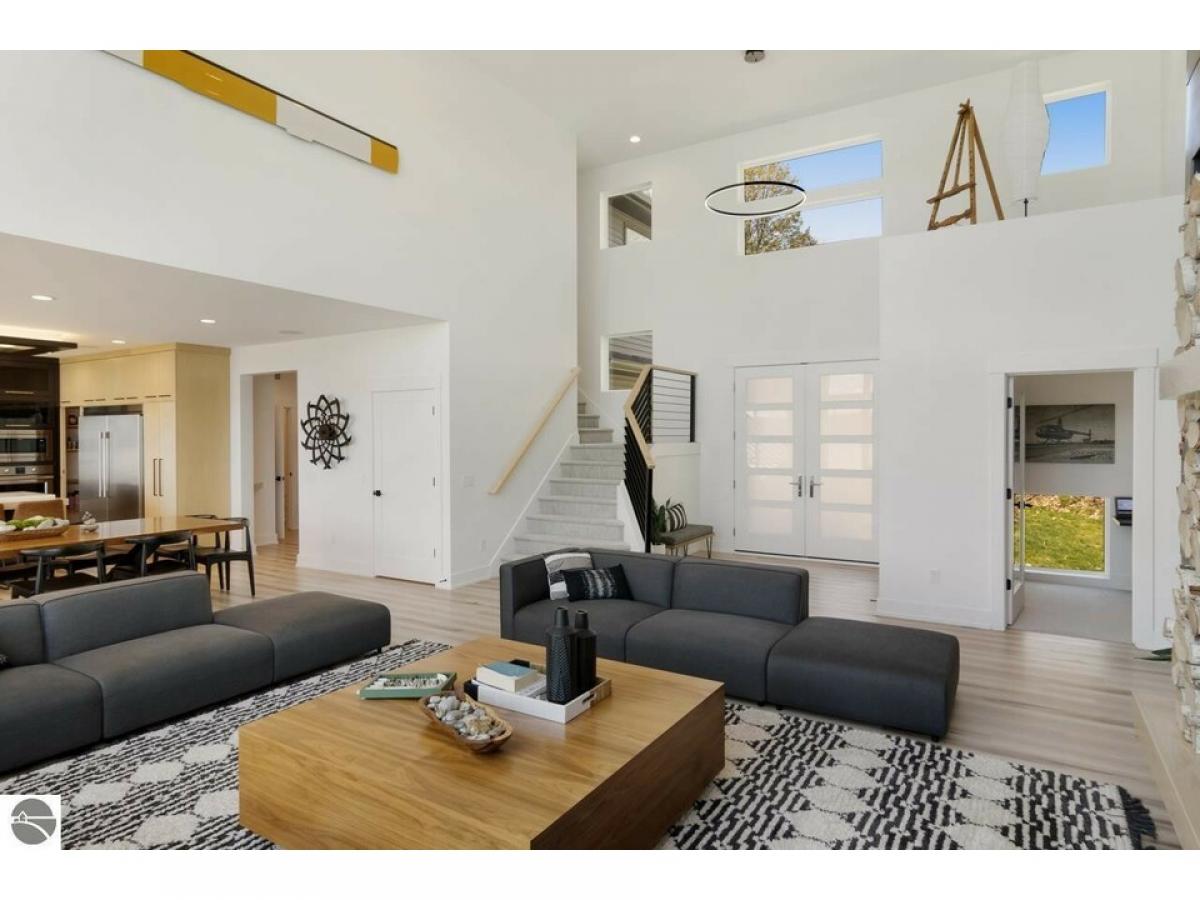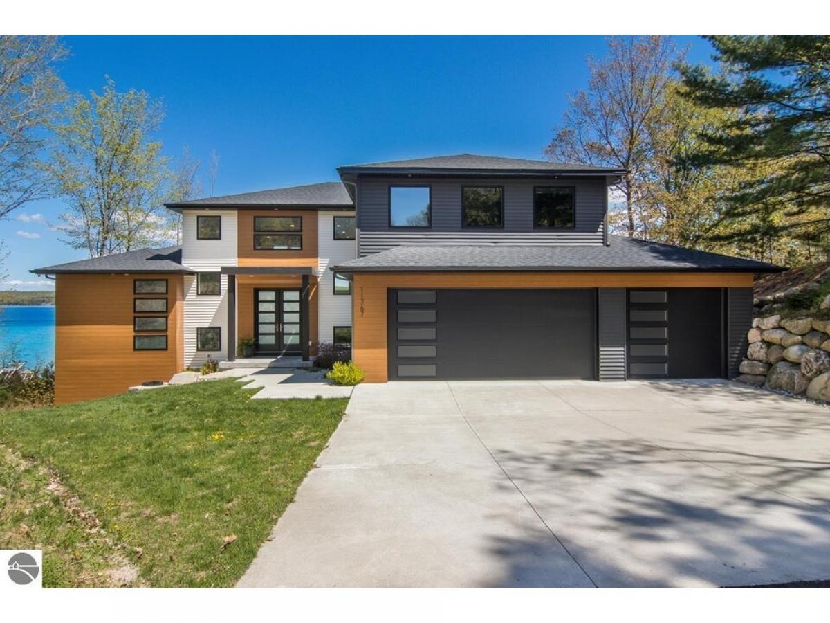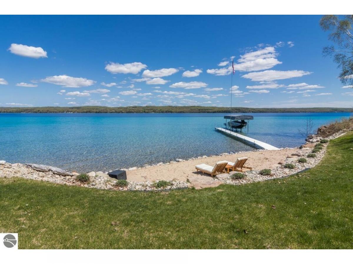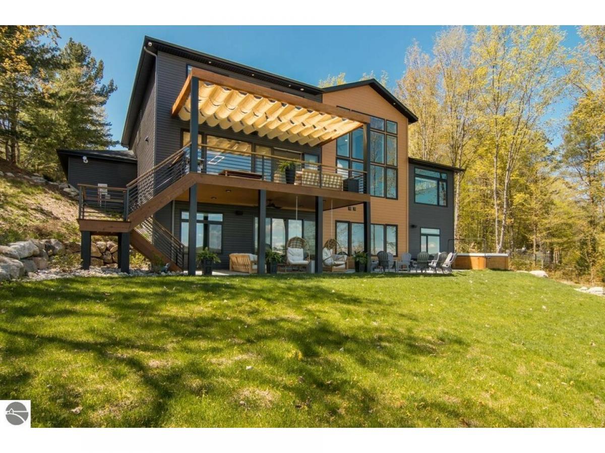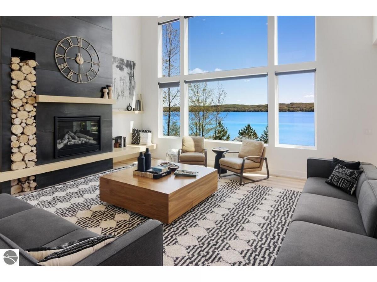 TORCH LAKE AT IT’S FINEST! A luxurious beach house radiating modern sophistication, clean lines and top-of-the-line construction on the shores of Torch Lake. The living room is enhanced by a soaring fireplace, abundant windows for stunning views, vaulted ceiling, custom built ins and unique accents. A chef’s kitchen featuring a waterfall quartz island with bar seating; professional style stainless appliances; tiled backsplash and plenty of cabinetry. Wake up to sunrise views from the impressive and tranquil primary suite with an Alaskan King bed, fireplace, expansive windows, architectural details, luxurious bathroom, and a walk-in closet. As you head upstairs you will discover a large recreation/family room; 3 bedrooms and a full bath. The lower level offers a generous sized second living area with family room; an upscale wet bar complete with liquor dispensers & beverage cooler; a large door wall leads you to the patio and your private waterfront; views of the lake from the 2 bedrooms; a full bath, and a mechanical room. Gracious outdoor entertaining spaces galore with a composite deck with a sunshade and a contemporary railing; a large patio with built in firepit and hot tub; and a generous size yard. Relax in the sun and build sandcastles on your sandy beach area, before heading out for a day of world-class boating on the entire Chain-of-Lakes. There is even a helicopter pad, for your guests to arrive in style. Other notable amenities include 4,100 square feet; main floor office den; destination laundry room; a total of 6 bedrooms, 3 ½ baths; modern lighting throughout; unique architectural design attributes; custom built-ins; air conditioning; professional landscaping; 3-car heated garage. Your Torch Lake waterfront estate setting includes 125’ of premier frontage and a 3.8-acre setting. Let this become your cherished family retreat and a place to welcome family and friends to make cherished memories. Move right into this "Turn Key" opportunity.