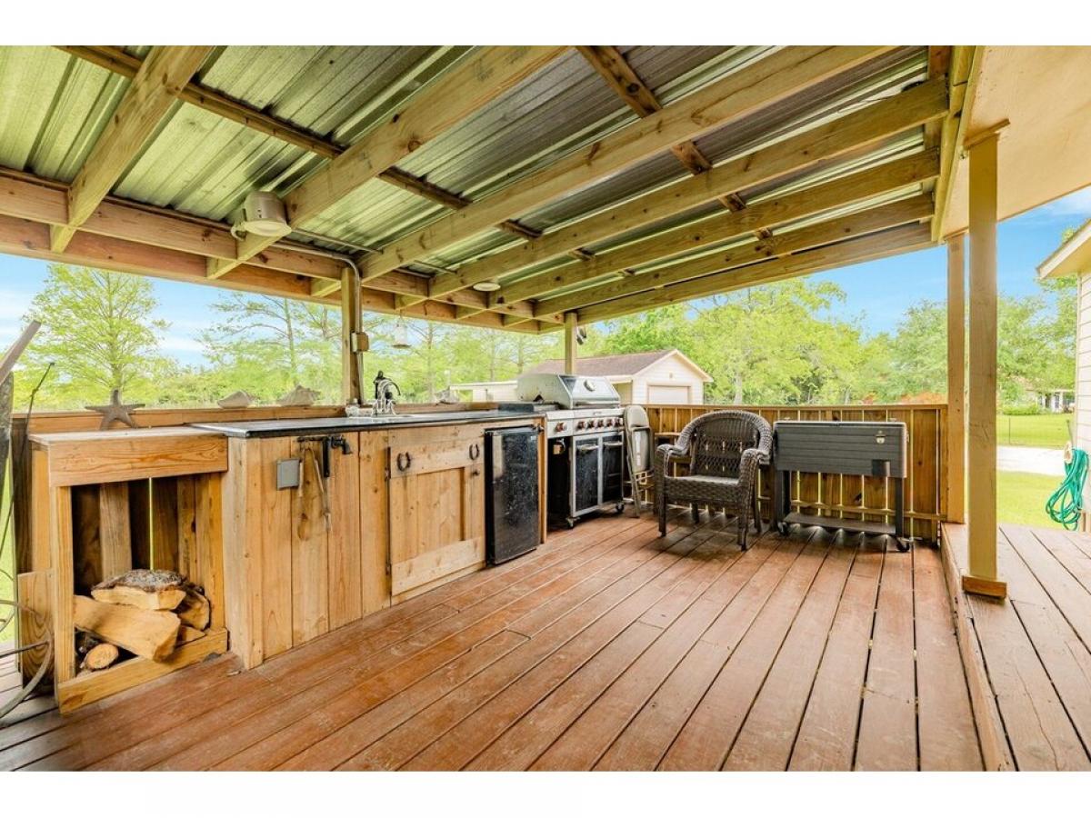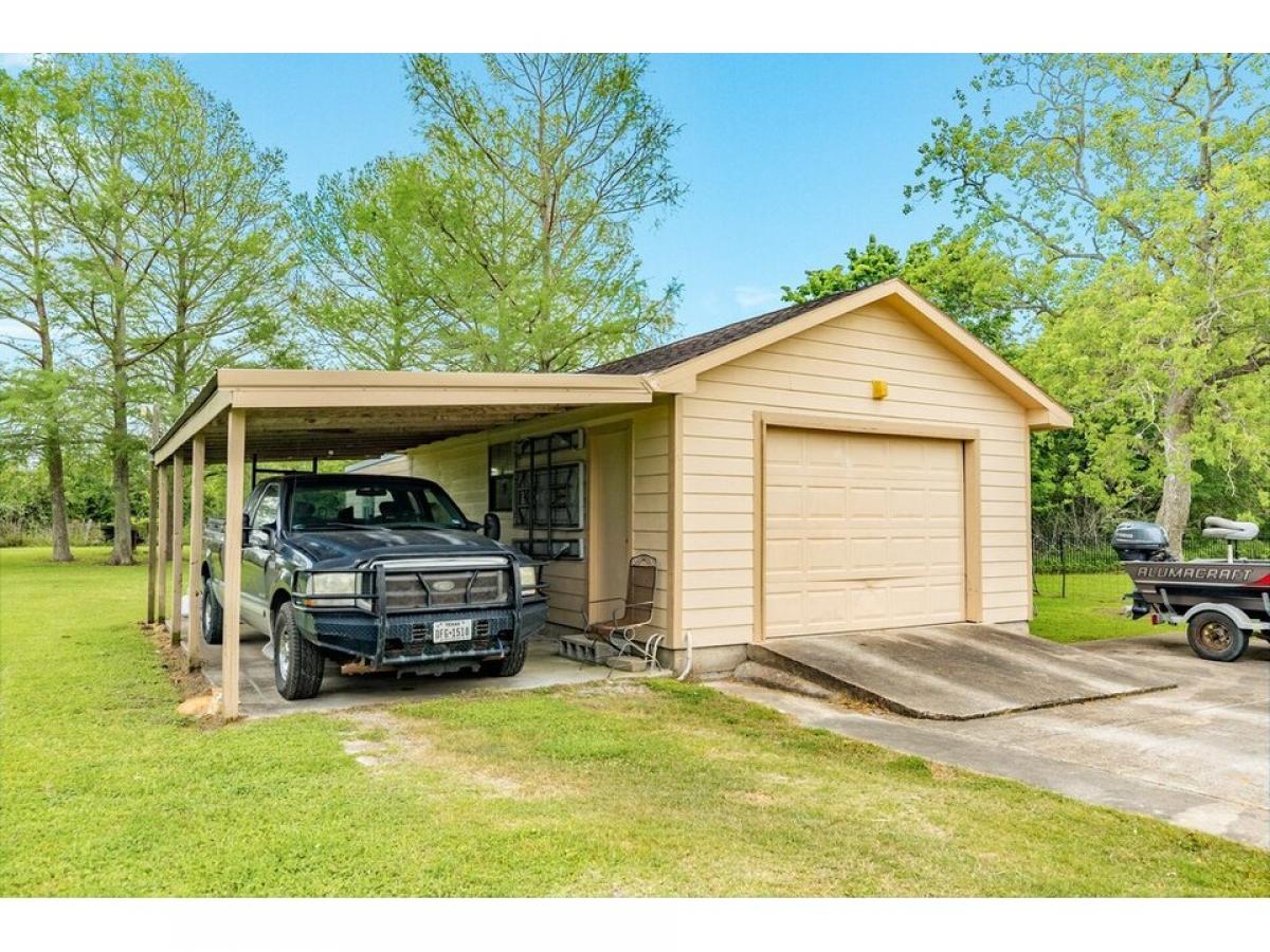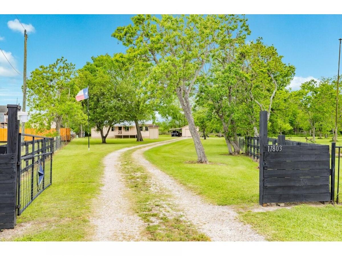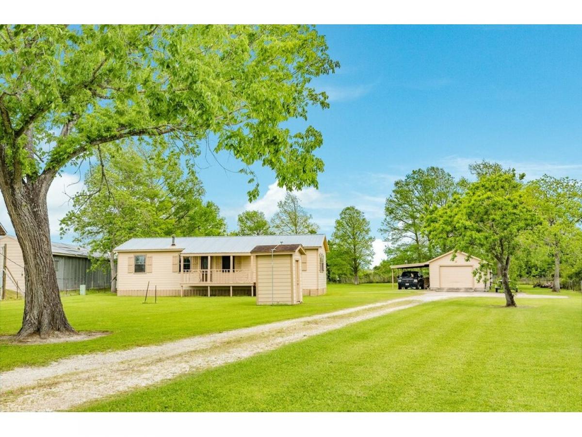 Discover serene living on just over an acre near FM 2004! This one-owner 2/2 property blends convenience with tranquility. Enclosed by an electric gate and full fencing, it promises security and low maintenance. Inside, find durable wood and tile flooring throughout. A detached one-car garage offers ample storage and a carport. The highlight is the covered outdoor entertaining area, complete with a wet bar, perfect for gatherings. In a prime location, this home is a harmonious mix of simplicity and accessibility.