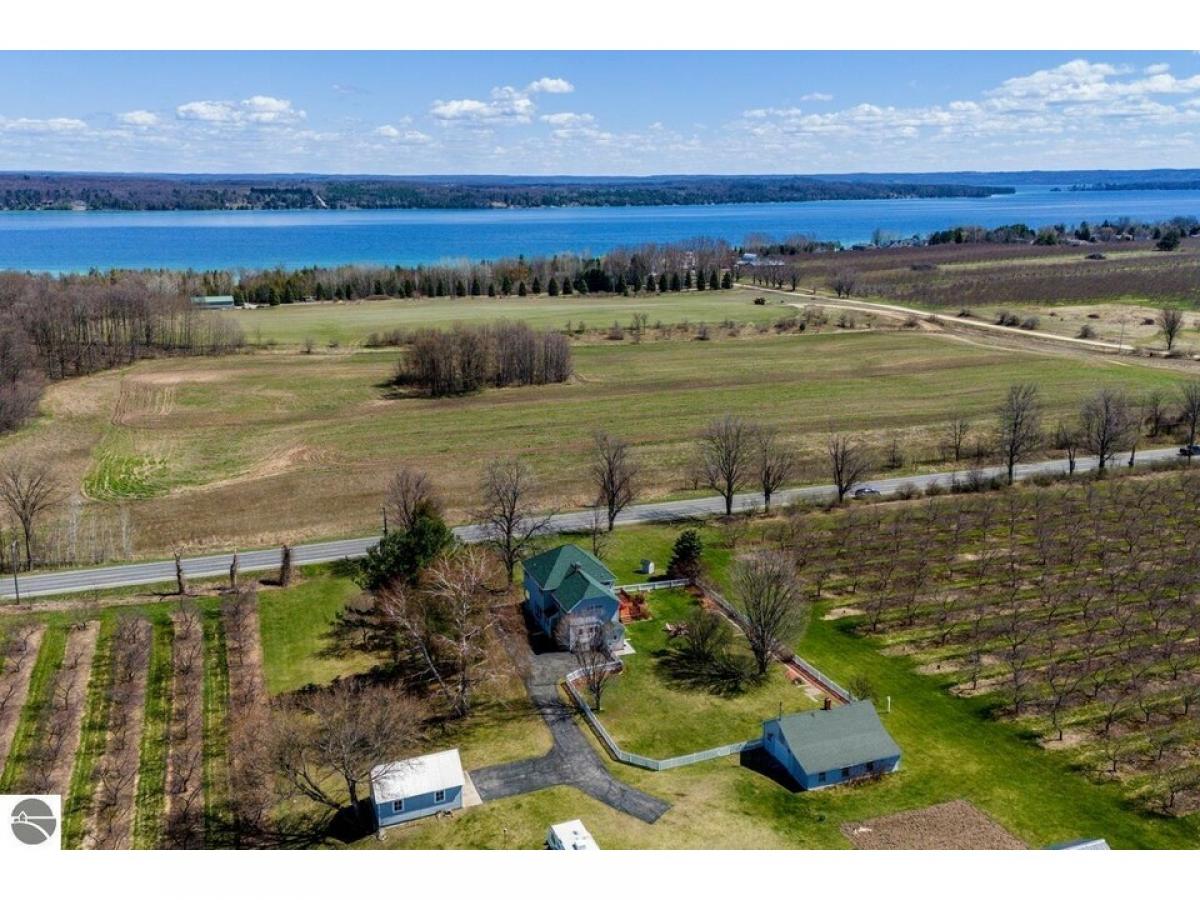 LOCATION! LOCATION! LOCATION! THIS PROPERTY IS IDEALLY SITUATED FOR SHORT TERM RENTALS (ELK RAPIDS TWP ALLOWS STR) Substantial income potential! Lovely restored “Farmhouse”, w/spacious kitchen, granite countertop island with seating, Teppan-yaki grill, convection range and beautiful orchard views! Large dining room, den and living room w/window seat/built-ins, easy access to great deck for entertaining and peek-a-boo Elk Lake Views!!! Four bedrooms, including enormous primary bedroom and en-suite. Updated bathrooms, first floor laundry, plus BONUS -- WOOD floors under carpeting!!! Several out buildings, including potting shed 2 garages, nearly 2 acres even a white picket fence! Just minutes to the renowned HORSE SHOW fields, short drive to either the quaint waterside Village of Elk Rapids or Traverse City, Lakes, River, Beaches, Watersports are all at your “doorstep”! $719,500