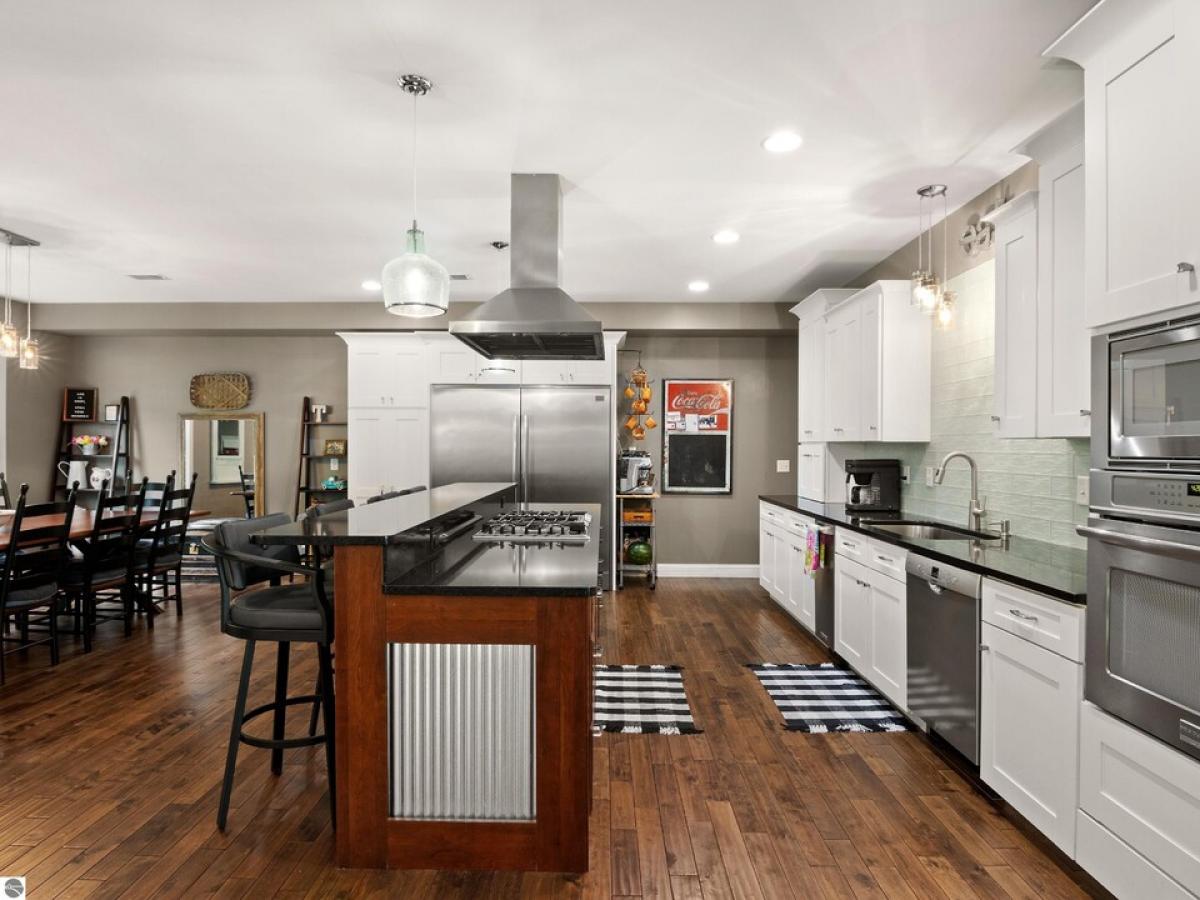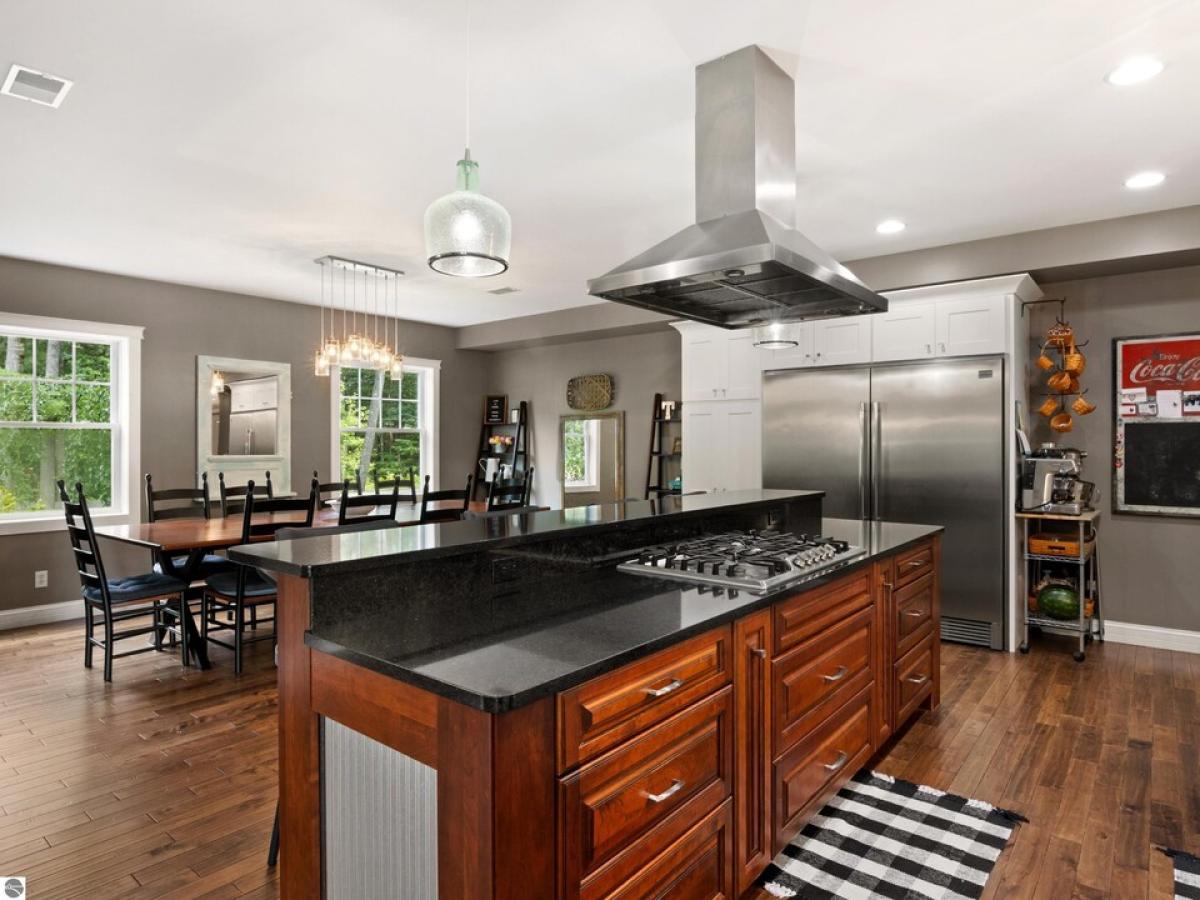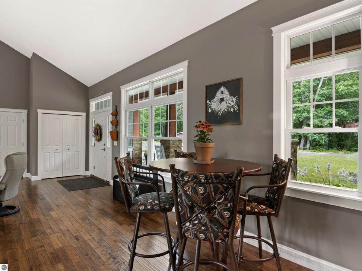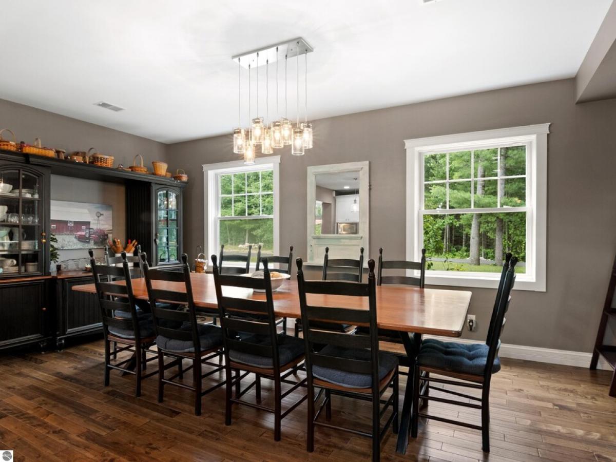 Quality craftsmanship highlight this beautiful home located South of Elk Rapids. Conveniently located between Traverse City and Elk Rapids and just 5 miles from the Flintfields Horse Shows. This 4 bedroom 3 bath house has over 12 acres that is surrounded by State Land with numerous trails, wildlife, and ponds. The backyard allows the ultimate in entertainment including a pool, hot tub, and patio. Need a place to store "toys" or a place to hang out? Gotcha covered. The 40x64 heated pole building has a workshop, full kitchen, 3/4 bath, and office.