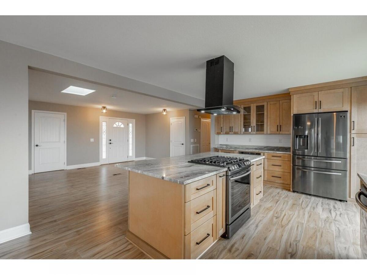 A 5- Acre mini farm nestled in a picturesque setting with stunning mountain views. This updated home features many pastures ideal for animals or crops. Enter into the home into a custom designed kitchen perfecting for entertaining with a large island that flows into the living room/ dining room. You can enjoy the panoramic views from inside or outdoors on the wrap around deck. Easy living with 3 bedrooms and 2 bathrooms on the main level. The basement, which has its own private entrance can be used as a mother in law suite or a rental. There is a kitchen, great room, bedroom, bonus room and a bathroom. Plenty of storage and a storm shelter. So many possibilities! The barn and outdoor storage sheds are an added bonus! Conveniently located, this property offers a peaceful, rural lifestyle while being just a short drive from shopping, dining and other amenities combining the best of tranquility and accessibility. Do not miss out on this gem! New roof and skylights have been installed!