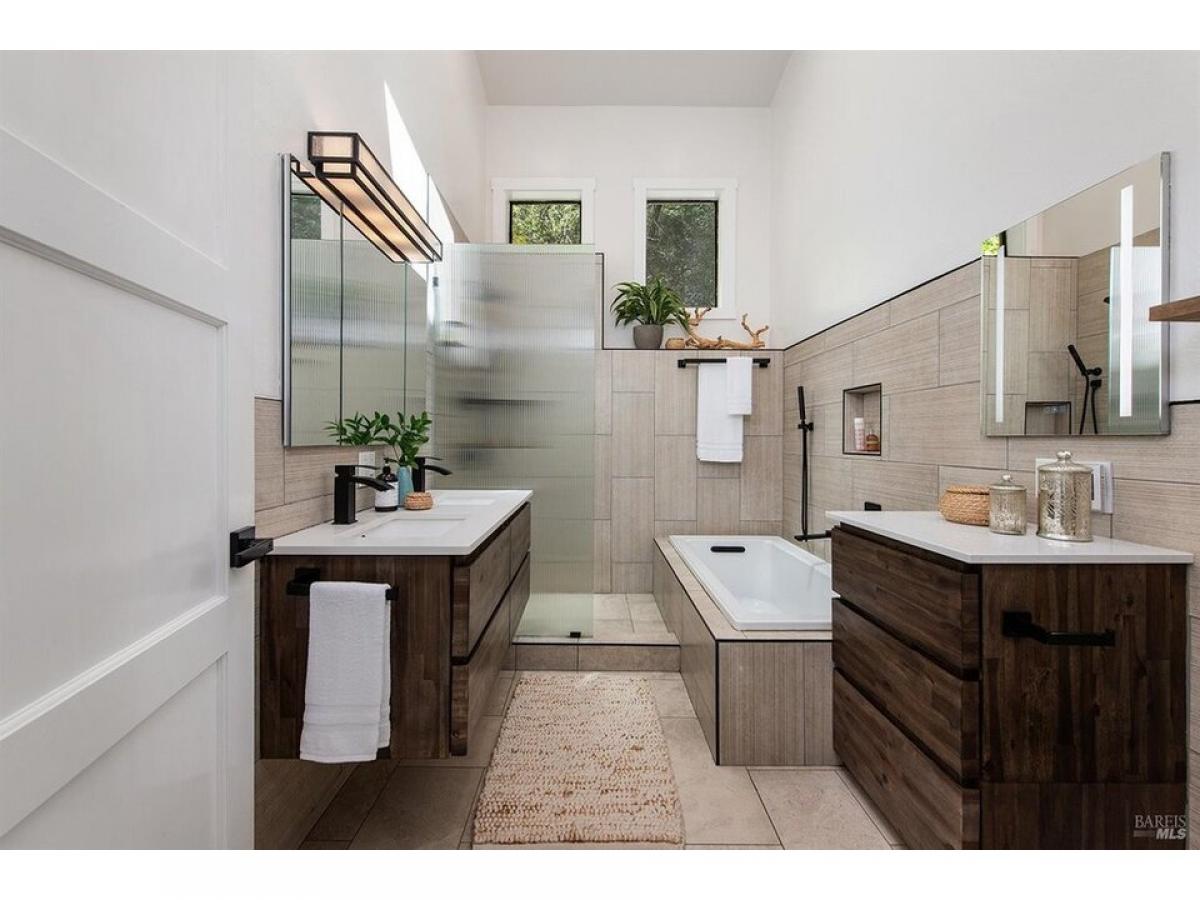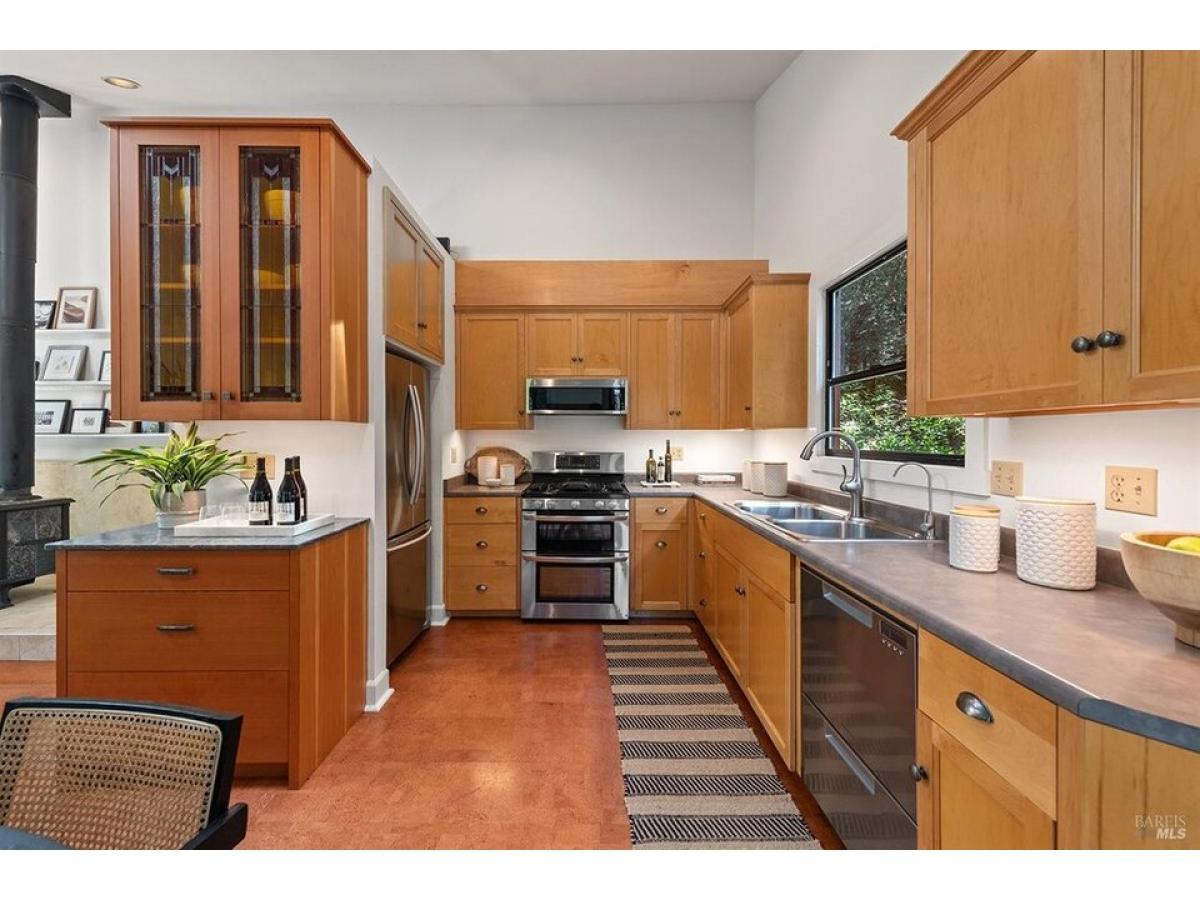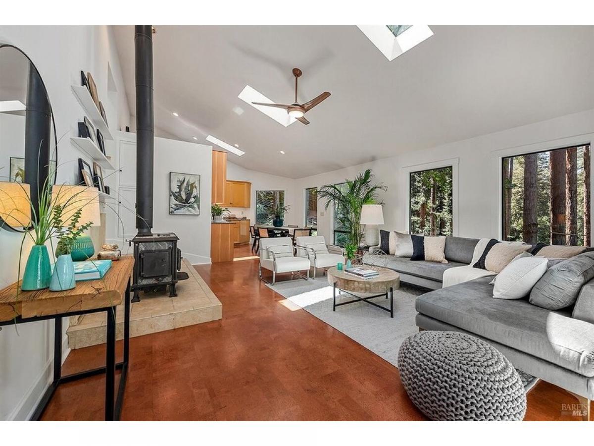 Welcome to Modern Luxury in Pocket Canyon, where aesthetics meet solid bones. Nestled between Forestville + Guerneville, a very special neighborhood offers a rare combination of friendly community spirit and peace + serenity. This custom home, solidly built + meticulously maintained, features tongue-and-groove cedar siding, clerestory windows, and seven skylights that fill the space with natural light. On the market for the first time in 17 years, this rare sunny gem offers stunning tree-top views and thoughtful upgrades throughout. Warm up by the soapstone wood-burning stove or enjoy the comfort of efficient central heat. The home also features an on-demand water heater and a gorgeous remodeled bathroom with heated floors. With two bedrooms plus a loft, cork and tile flooring, and brand-new carpet in the bedrooms, this home is truly move-in ready. A fresh coat of paint and a brand-new roof (2024) add to its turnkey appeal. Outside, you#039;ll find paved parking including room for an RV and a spacious basement with laundry, perfect for storage, a workshop, or creative projects. Relax in the hot tub under the stars and redwoods, and enjoy ultimate privacy across two parcels totaling about 1/3rd of an acre. Come experience the quiet beauty of Pocket Canyon. You may never want to leave.