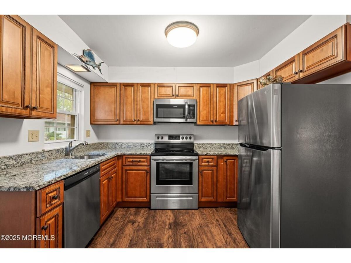 Turn key and recently renovated 2 bedroom, 2 full bathroom unit in Leisure Village! The home is spacious and modern with an updated kitchen featuring granite counter tops, newer cabinets, stainless steel appliances plus a separate dining area. The living room is open and bright and there are newer floors throughout all the common areas. There are 2 spacious bedrooms including a primary suite with a full bathroom, plus a full hall bath. You will find a large entry closet and a separate laundry room which offers plenty of extra storage. Enjoy a summer breeze on your front sun porch and the ease of your attached garage. This home and community offer 55+ living at it#039;s best. Make your plans to check out this excellent home today!