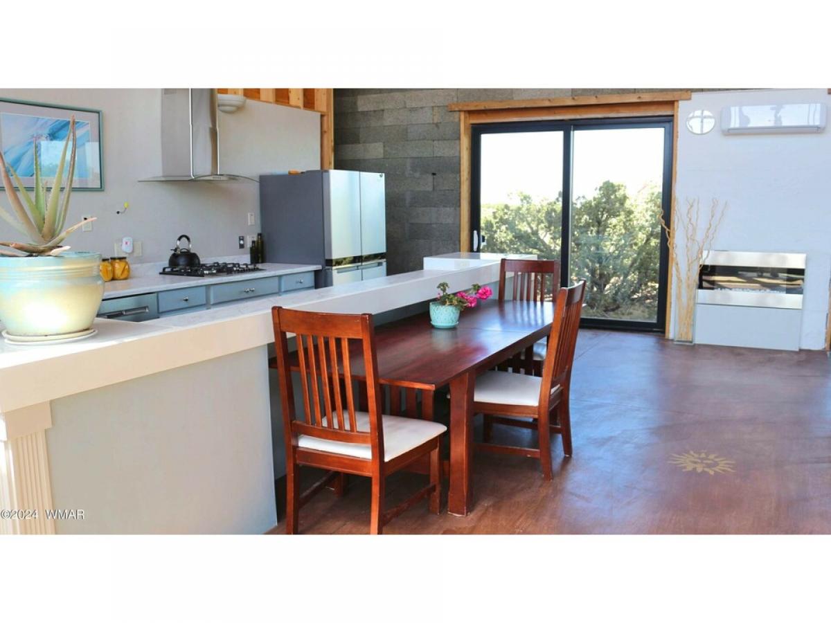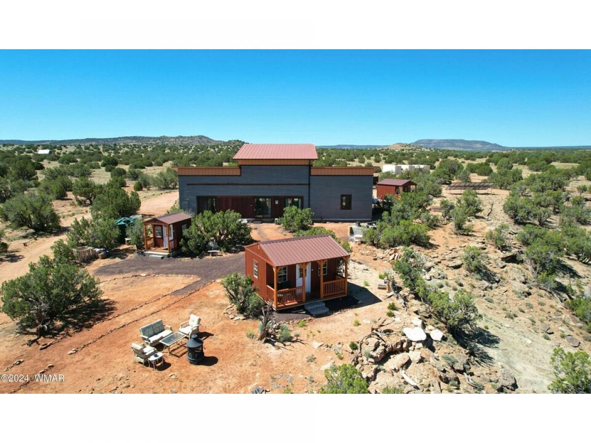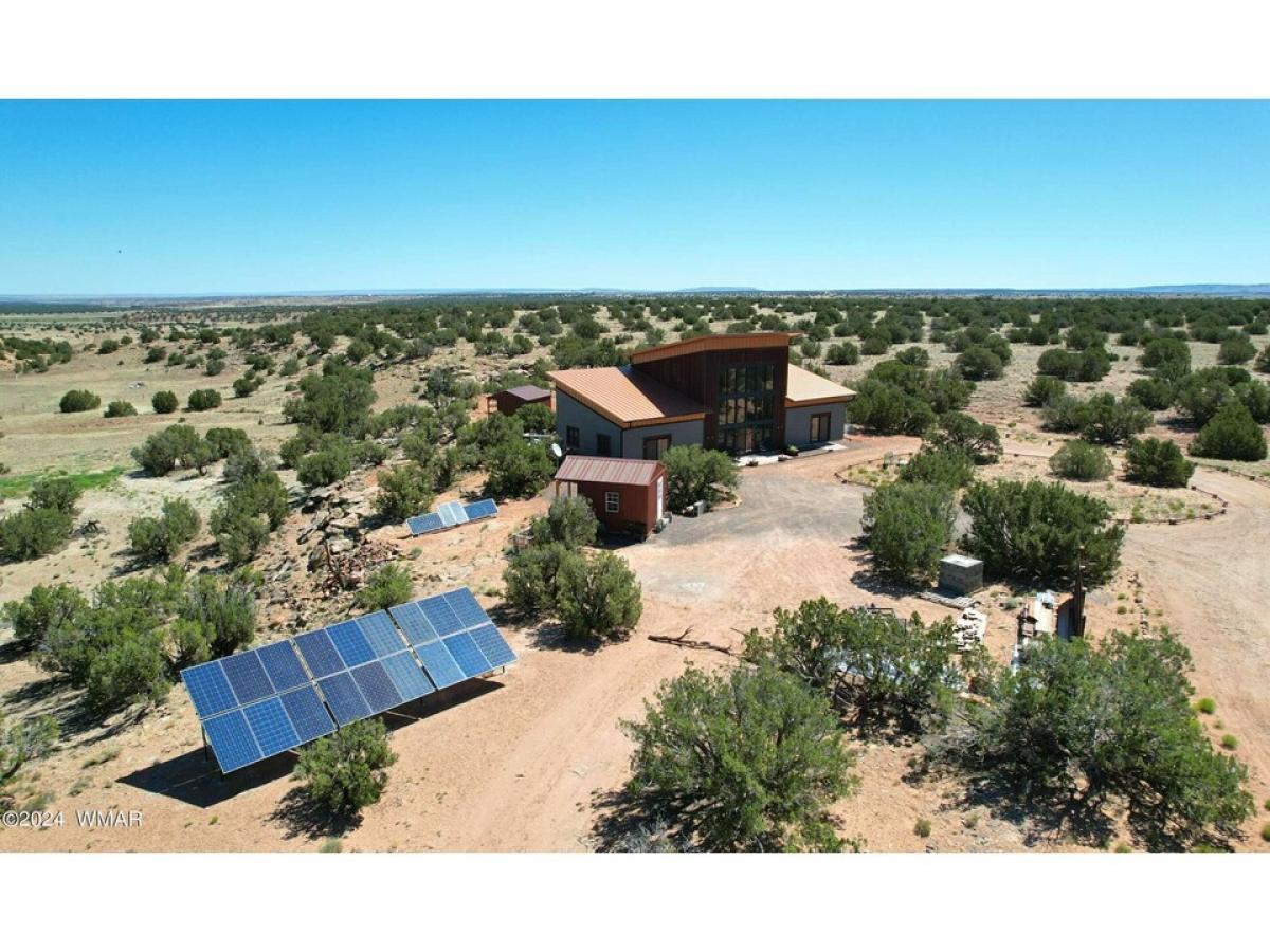 Incomparable! A home that helps you be healthier, saves you money, & makes you money! This beautiful, peaceful, spacious property boasts a home not only w/wow-factor but healthy non-toxic construction, off grid sustainable living, plus income potential! Home has all its permits & Apache County Certificate of Occupancy but needs some completion inside, mainly wall/ceiling finishing. Architecturally designed & professionally engineered, flex floorplan offers 2 to 4 bedrooms. In addition to its exceptional health supporting features (be sure to see the HAVEN Lifestyles article ''Healthy Home Construction'' in the Documents section), every aspect of home is also energy efficient w/features such as max passive heating/cooling, metal roof rain catchment, energy star appliances, 12'' thick (co Insulated Concrete Form (ICF) block walls, & ample solar system with lithium battery storage designed to meet all power needs. 63 well treed acres w/seasonal stream and water fall, fully fenced w/4 gates. 21 ac have been split into four 5 ac parcels, designed as an income producing summer camp w/County issued special use permit for "Rancho Quieto" the EMF-Quiet Respite with 12 RV campsites, $20/night. Private Entrance/Exits are located far away from the home & campsite layout offers quiet, privacy & beauty with a shared recreational park area, making these lots also suitable for a family compound "Pueblo Quieto" the EMF Quiet Neighborhood. Thanks to its health-conscious living environment, this non-toxic & non-EMF home and its surrounding pristine property would also serve as an excellent investment as a group home for electro-sensitive (ES) or environmentally sensitive (EI) individuals, with the campground providing both a welcome income for the owners & a much in-demand nature refuge for ES & EI campers. An additional 720 sq ft of living space includes 3 high quality Graceland out-buildings, each with a covered sitting porch for enjoying the views: a 16' x 16' Studio or Guest Bunkhouse; an 8' x 12' Pumphouse housing the Whole House Filter System; a 16' x 13' Workshop housing the Solar Electrical Power System. Plus a 2 story 16' x 20' shed w/loft at south entrance with a passing perk test, for camping septic system. Multiple sources of water include: property located over the Coconino Aquifer, for a sure hit into good, abundant, water (if a drilled well is desired), an Atmospheric Water Generation (AWG) system capable of providing up to 3 gallons of pure drinking water daily from the air, 22,000 gallon/year rain catchment for future greenhouses and duck pond, repurposed greywater, and a 2500 gal water holding tank for delivered water. Multiple sources of heat include: 3 mini-split AC/Heat Pumps (solar powered), Heatilator Fireplace (propane fueled), Electric Fireplace (solar powered), & Woodstove to take advantage of free fallen wood on the property for many years to come. Definitely a rare, rich & rewarding home ownership experience! Please reference the MLS "Documents" tab for more details regarding healthy construction, high performance, quality building materials, self- sustainability, low maintenance and energy costs, as well as quality of life and aesthetic pleasure. Serious, qualified buyers only please. This link to the Haven publication has a healthy living article written by these sellers (page 57) https://havenlifestyles.com/havenphxsw0824/ NOTE: Sellers are continuing to finish this home, & the increased value of this will be reflected periodically in an increased sale price. Please contact agent if you wish to be notified in advance of any anticipated price increase.