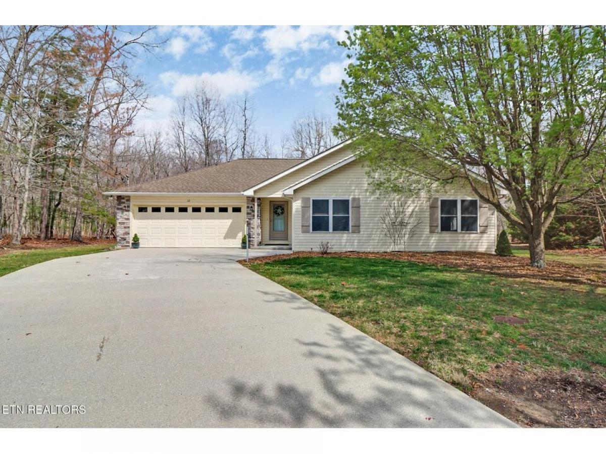 This lovely 1678 sq. ft. home features 3 bdrm., 2 ba. on a private lot surrounded by trees and located on a quiet cul-de-sac. Hardwood and ceramic tile throughout. Cathedral ceiling, skylight and ceiling fan in the living room. The kitchen offers maple cabinetry and pull out shelves in the pantry cupboard and additional pantry off the kitchen. Large master bath has 2 vanity sinks, large walk in closet, and fiberglass walk in shower with seat. Laundry area is conveniently located off the master bathroom. Bedroom 2 is 13x15.3 sq. ft. with ceiling fan and skylight to let in additional sunlight. Bedroom 3/office has built in cabinetry, ceiling fan, and skylight which make it ideal for use as an office. The guest bath features a new cabinet and counter and solar tube. 2 car attached garage features extra cabinetry, laundry tub, and outside access door. Also located on the property is a 10x12 storage shed complete with window and shelving. There is an 18 ft. Crab Orchard stone circular patio with firepit. The 16x16 deck is made of maintenance free material. Buyer to verify all information before making an informed offer. Fairfield Glade charges a $5,000 amenity fee to buyer at closing.