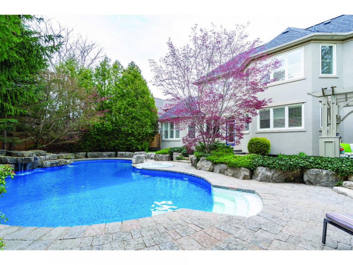 Nestled within the picturesque enclave of Lorne Park's Watercolour community lies this exquisite, upgraded gem offering 4 bedrooms, 5 bathrooms, and an array of lavish amenities throughout its approx 5,900 sq ft interior. Upon entering, guests are immediately captivated by the open concept floor plan with 10" ceilings featuring a blend of maple hardwood and tile floors that seamlessly flow throughout the main level. Natural light floods the interior further accentuating the architectural brilliance of this home. Recognized as the 'heart of the home', the chef's kitchen is truly a culinary masterpiece that is sure to delight even the most discerning of chefs. Adorned with granite countertops, a sprawling centre + peninsula island, and built-in stainless steel appliances, this gourmet haven is as beautiful as it is functional. The dining room was curated for a sophisticated dining experience with loved ones and opens up to the elegant living room with 18" vaulted ceilings, perfect to gather around after dinner. Step into the Owners suite above, where you are met with an immaculate 5pc ensuite with jacuzzi and a large walk-in closet. 3 more spacious bedrooms with ensuites/semi-ensuites located down the hall. Completing the interior is the finished basement with a large rec area, a theatre, gym, wine cellar, a secondary kitchen, and a 3pc bath. The private backyard oasis offers a tranquil space with meticulous landscaping boasting stone interlocking, a cabana, and an inground swimming pool + hot tub! Tons of upgrades incl: new roof (2018), new furnace/ac (2022), stone interlocking, in-ground sprinkler system, new pool liner, heater, and salt cell (2023) and so much more! The interior also features an office, ideal for working from home.