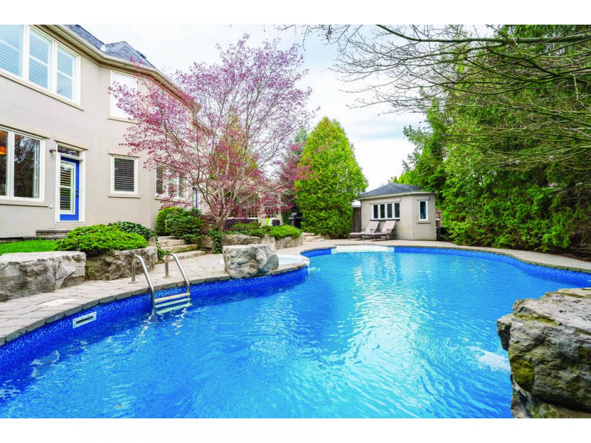 Nestled within the picturesque enclave of Lorne Park's Watercolour community lies this exquisite, upgraded gem offering 4 bedrooms, 5 bathrooms, and an array of lavish amenities throughout its approx 5,900 sq ft interior. Upon entering, guests are immediately captivated by the open concept floor plan with 10" ceilings featuring a blend of maple hardwood and tile floors that seamlessly flow throughout the main level. Natural light floods the interior further accentuating the architectural brilliance of this home. Recognized as the 'heart of the home', the chef's kitchen is truly a culinary masterpiece that is sure to delight even the most discerning of chefs. Adorned with granite countertops, a sprawling centre + peninsula island, and built-in stainless steel appliances, this gourmet haven is as beautiful as it is functional. The dining room was curated for a sophisticated dining experience with loved ones and opens up to the elegant living room with 18" vaulted ceilings, perfect to gather around after dinner. Step into the Owners suite above, where you are met with an immaculate 5pc ensuite with jacuzzi and a large walk-in closet. 3 more spacious bedrooms with ensuites/semi-ensuites located down the hall. Completing the interior is the finished basement with a large rec area, a theatre, gym, wine cellar, a secondary kitchen, and a 3pc bath. The private backyard oasis offers a tranquil space with meticulous landscaping boasting stone interlocking, a cabana, and an inground swimming pool + hot tub! Tons of upgrades incl: new roof (2018), new furnace/ac (2022), stone interlocking, in-ground sprinkler system, new pool liner, heater, and salt cell (2023) and so much more! The interior also features an office, ideal for working from home.