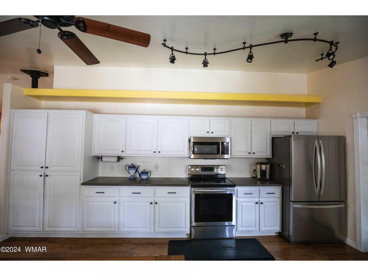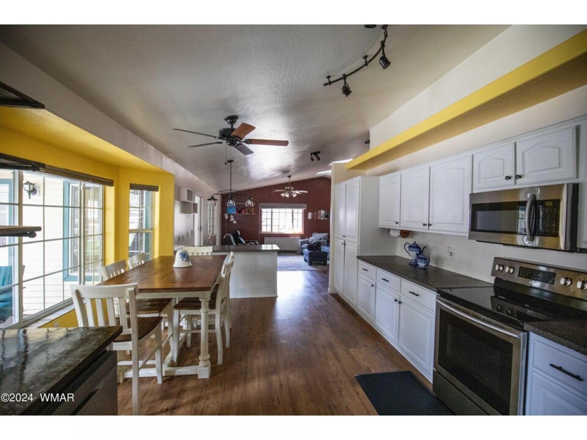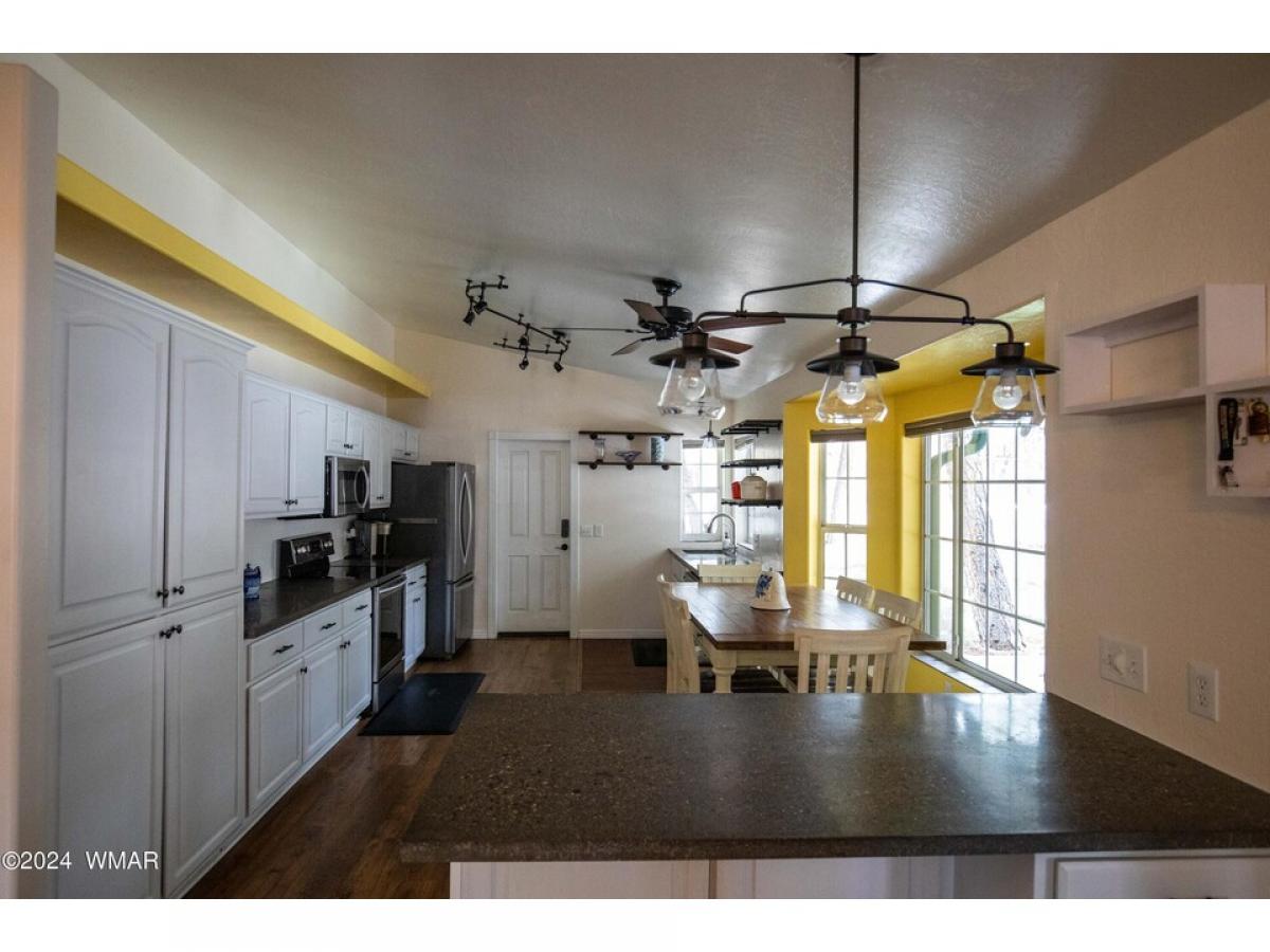 This Charming single-level 1624 sf home is located in Lakeside on a tree-covered .45 acre lot with provision for horses, No HOA or CCR'. A full chain link fenced property with double gates, and a circular driveway, enjoy your front or back covered porch for outdoor enjoyment. New roof in 2023 with transferable warranty. The home offers a split floor plan with an open kitchen, dining, and living room, leading to a delightful AZ room that could have heat added and be a 3rd bedroom. Storage galore is offered with the 2-car attached garage. 2 storage sheds/workshop, and a covered RV pad. RV hookups, garden, room to bring all of your toys. This home comes with a one year home warranty. MOTIVATED SELLER! BRING OFFERS..