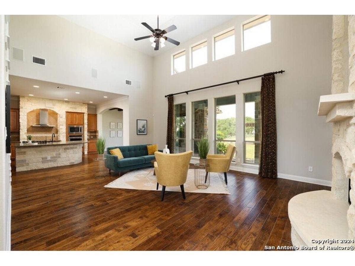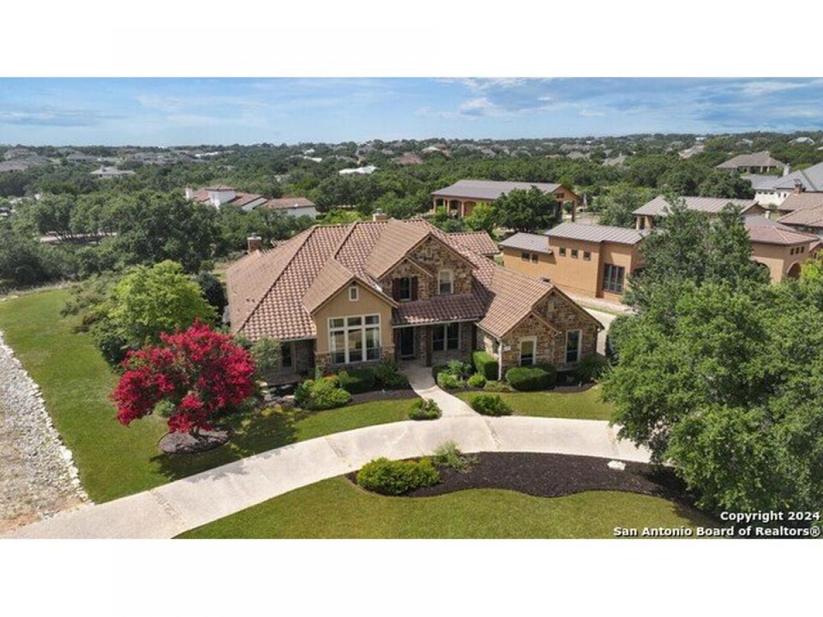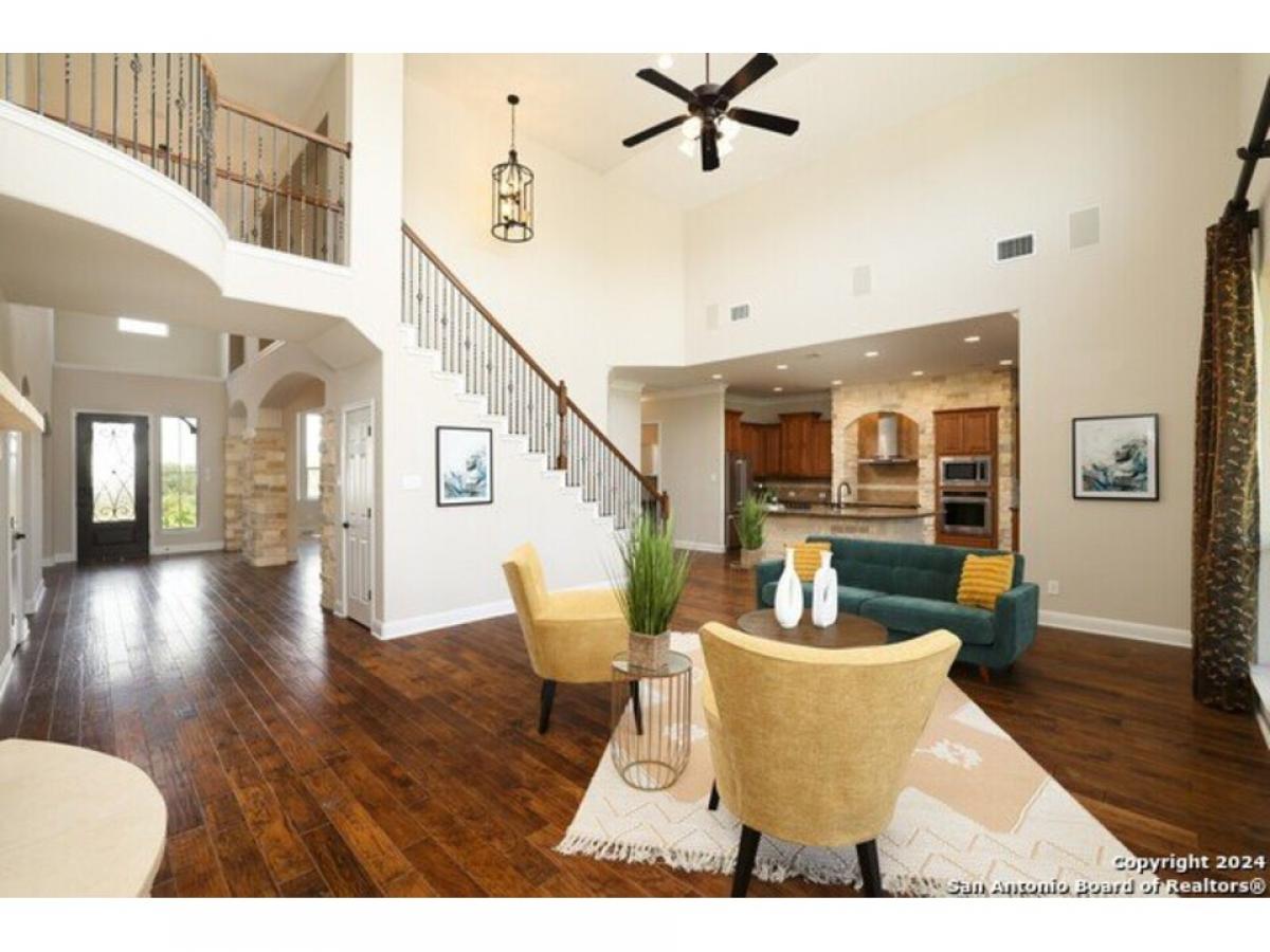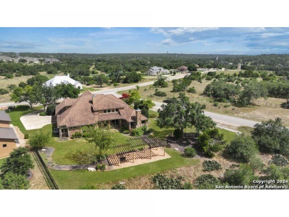 Welcome to your dream home! Never been lived in! This former CUSTOM Coventry model home is the perfect blend of luxury, comfort, and style! With meticulous attention to detail and high-end finishes throughout, this property is a true FIND! Soaring ceilings with rich wood beams create an open and airy ambiance, while the beautiful hardwood floors add warmth and elegance! The family room has a DRAMATIC stone fireplace and a wall of windows for TONS of natural light! The heart of the home is undoubtedly the gourmet kitchen! The massive island serves as the perfect hub for cooking and entertaining! It features custom cabinetry with under cabinet lighting and KitchenAid appliances, including an INDUCTION cooktop, a built-in oven and microwave, stainless steel dishwasher and the refrigerator STAYS! There is even a built-in office alcove with TWO work stations perfect for working remotely or a homework station! Step outside to the covered patio that boasts a cozy outdoor fireplace and a pavilion overlooking a ONE ACRE private corner lot! There is an elegant formal dining with an architectural stone accent wall for those holiday feasts! Retreat to the luxurious primary bedroom (downstairs) where you will find dual/separate vanities, a garden soaking tub, an XL walk-in shower with a bench and a walk-in closet you won#039;t believe! TWO secondary bedrooms are also downstairs and share a Jack and Jill bath. Ascend the iron railed staircase where you will find a large game room, one more bedroom and a full bath! Tired of those tiny utility rooms? Not here! You will find a HUGE utility room with PLENTY of cabinets, a utility sink amp; lot of hanging space! There is a three car side entry garage with a turn around space AND a circular drive in front! Vintage Oaks has some of the best amenities in the Hill Country! You will find miles of trails, neighborhood pools including a lazy river, tennis amp; sports courts, a GYM, a clubhouse, even a WINE ROOM! Exemplary Comal ISD schools! This one is move in ready and a MUST SEE!!