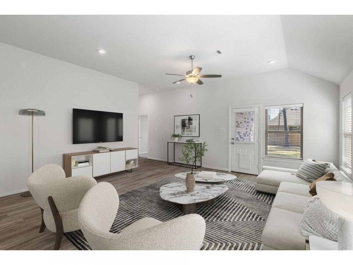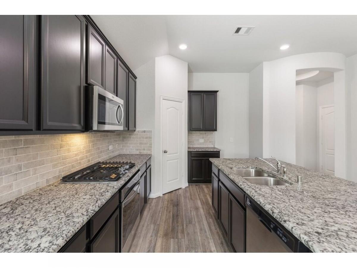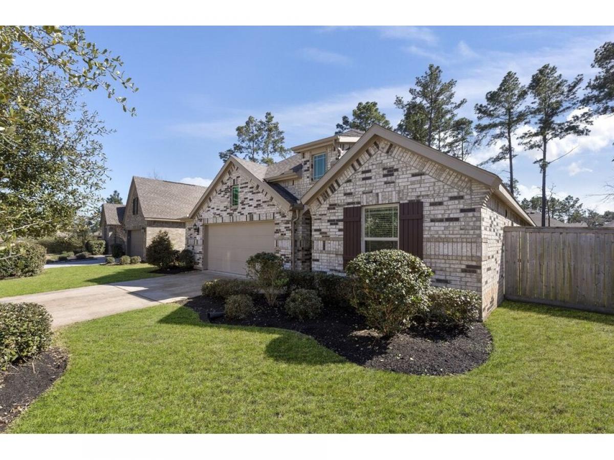 Check out this beautiful brick move-in ready 4 bedroom-3 bathroom home in The Woodlands Hills. The stunning rotunda entryway leads you to the open concept living area with recessed lighting, ceiling fans, and plenty of natural lighting from the many large windows. Make delicious meals in the island kitchen with a gas cooktop, stainless steel appliances, chic earth toned cabinetry, and a walk-in pantry. Behind a solid wooden door is a flex space which can be used for media room, home office or home school. There is additional space with built-in desks for mini-office or homework spot. Primary bedroom has windows overlooking the backyard. En-suite primary bath has double sinks, a large soaking tub, separate shower. Walk-in closet has built-in shelves and envious 3rd rack. Covered patio to beat the Texas heat overlooks the huge back yard, mature trees and plenty of green space. The neighborhood has total of 20 neighborhood parks, a tennis courts, water park, and swimming pool dog park.