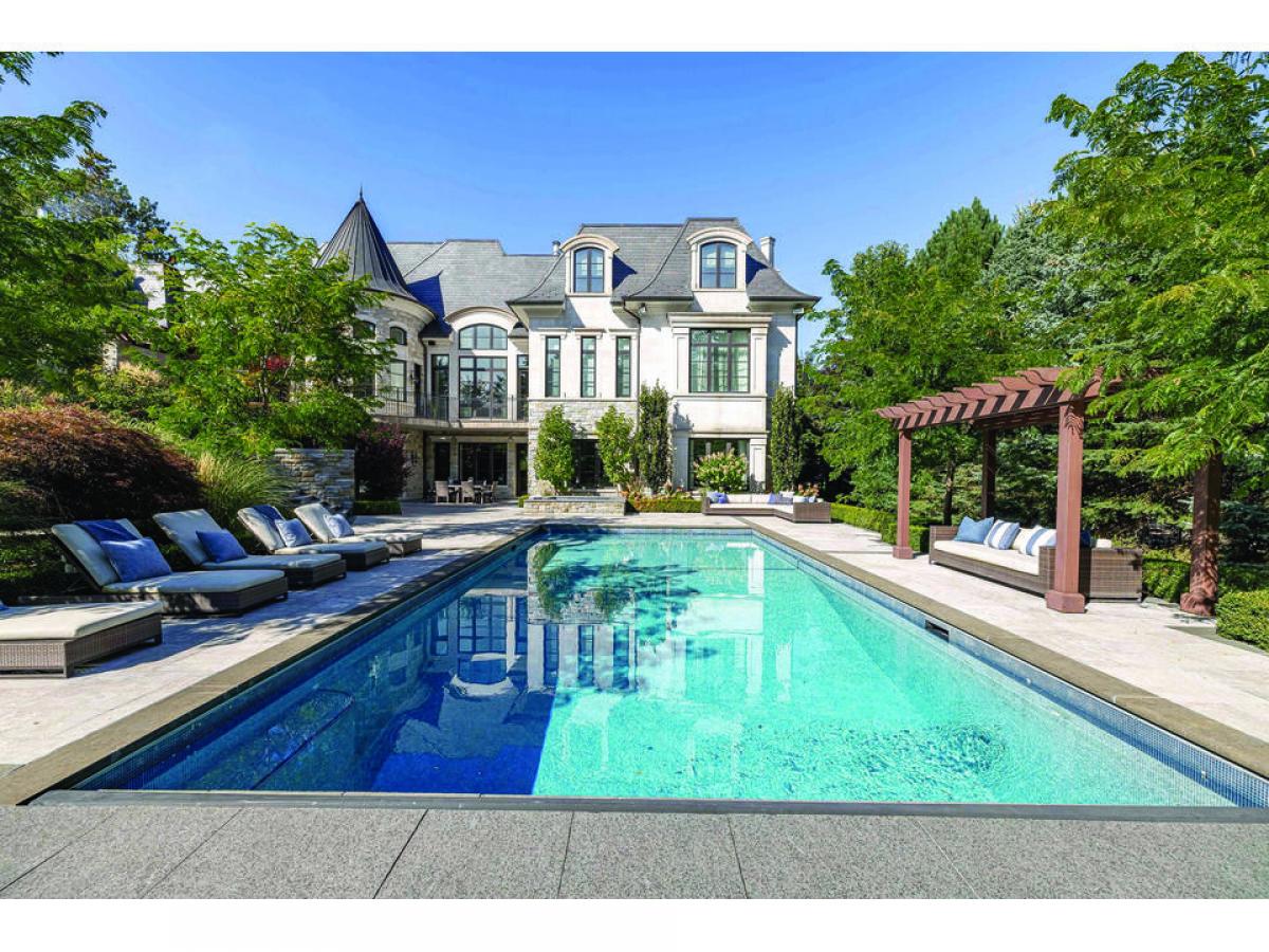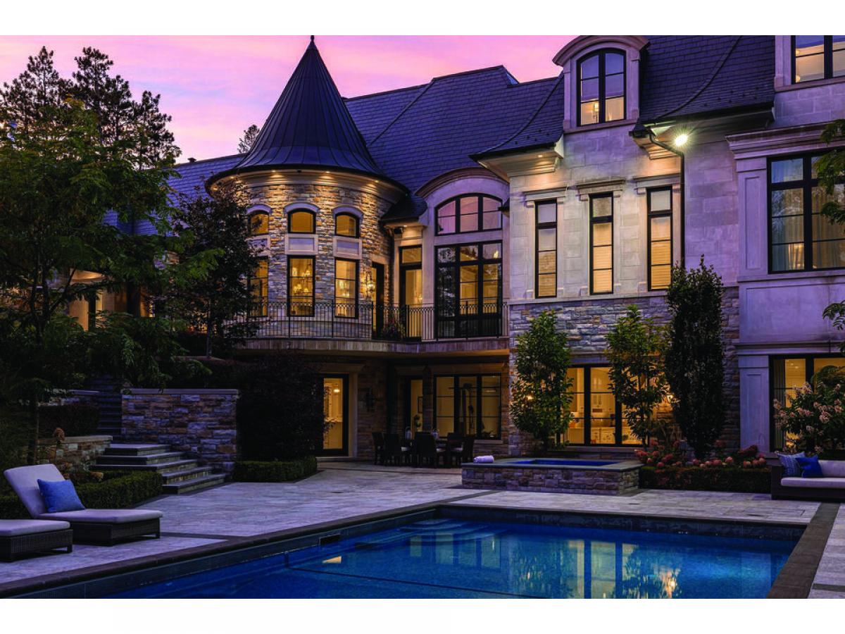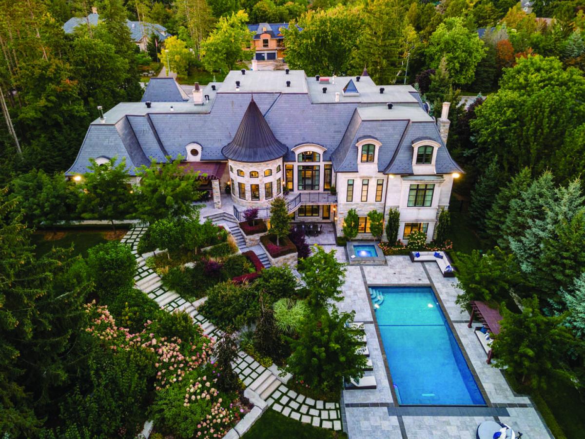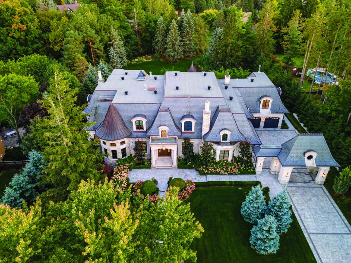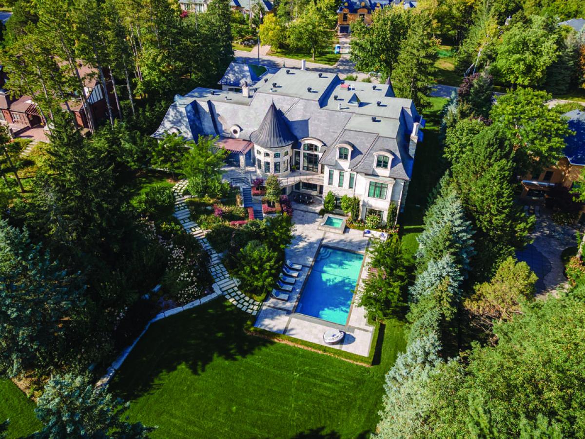 Exquisite French Parsian Home in coveted Woodland Acres. Architect Frank Falcone and Designer Robin Nadel. Over 1 acre of private grounds with pristine manicured gardens, pool and outdoor entertaining spaces. Made with Indiana limestone, natural slate roofing, natural stone, granite and copper detailing. Over 13,000 sq ft of total living space with refined craftsmanship, finest luxury finishes and no detail overlooked throughout this incredible property. Cathedral great room, gourmet kitchen by Bellini Kitchens with Rotunda breakfast area. Extensive millwork, vaulted ceilings and wall panelling throughout. Mahogany wine cellar with capacity of over 500 bottles, elevator, gym, theatre, wet bar, outdoor kitchen, stone fireplace with pizza oven. Separate one bedroom apartment above garage. 4 car garage and 12 parking spots.